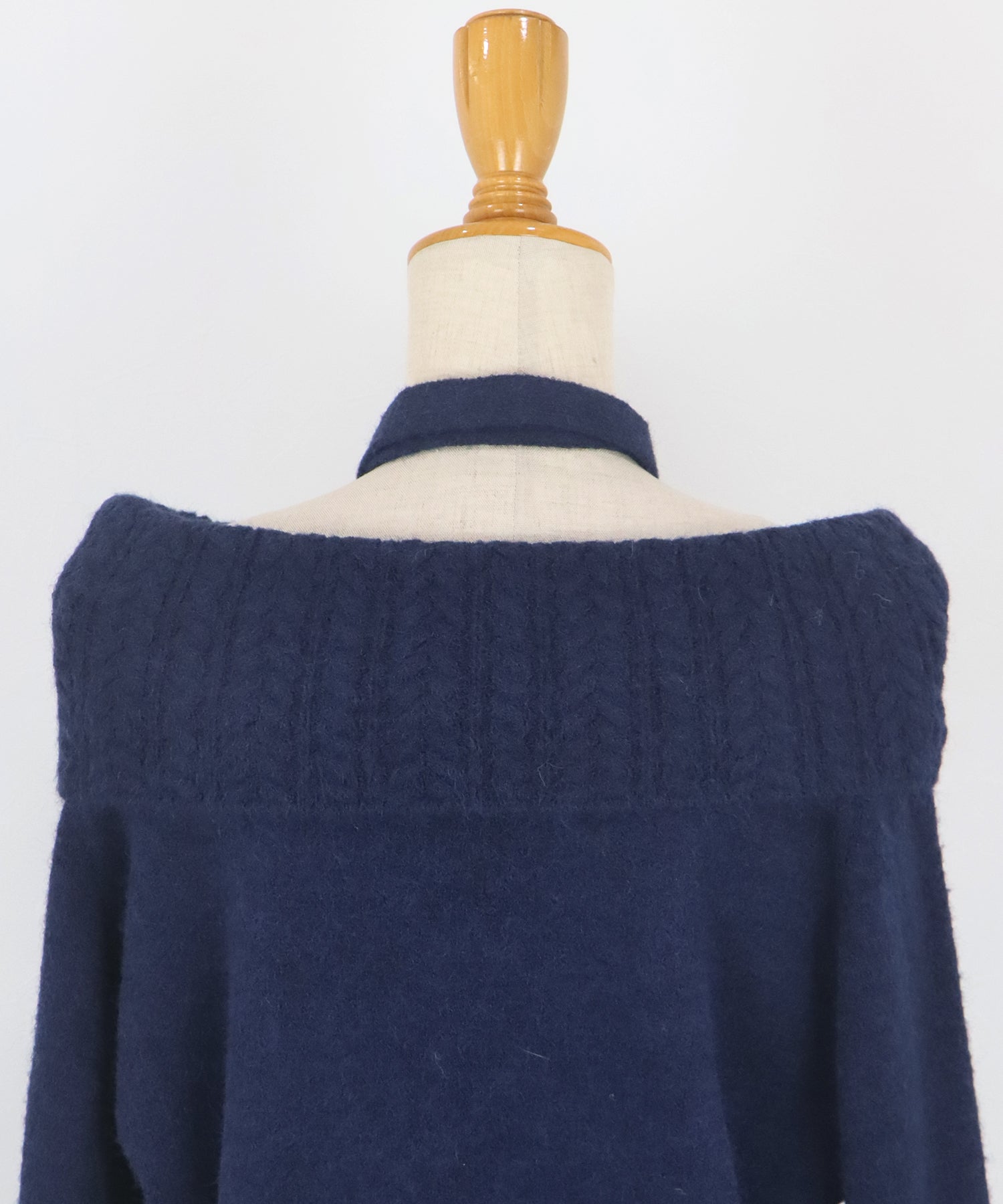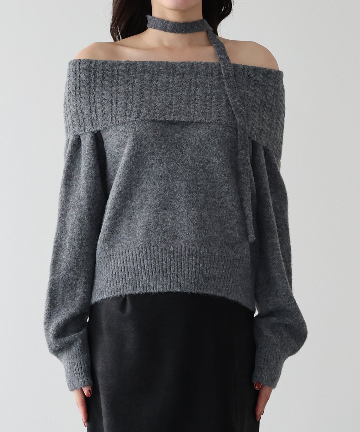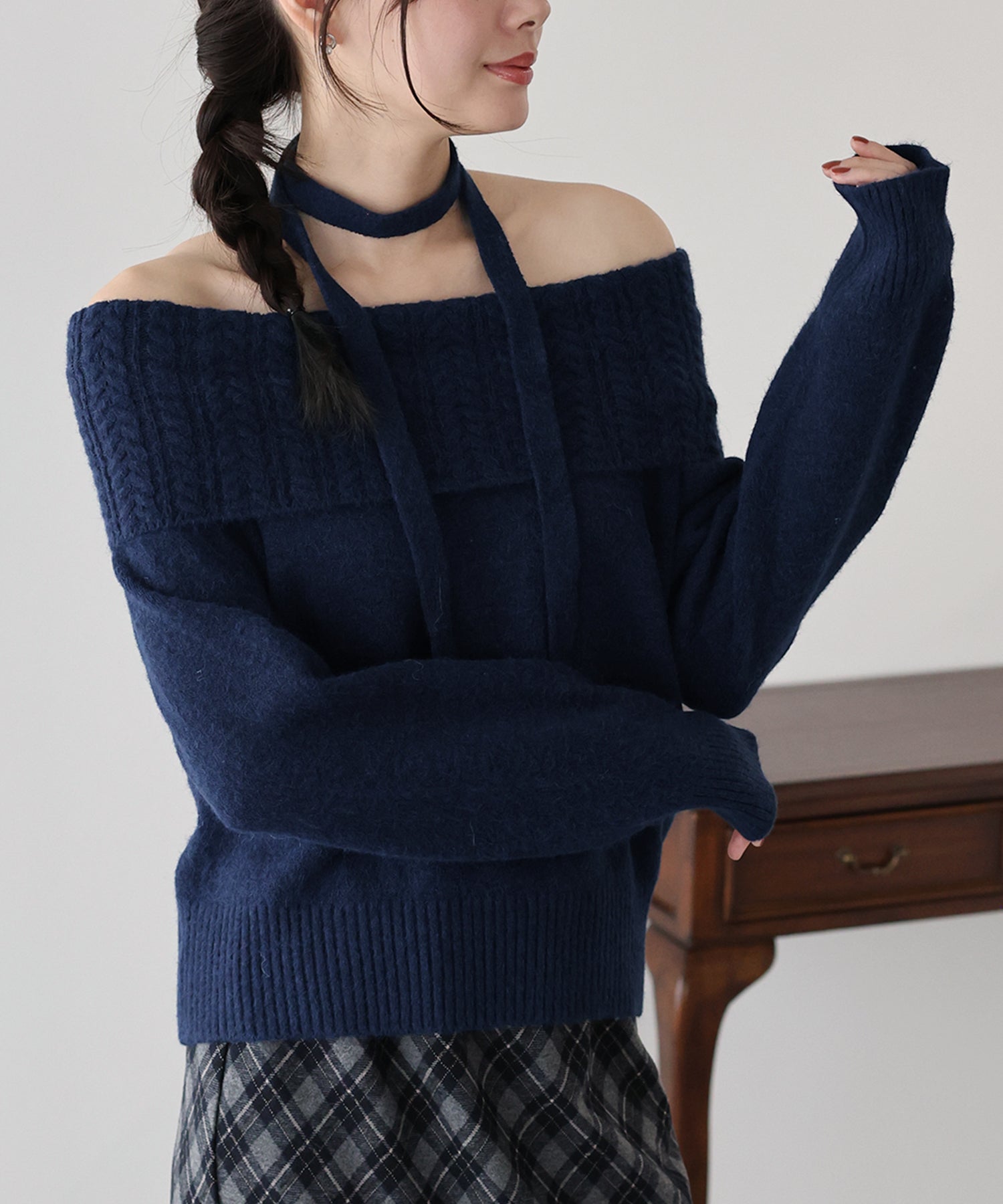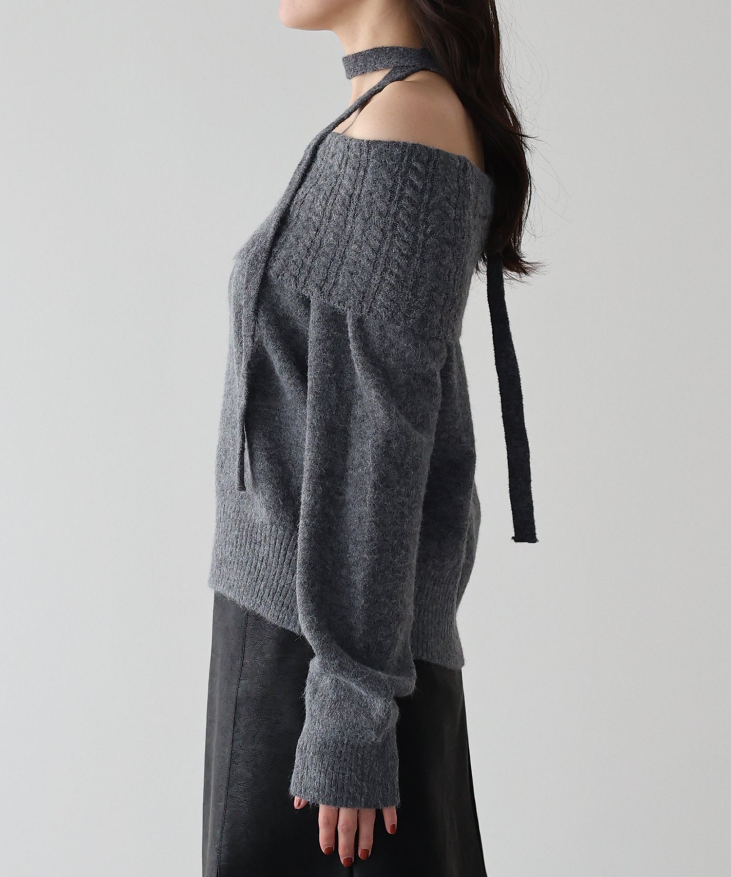 TIME SALE【早割5%OFF】リボンタイ付きオフショルダーニット