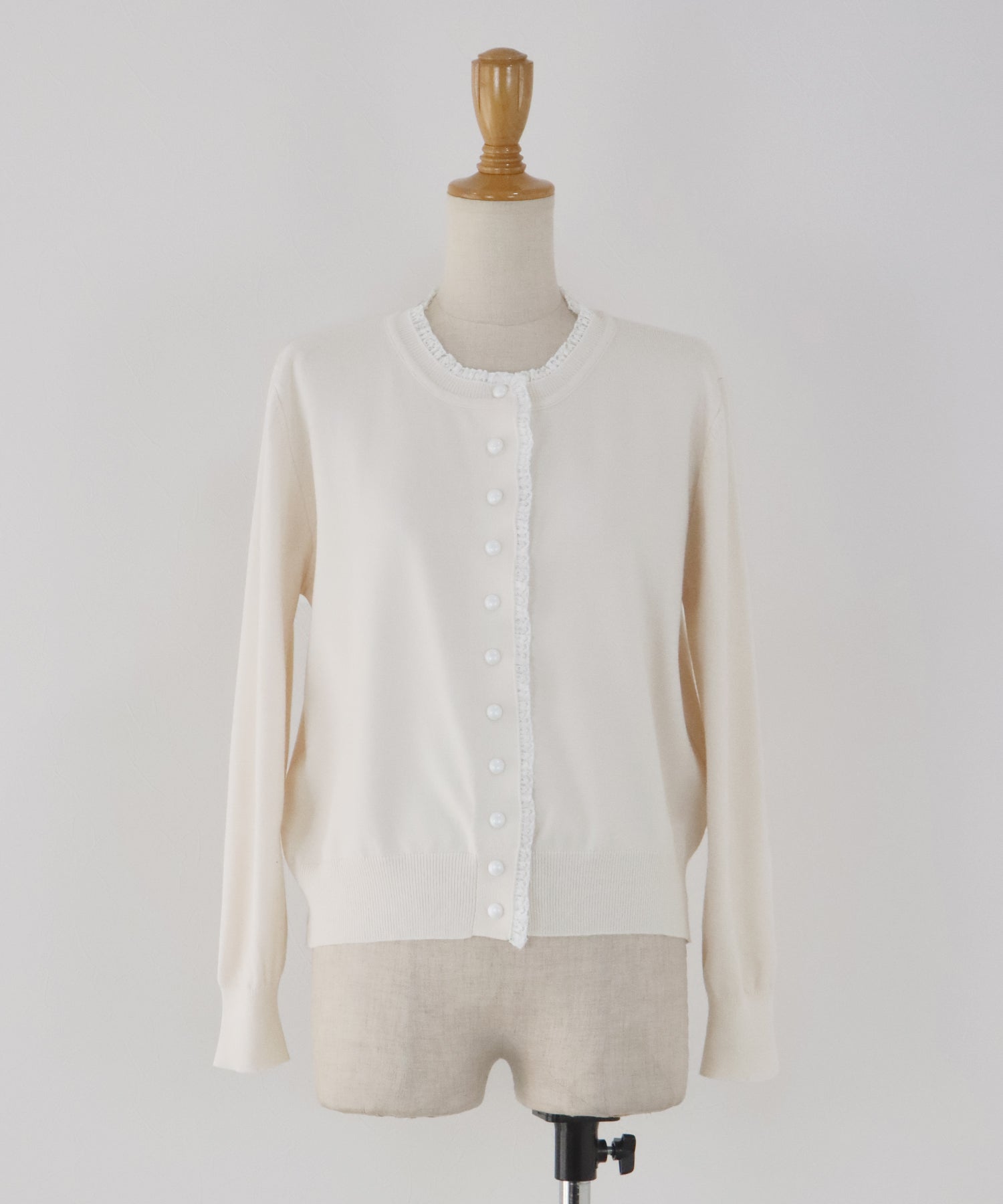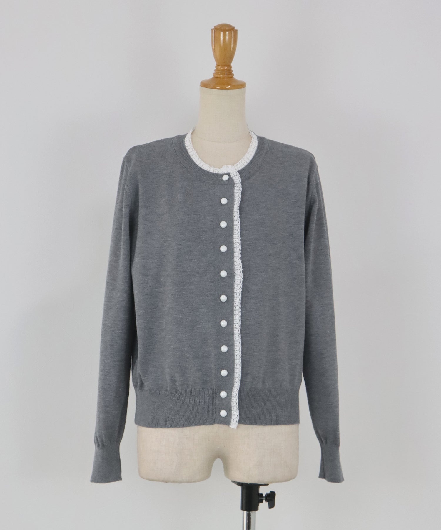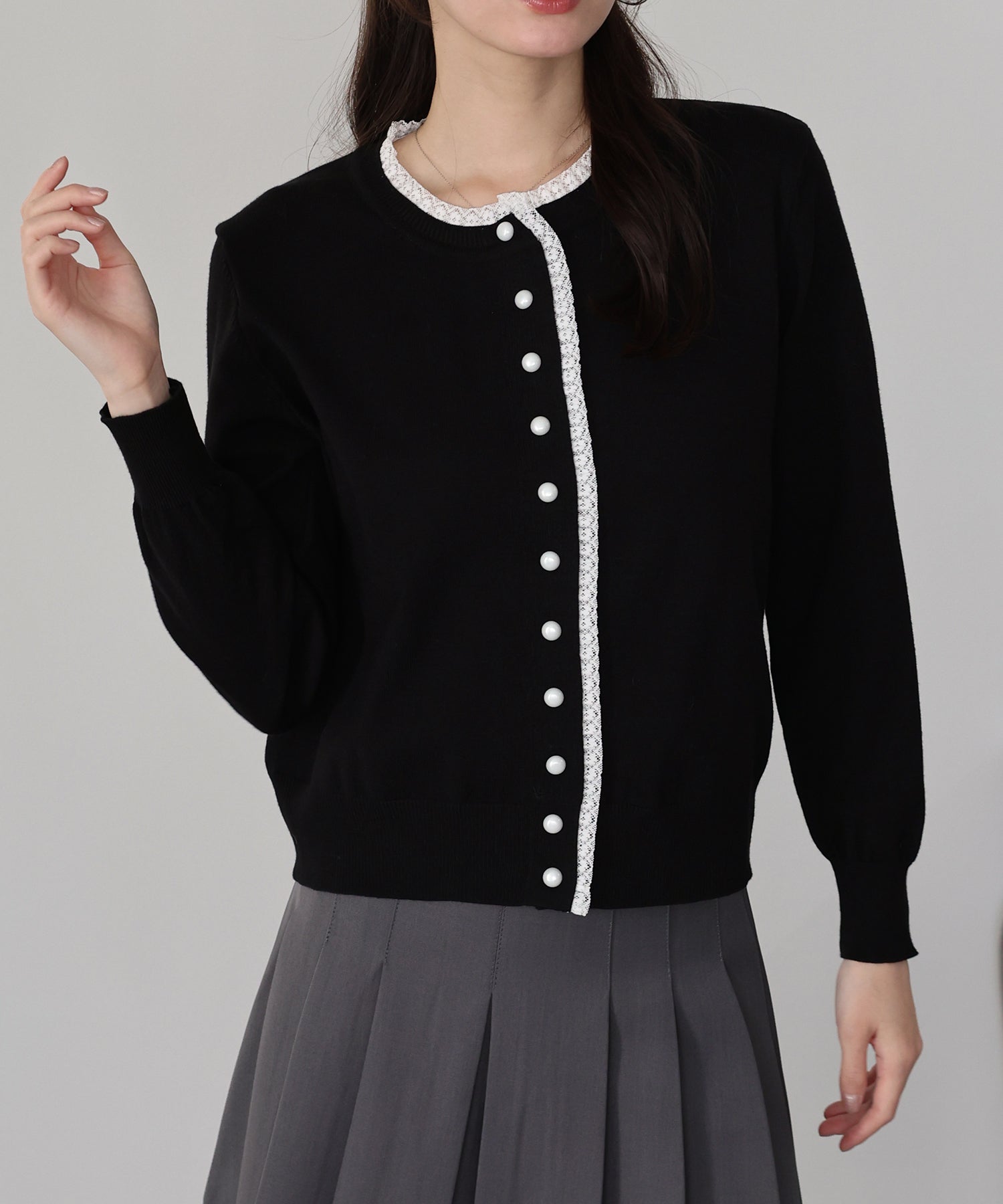 【早割5%OFF】レーストリムパールボタンカーディガン