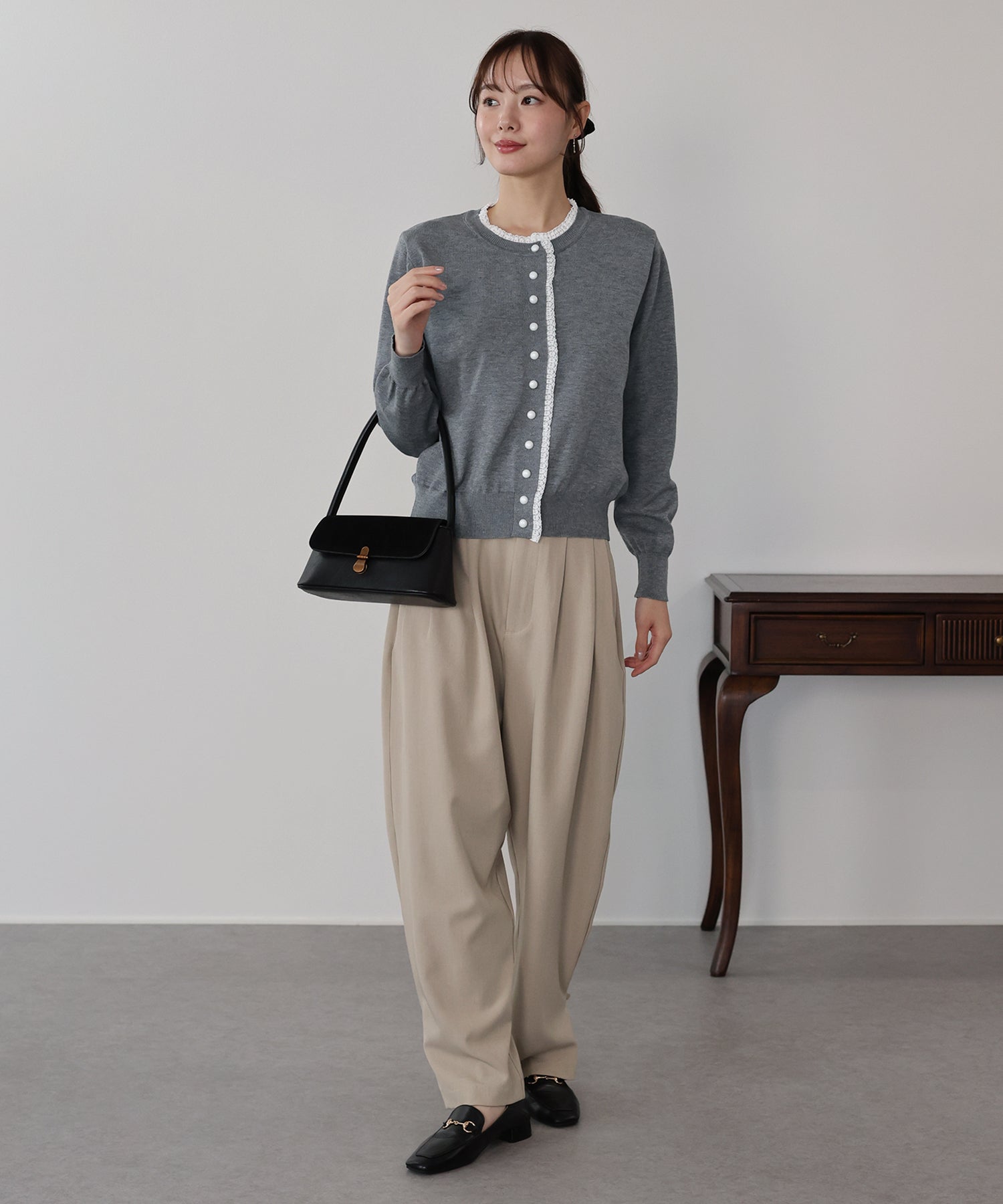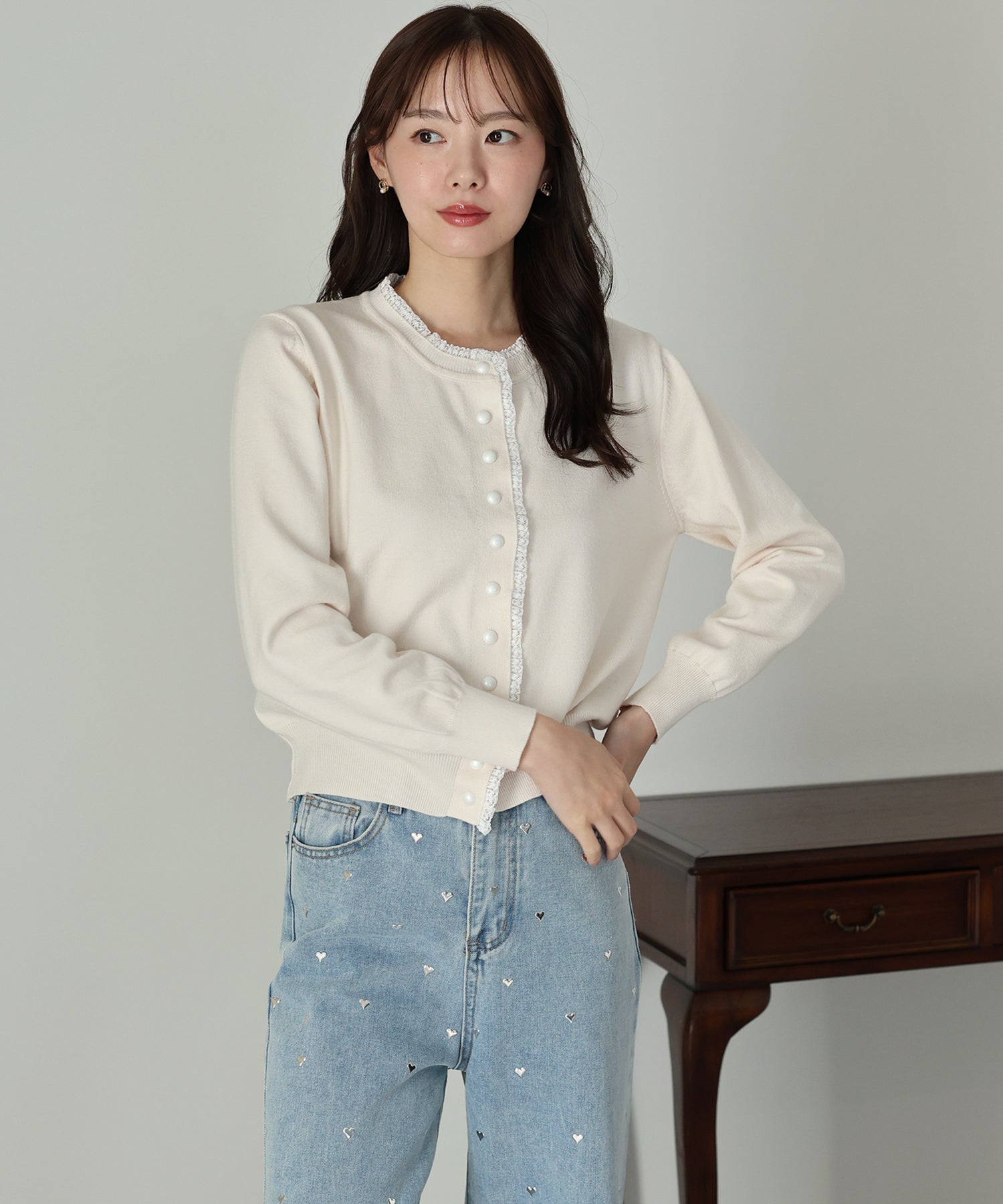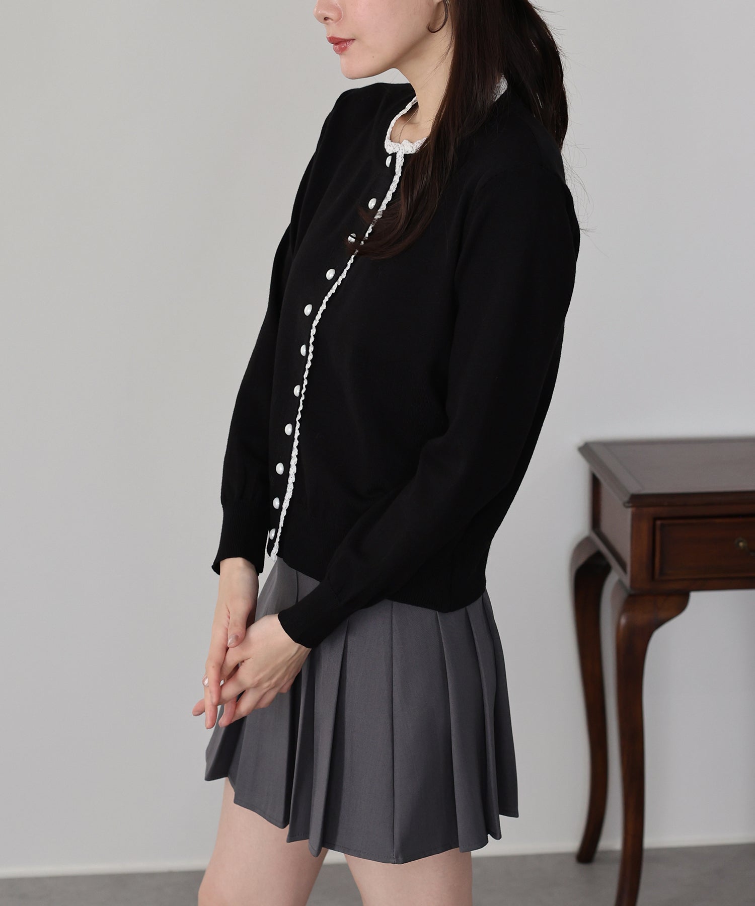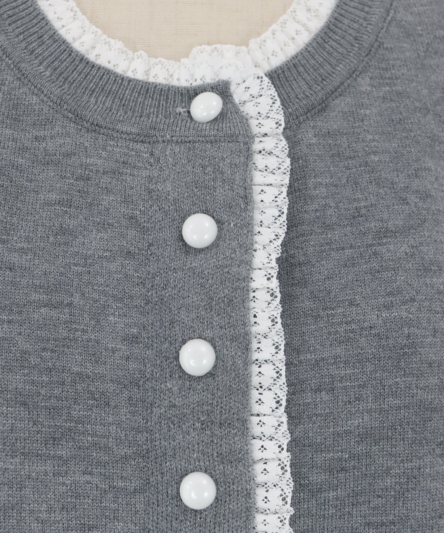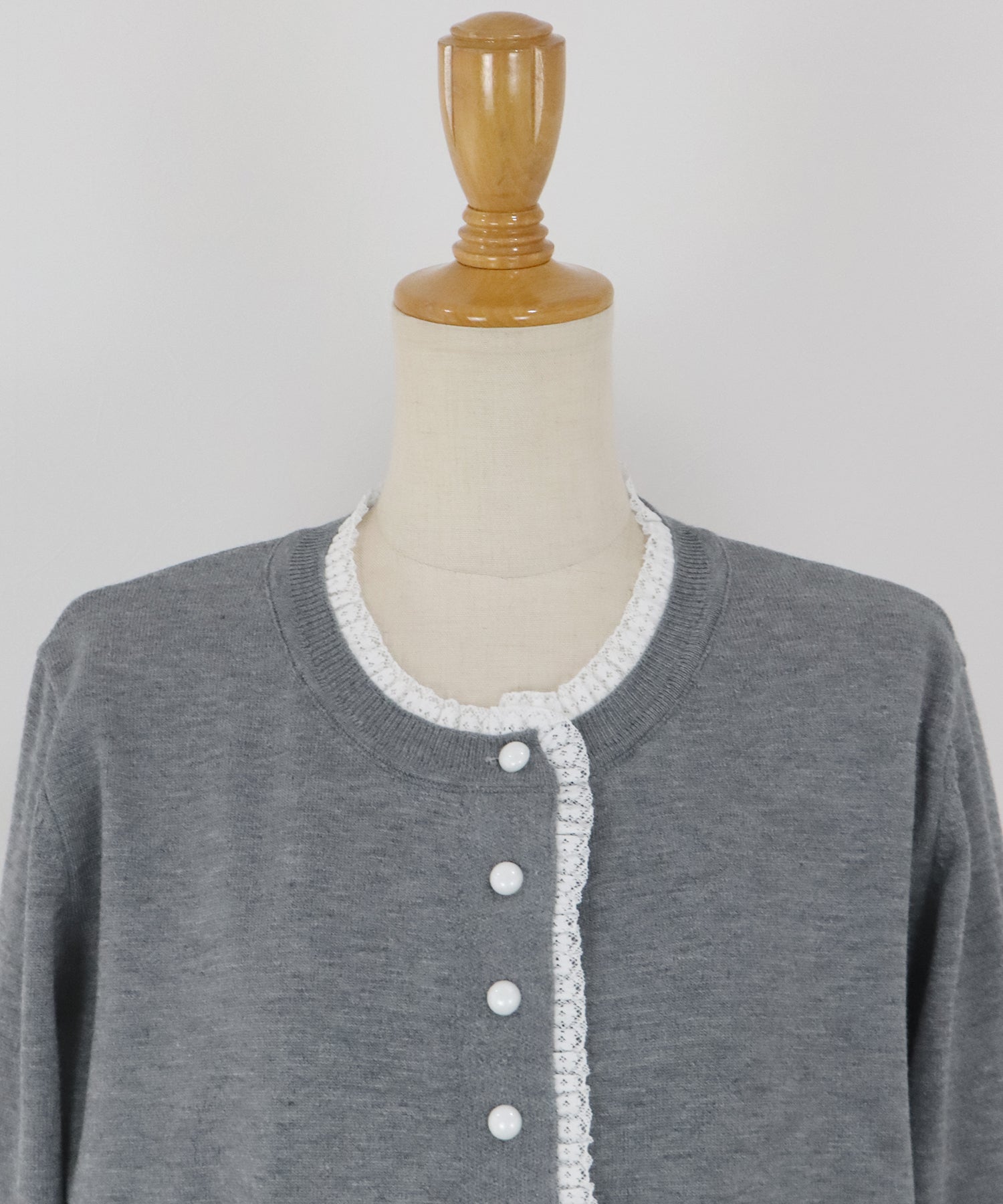 TIME SALE【早割5%OFF】レーストリムパールボタンカーディガン