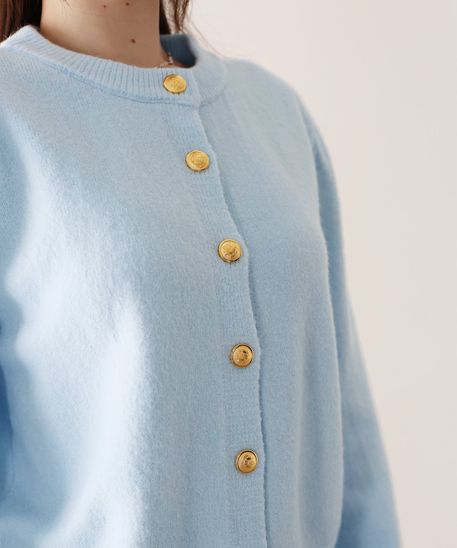 TIME SALE【早割5%OFF】金ボタンクルーネックカーディガン