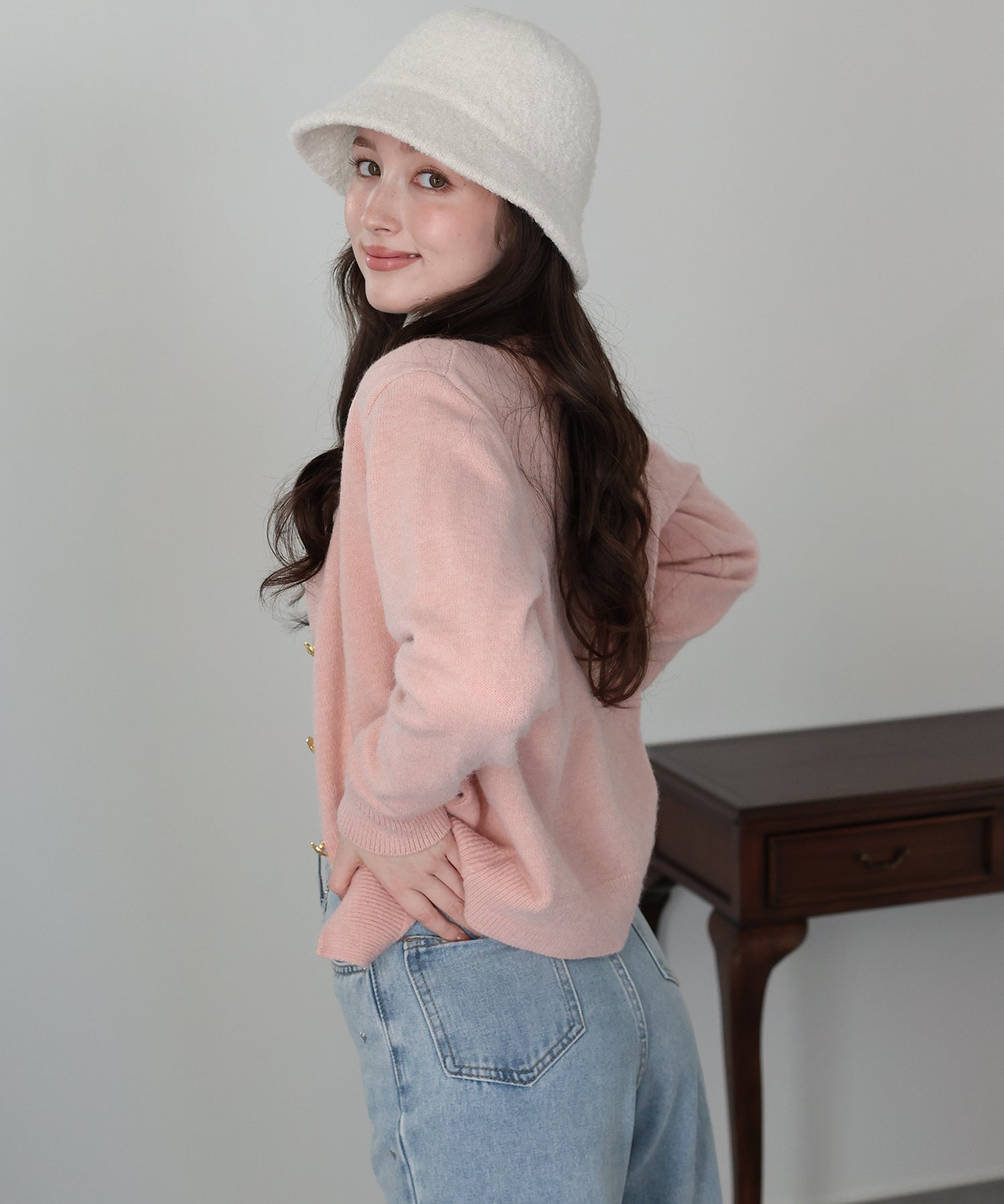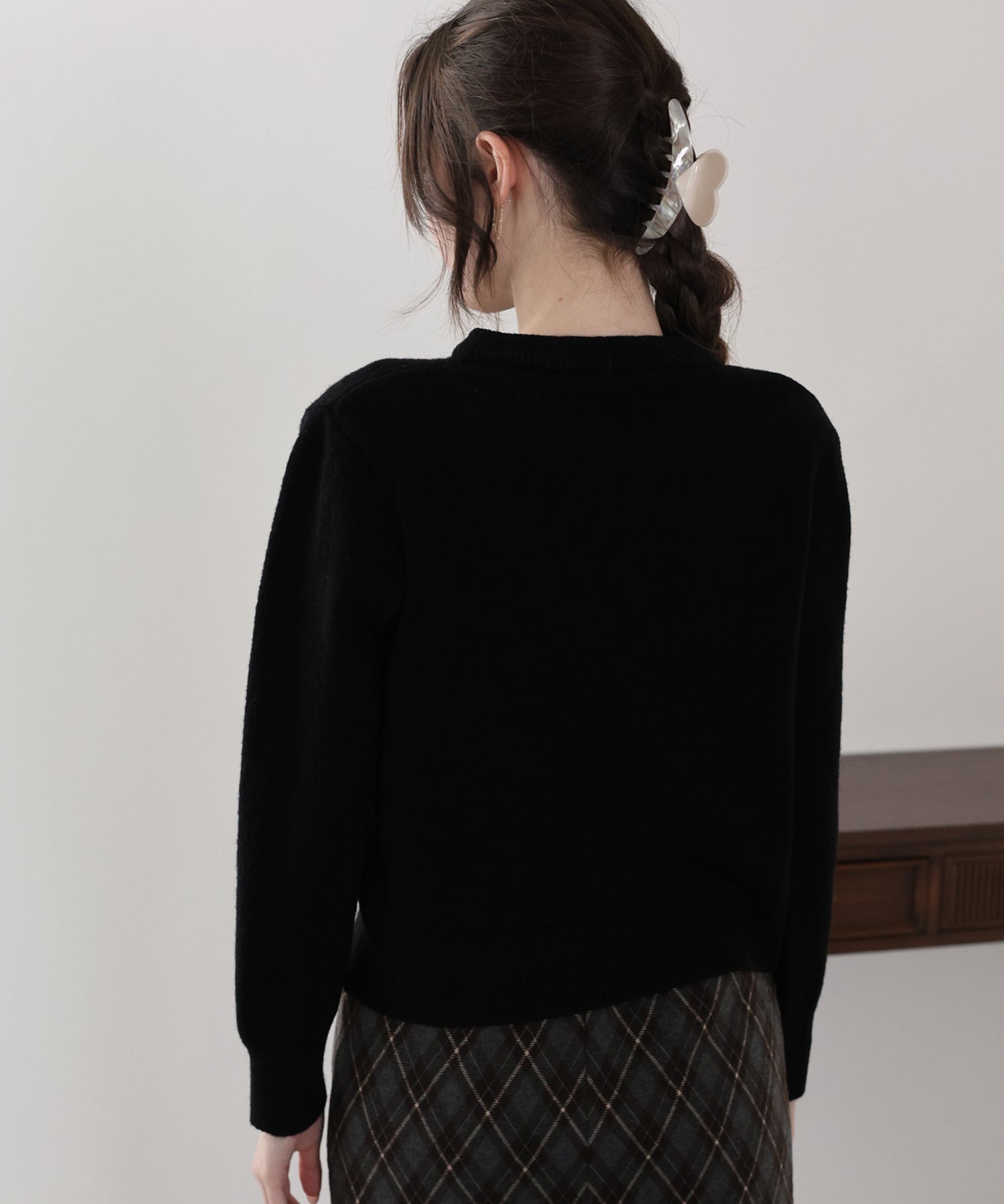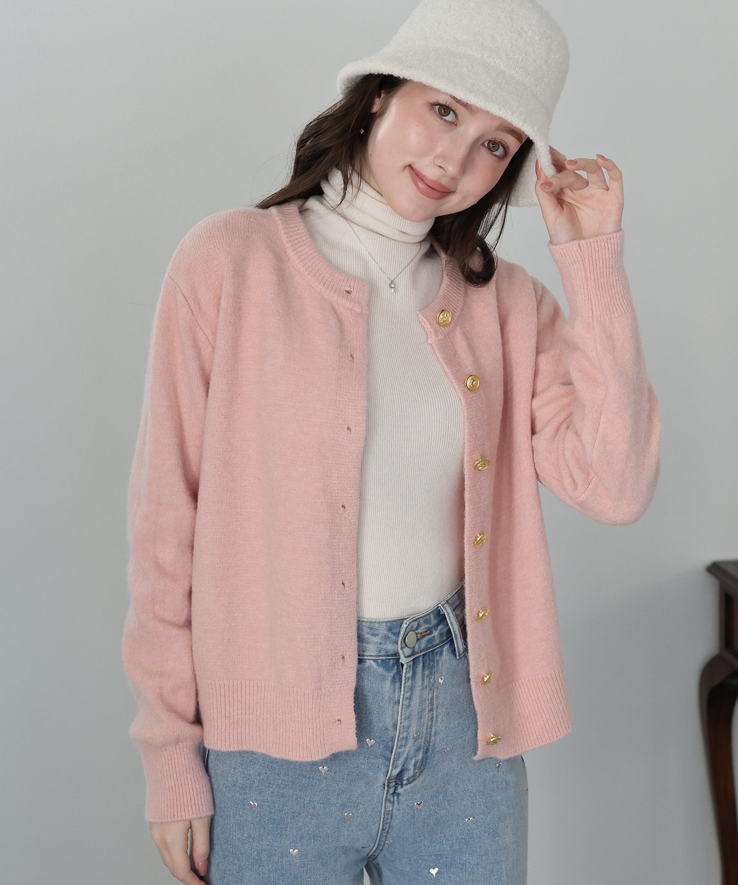 ゴールドボタンケーブルクルーカーディガン
