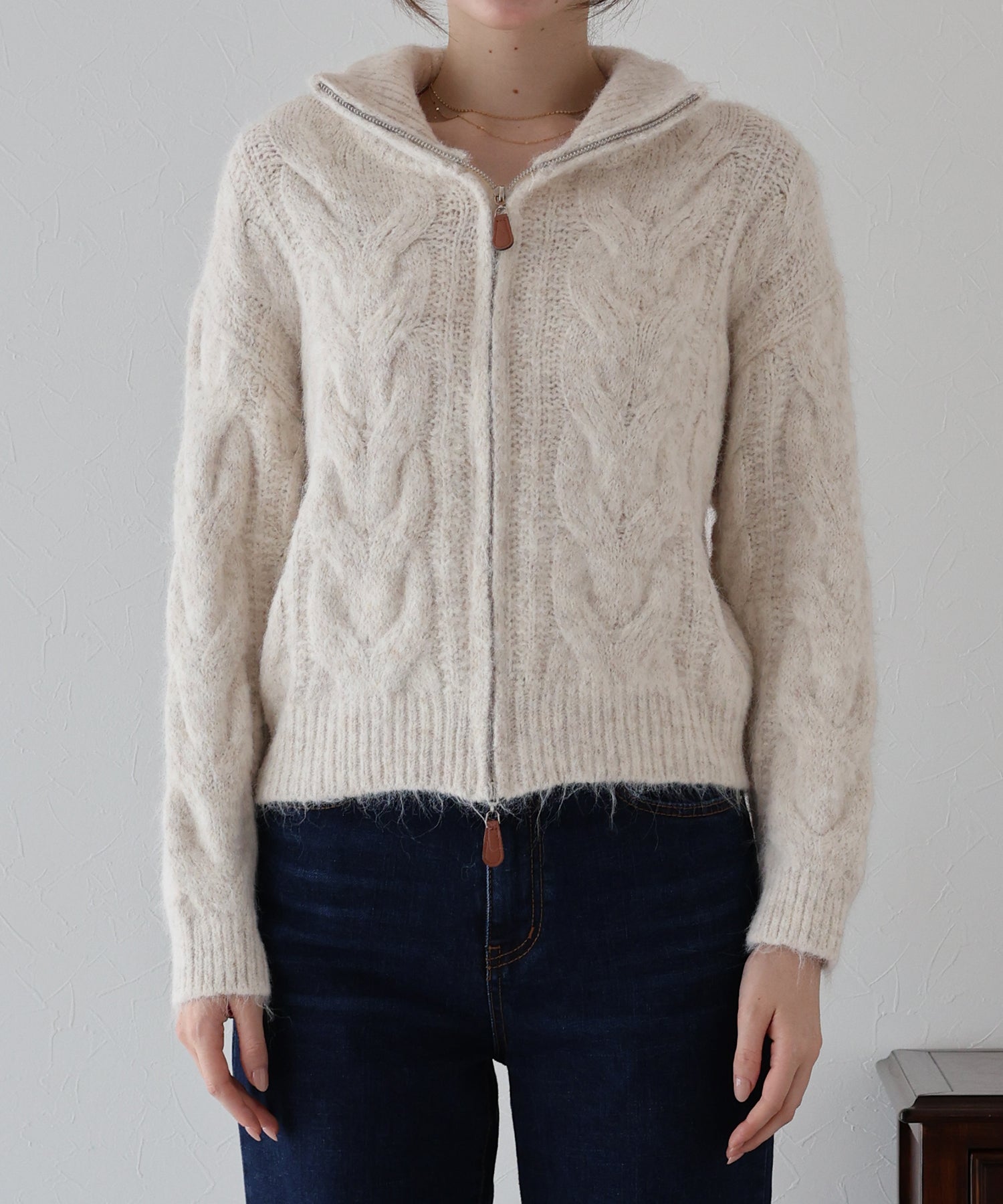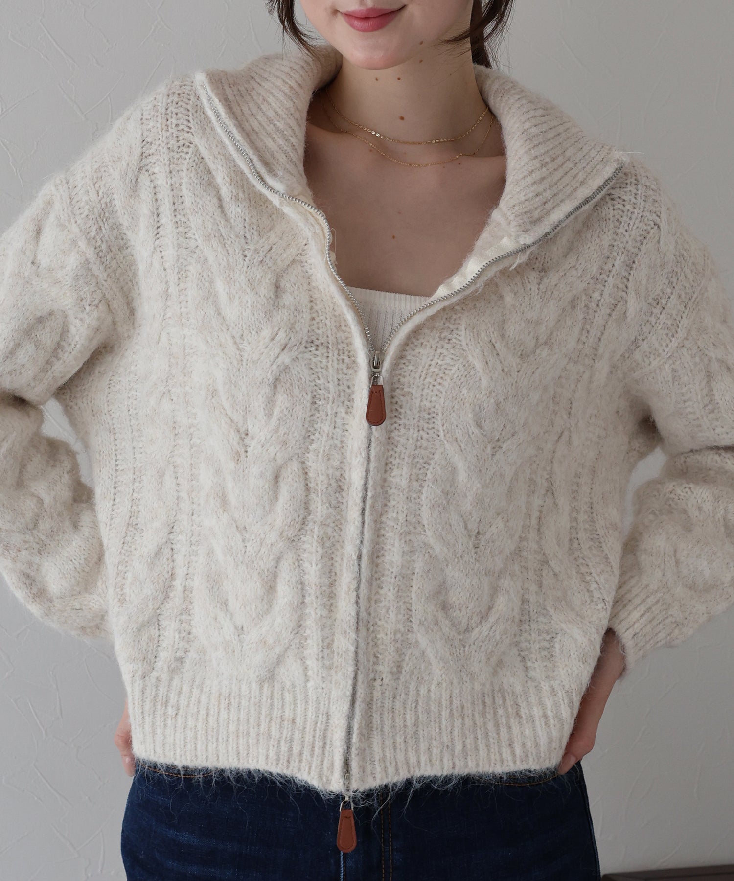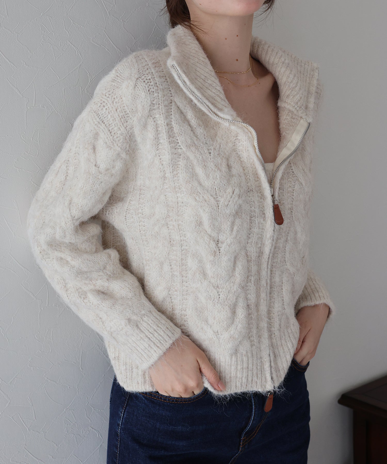 立体感のあるケーブル編みで、シンプルながらも存在感抜群のアイテム。