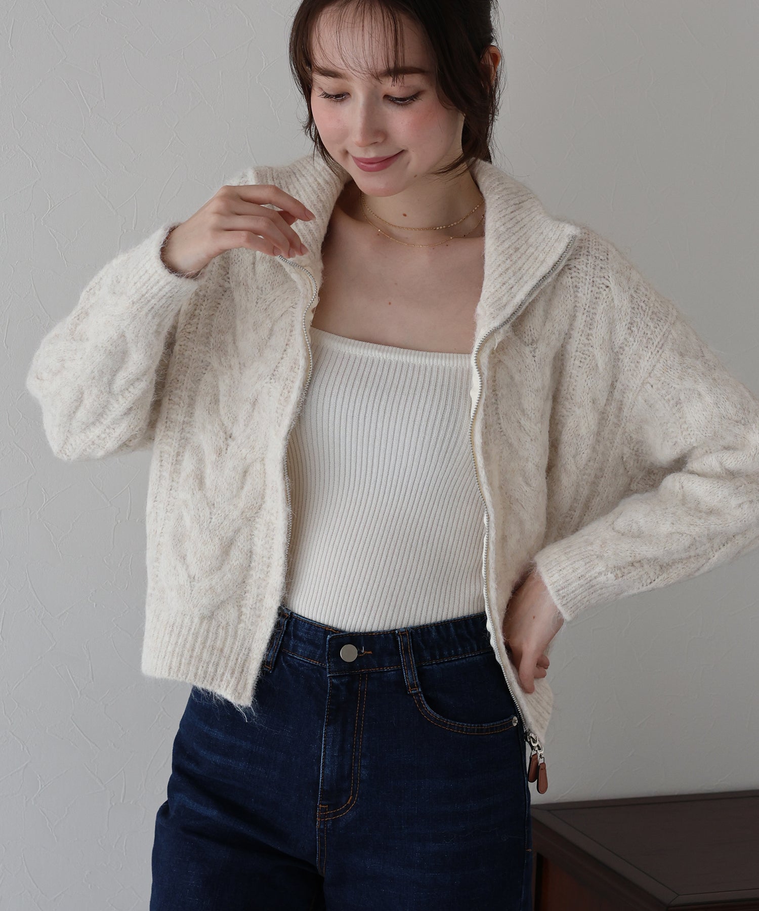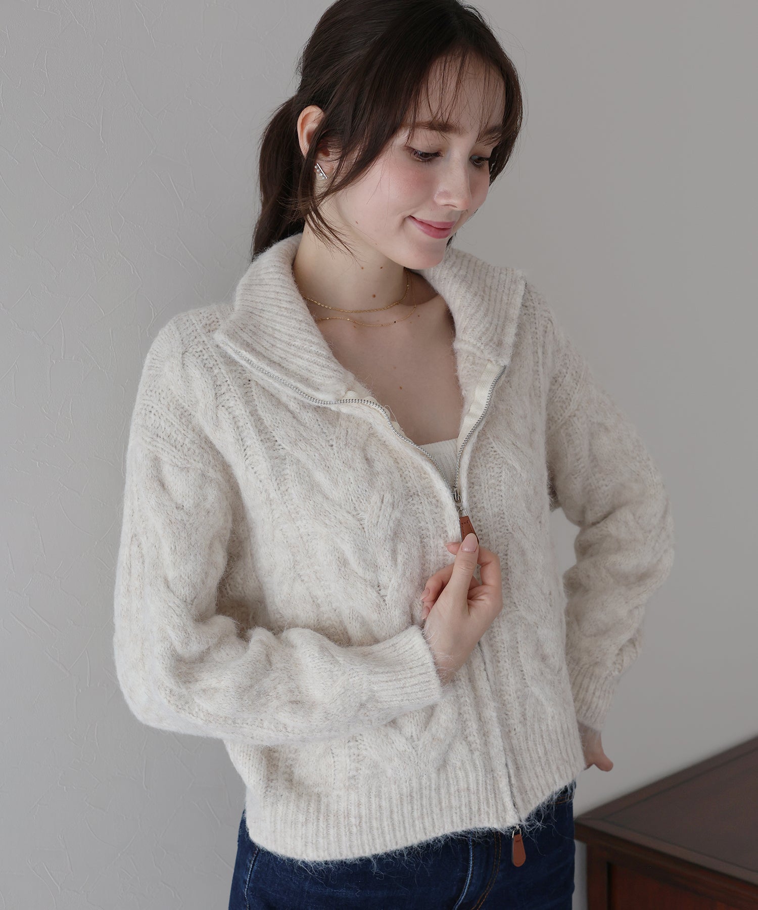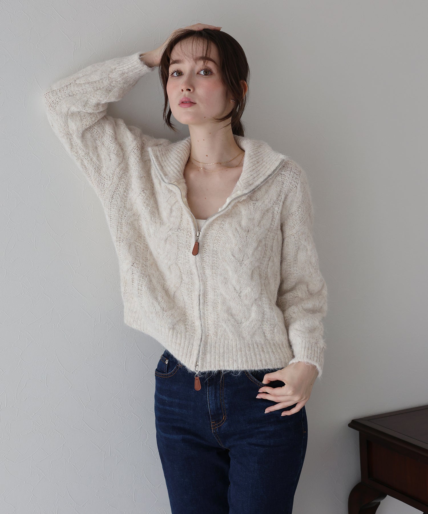 TIME SALE【早割5%OFF】袖ファーケーブルカーディガン