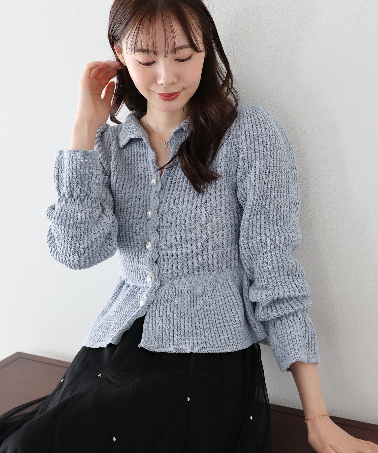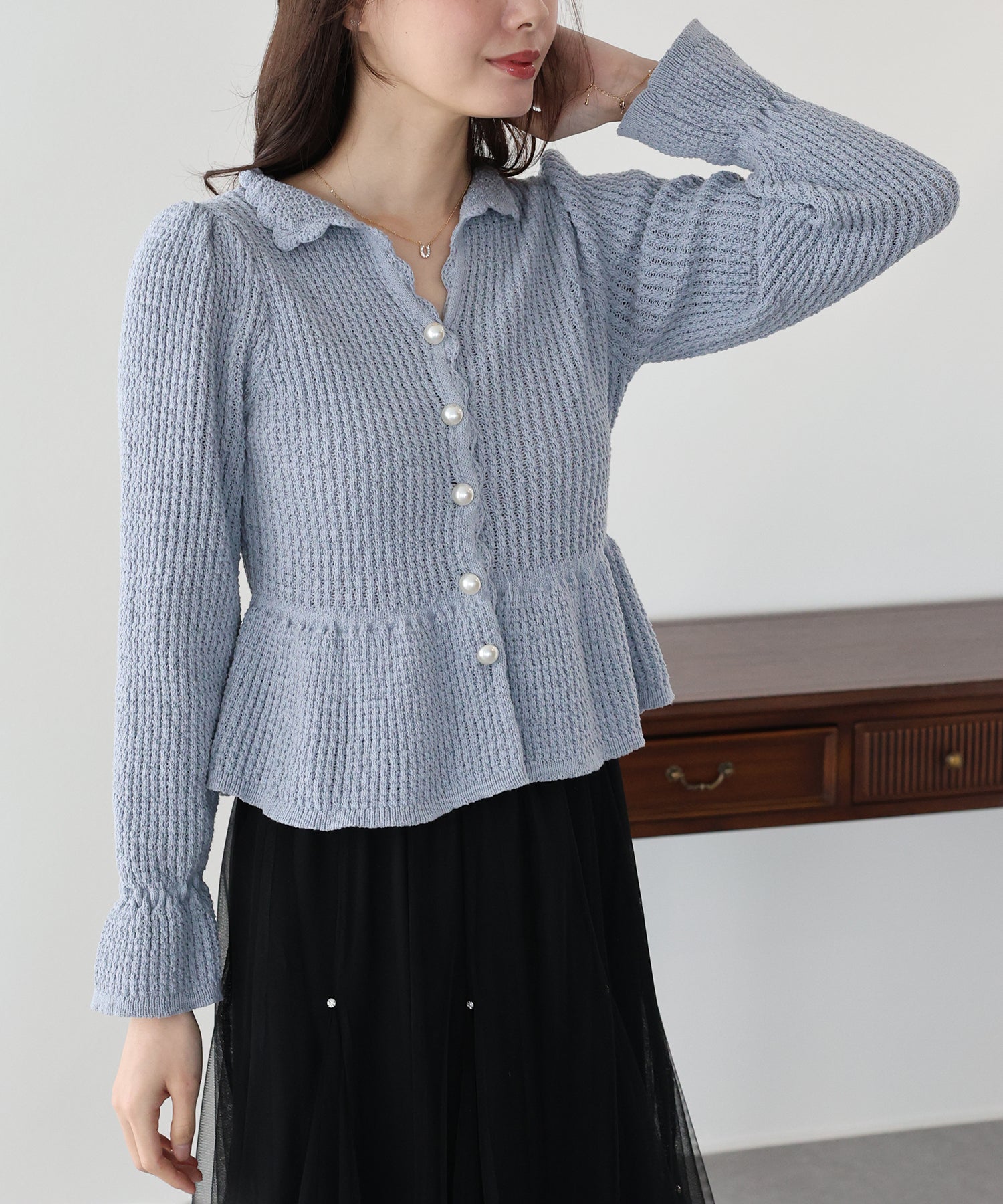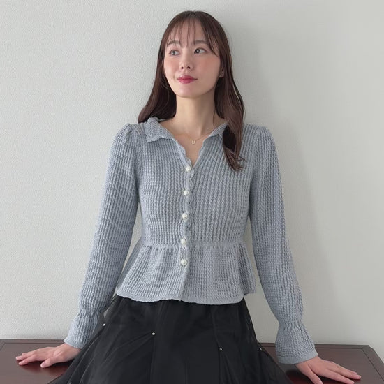 パールボタンペプラムニット