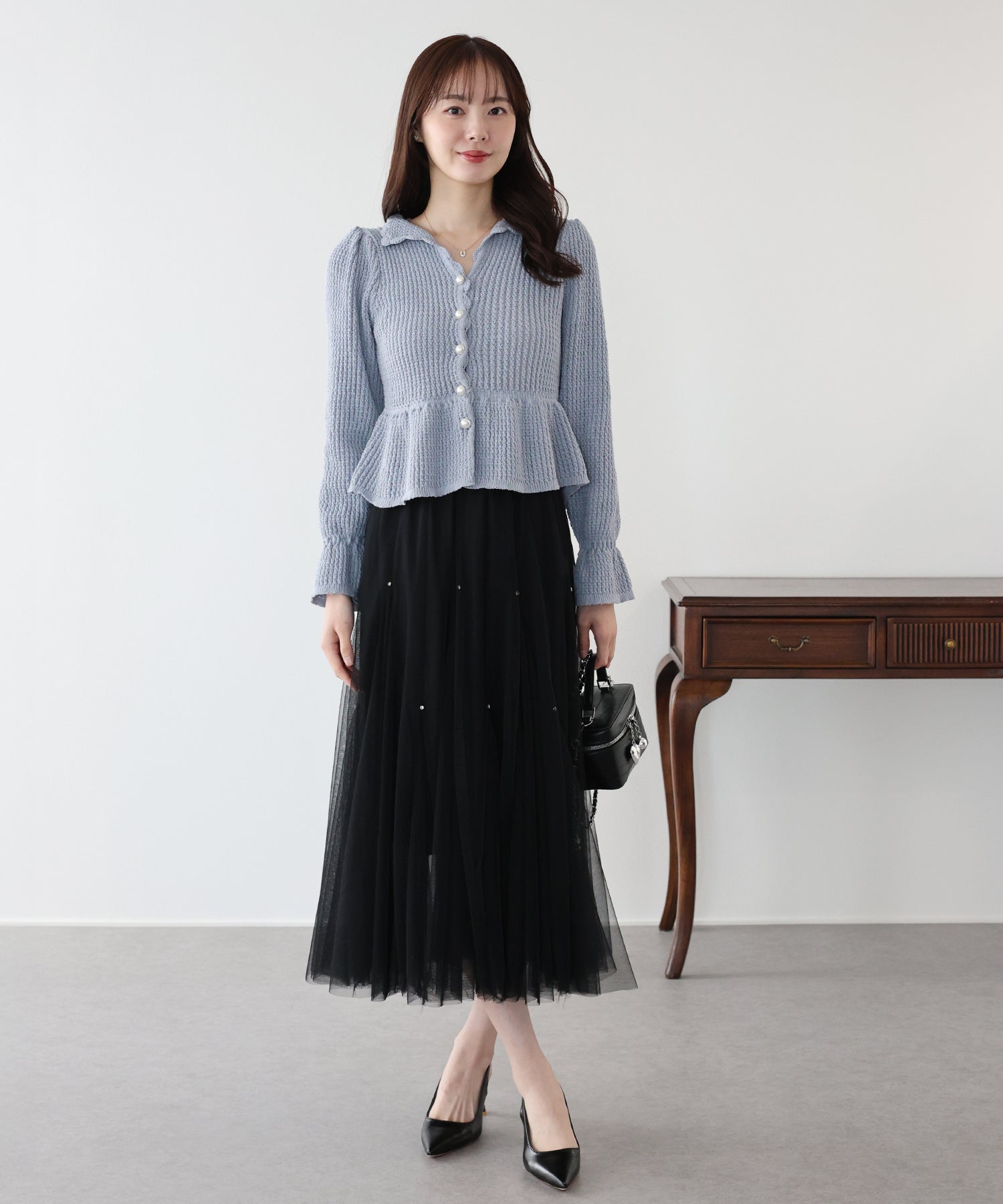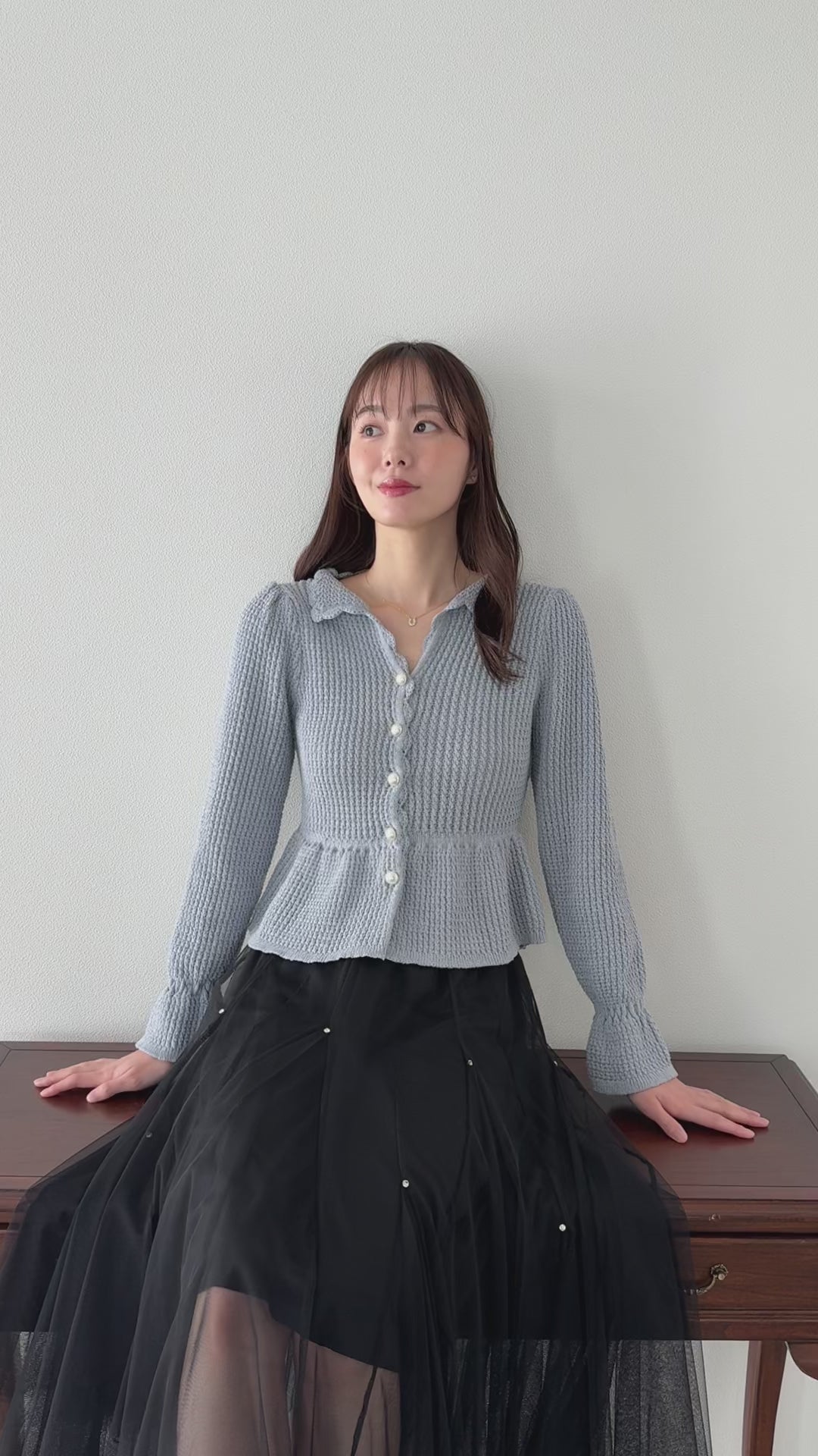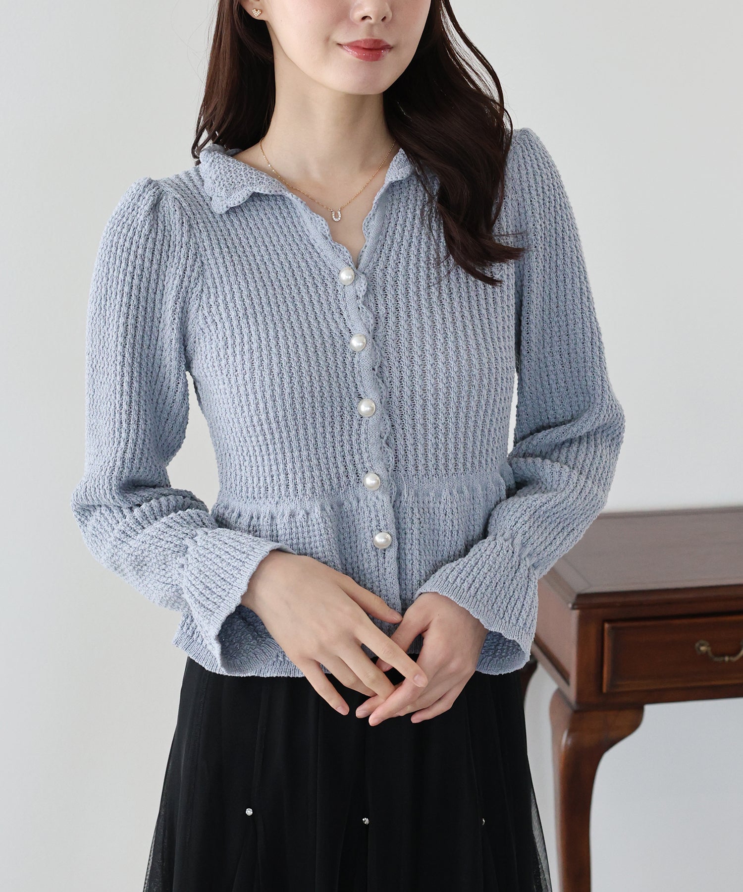 パールボタンペプラムニット