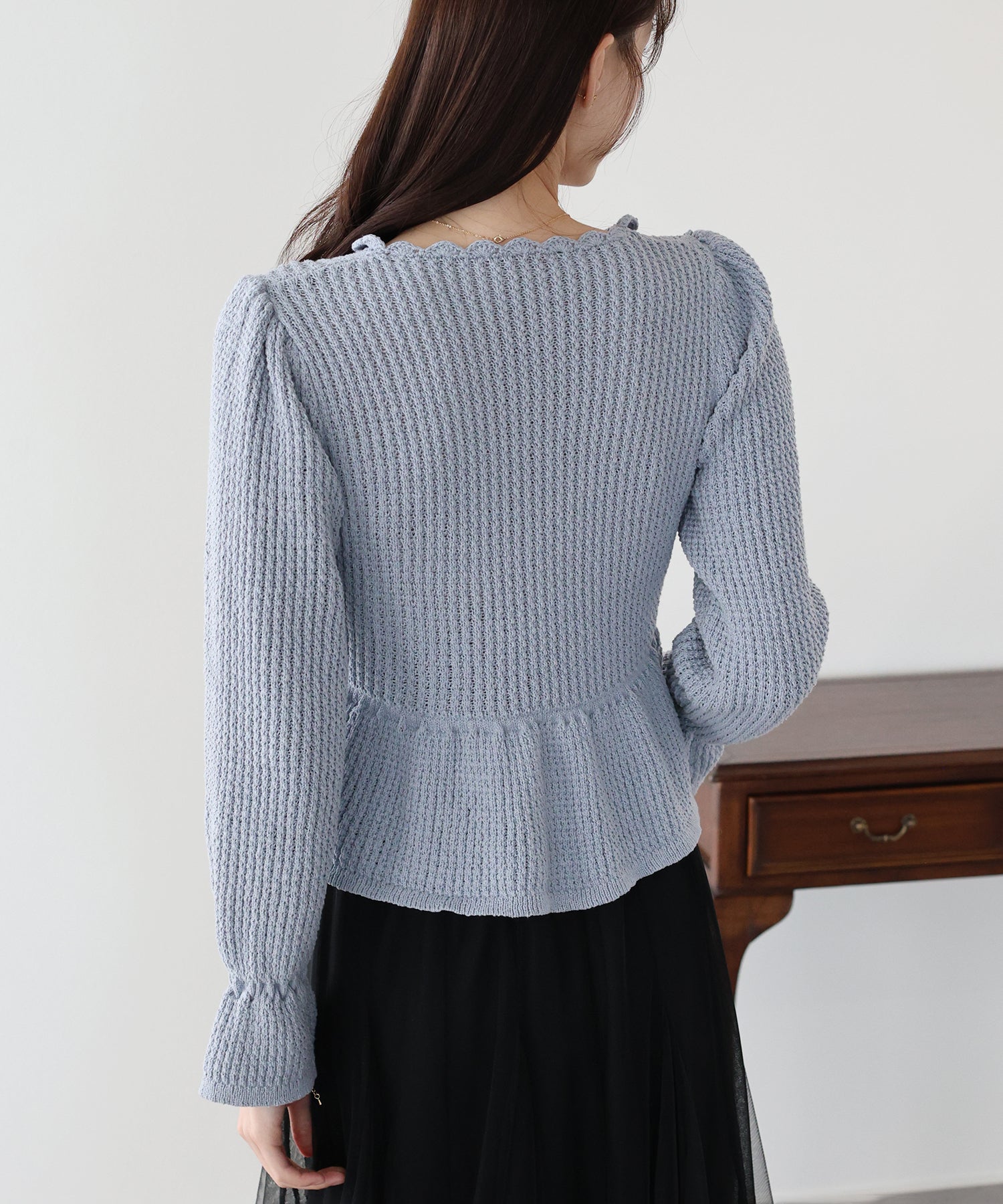 TIME SALE【早割5%OFF】スカラップパフスリーブニット