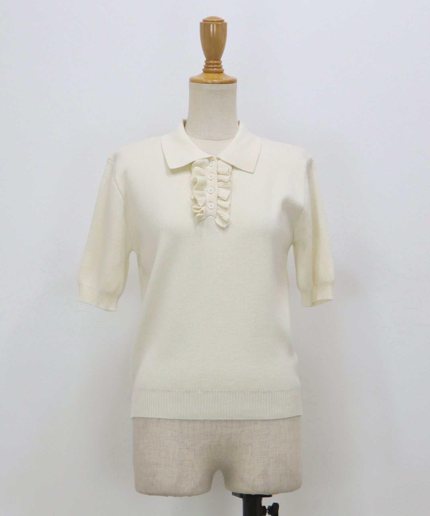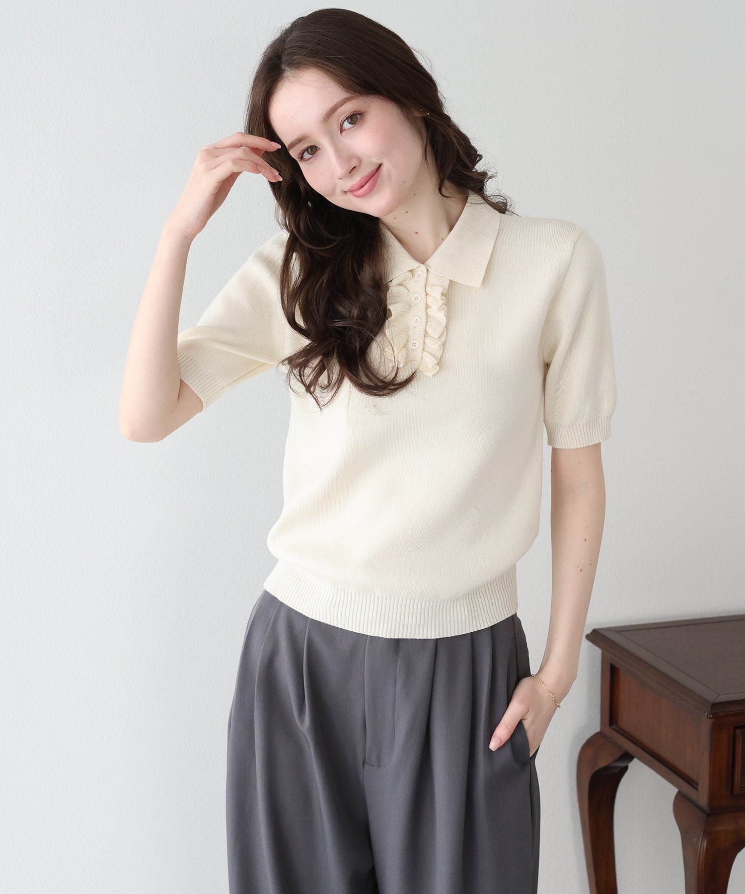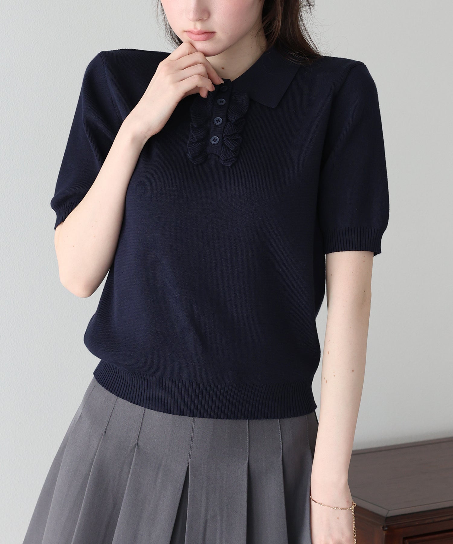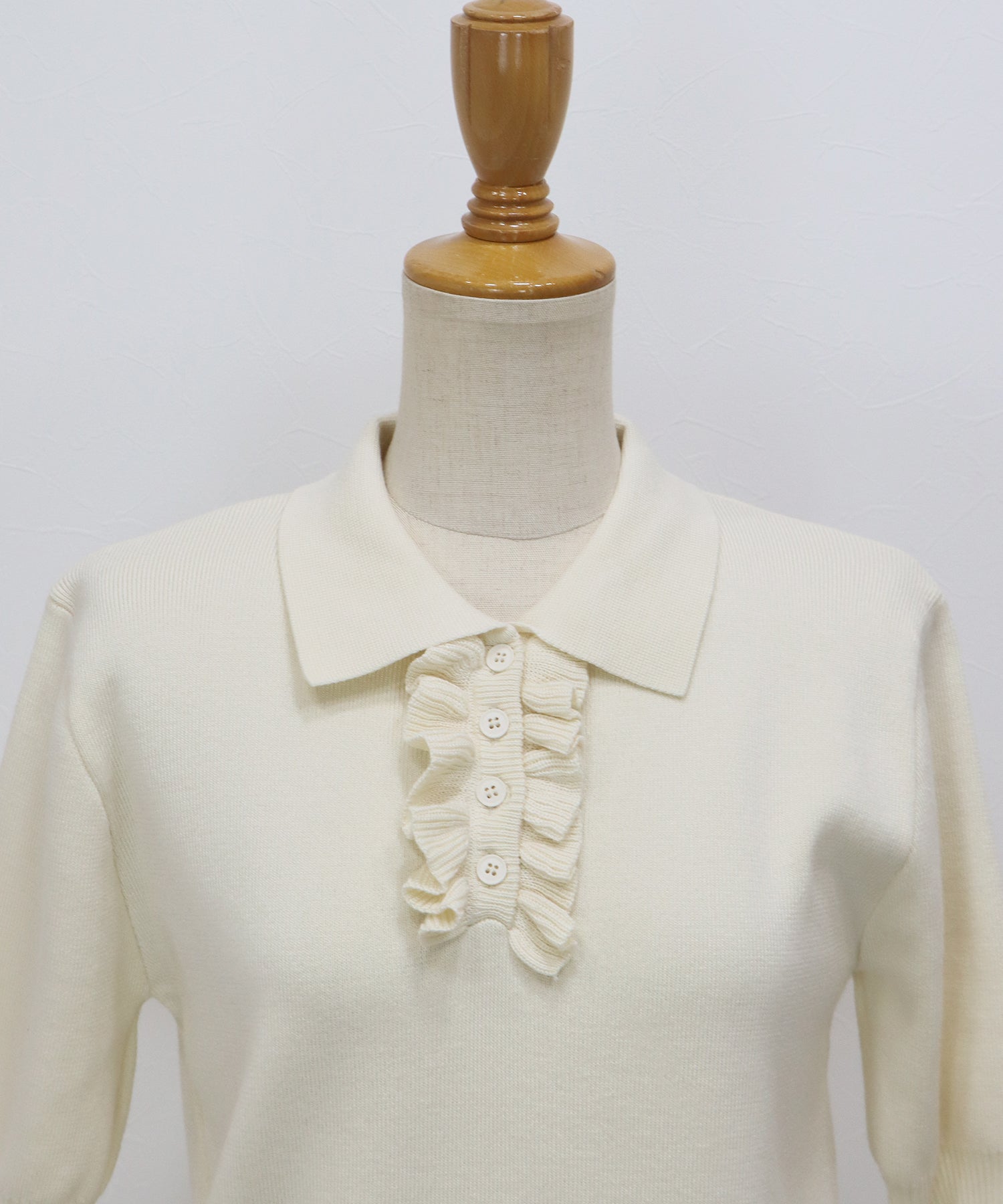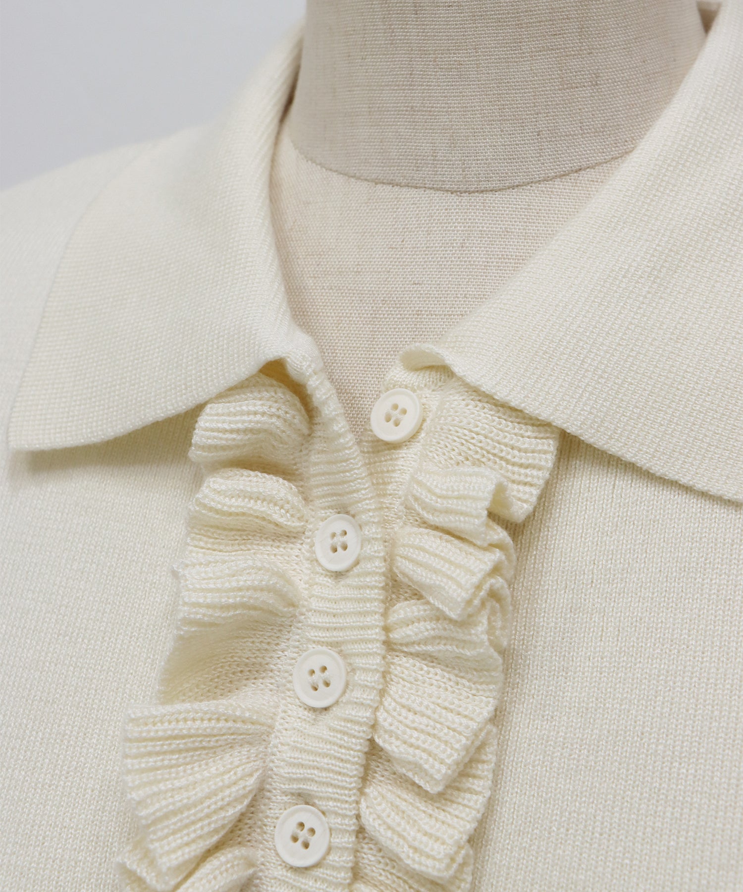 TIME SALE【早割5%OFF】フロントフリルポロニット
