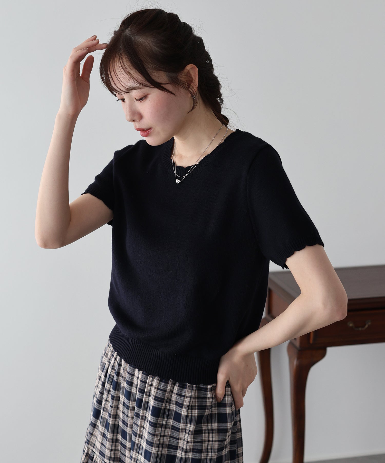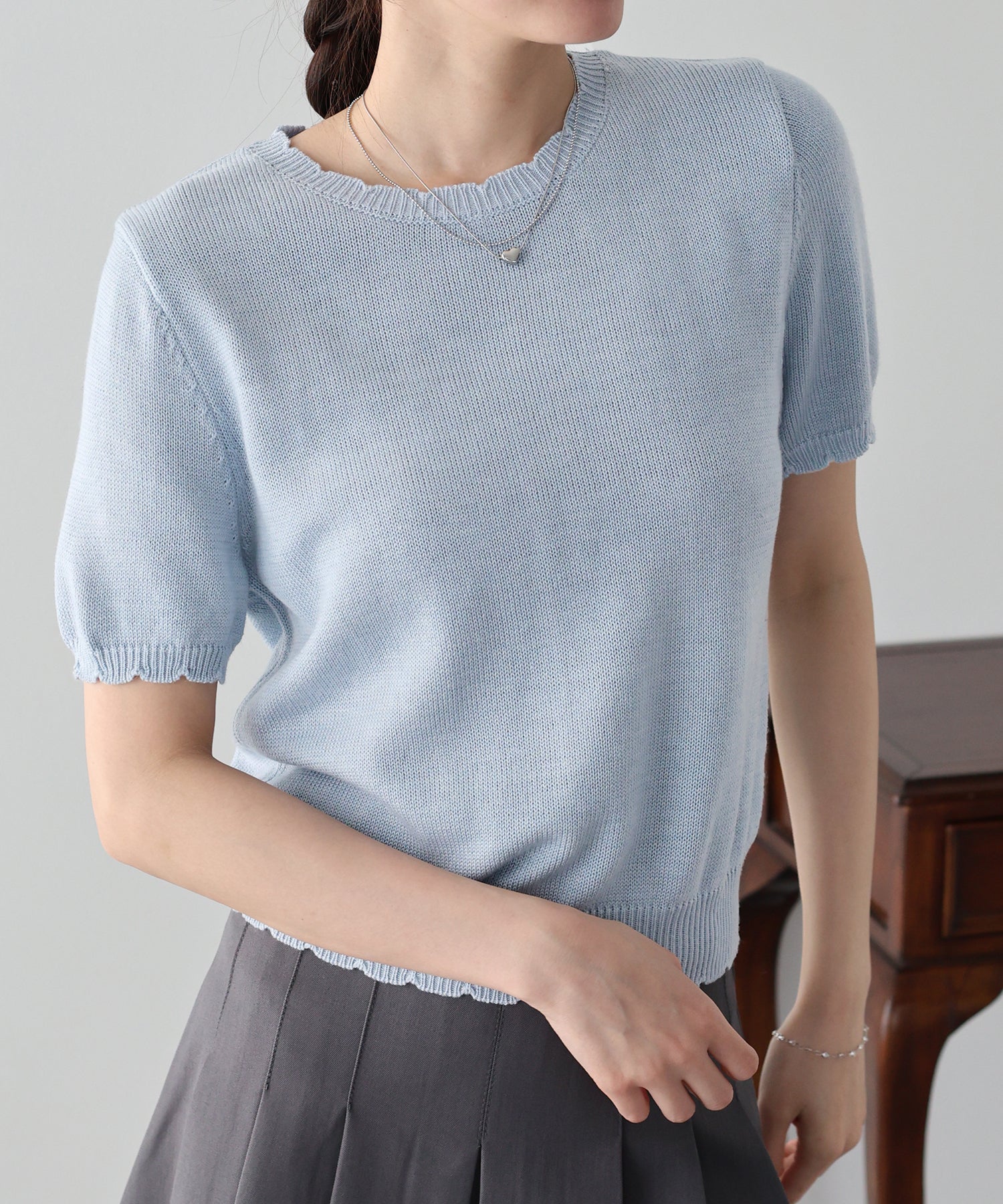 ネック・袖口・裾:スカラップデザイン