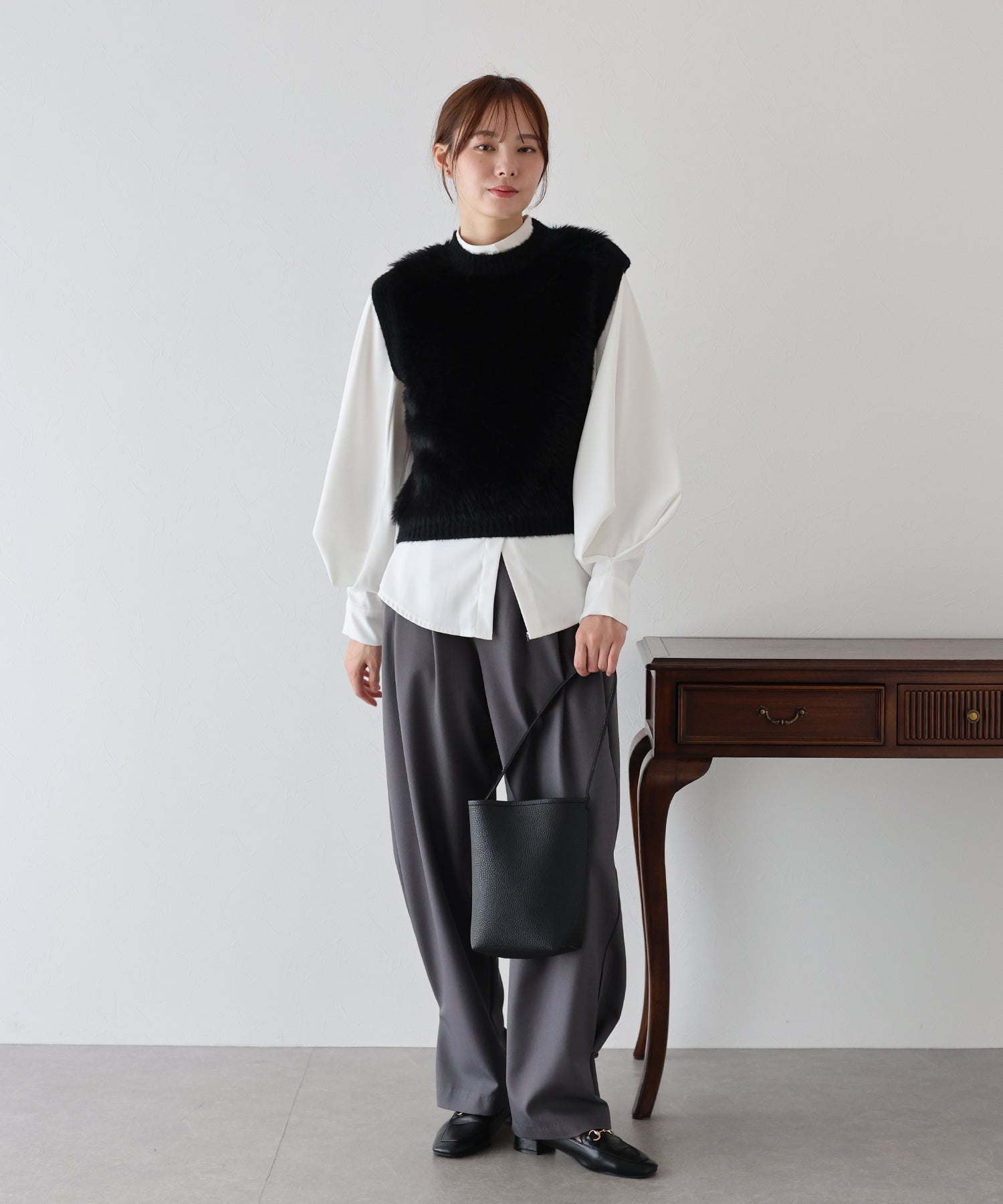 いつものコーデに取り入れるだけで、表面感のあるふわふわとしたシャギー素材が季節感を演出し、