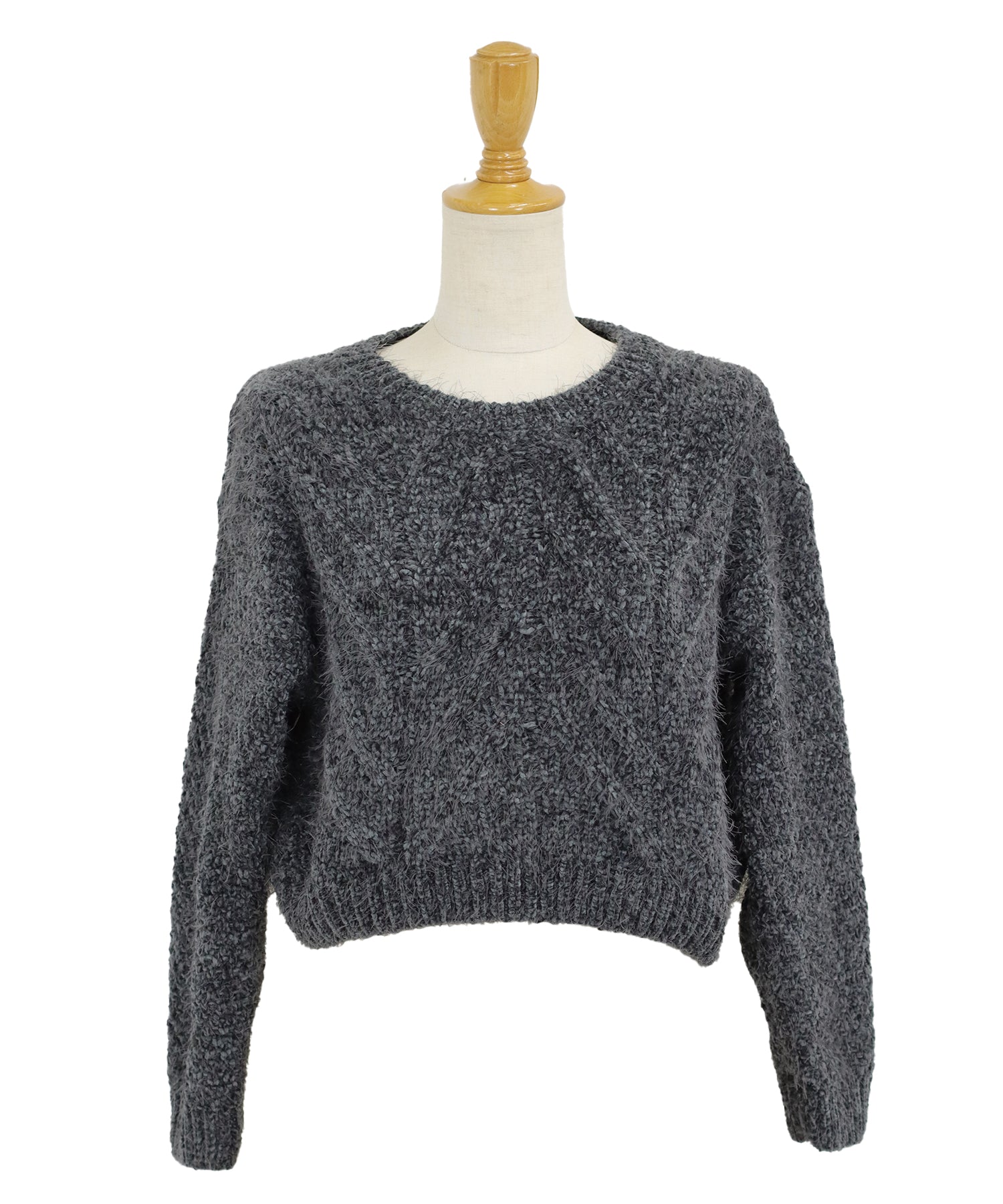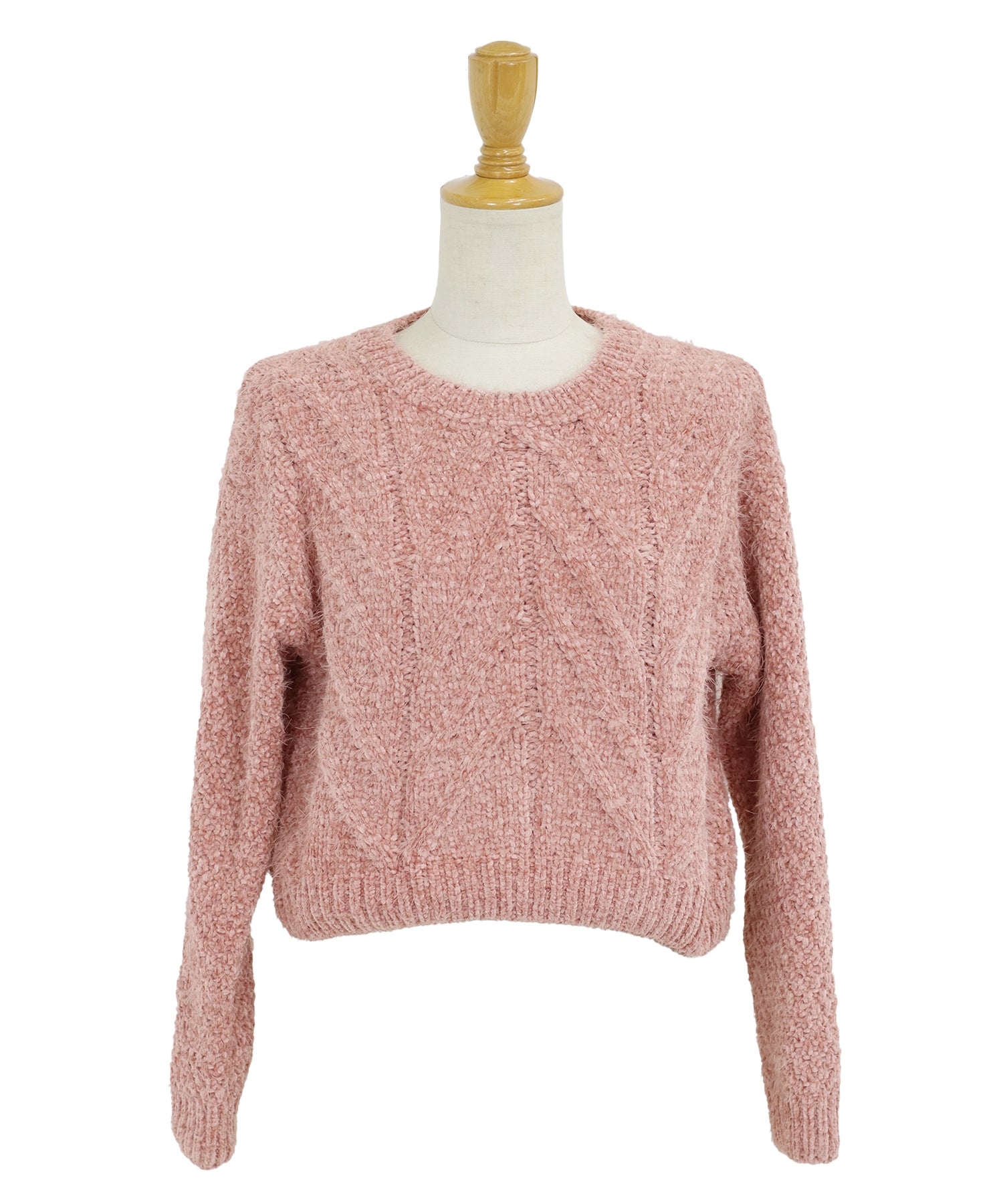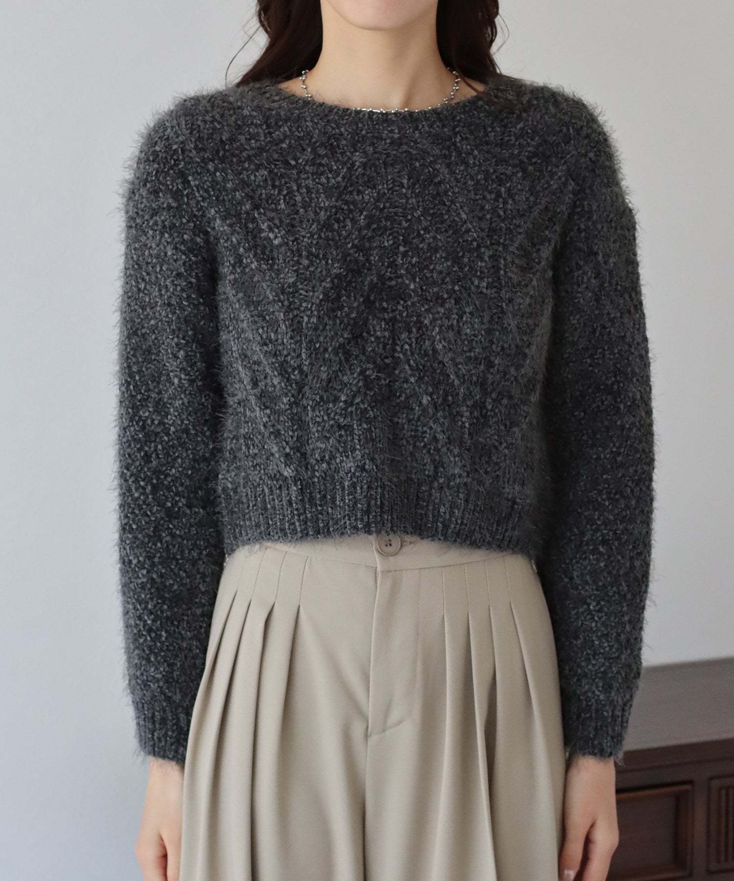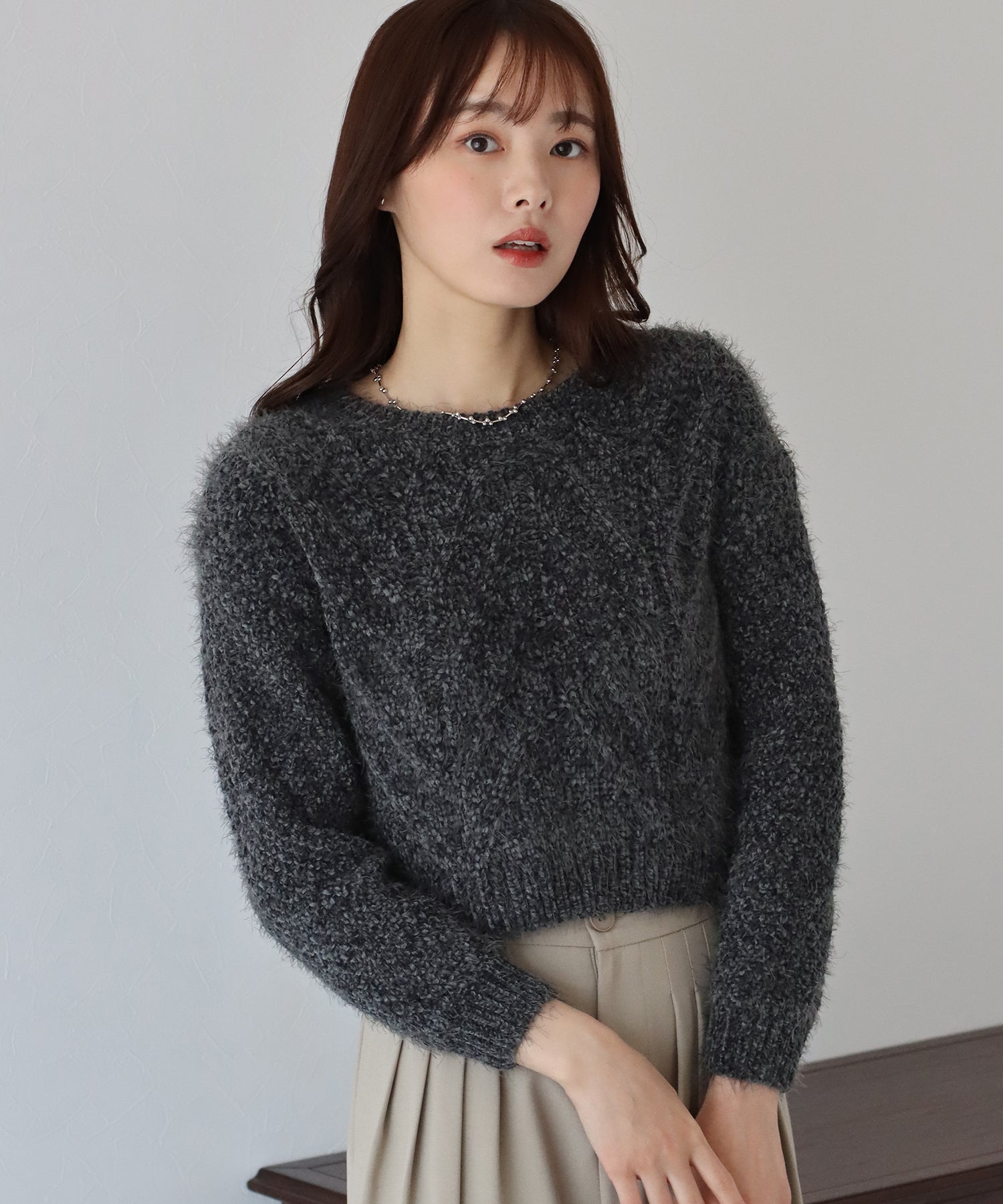 柔らかな肌触りで、暖かく軽い着心地が魅力のモール糸を使用したケーブルニット。