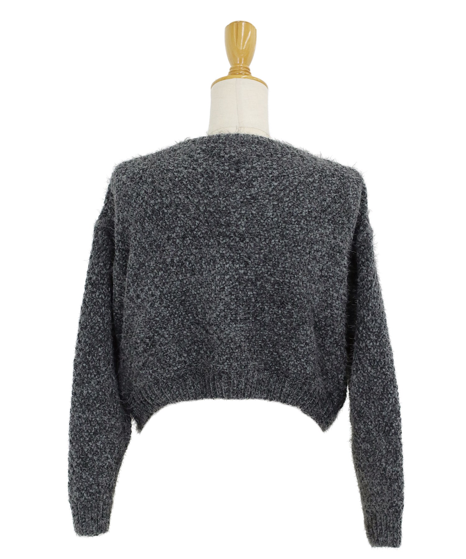 モールニットとシャギーニットのミックス素材 厚さ:普通 透け感:なし 伸縮性:あり |