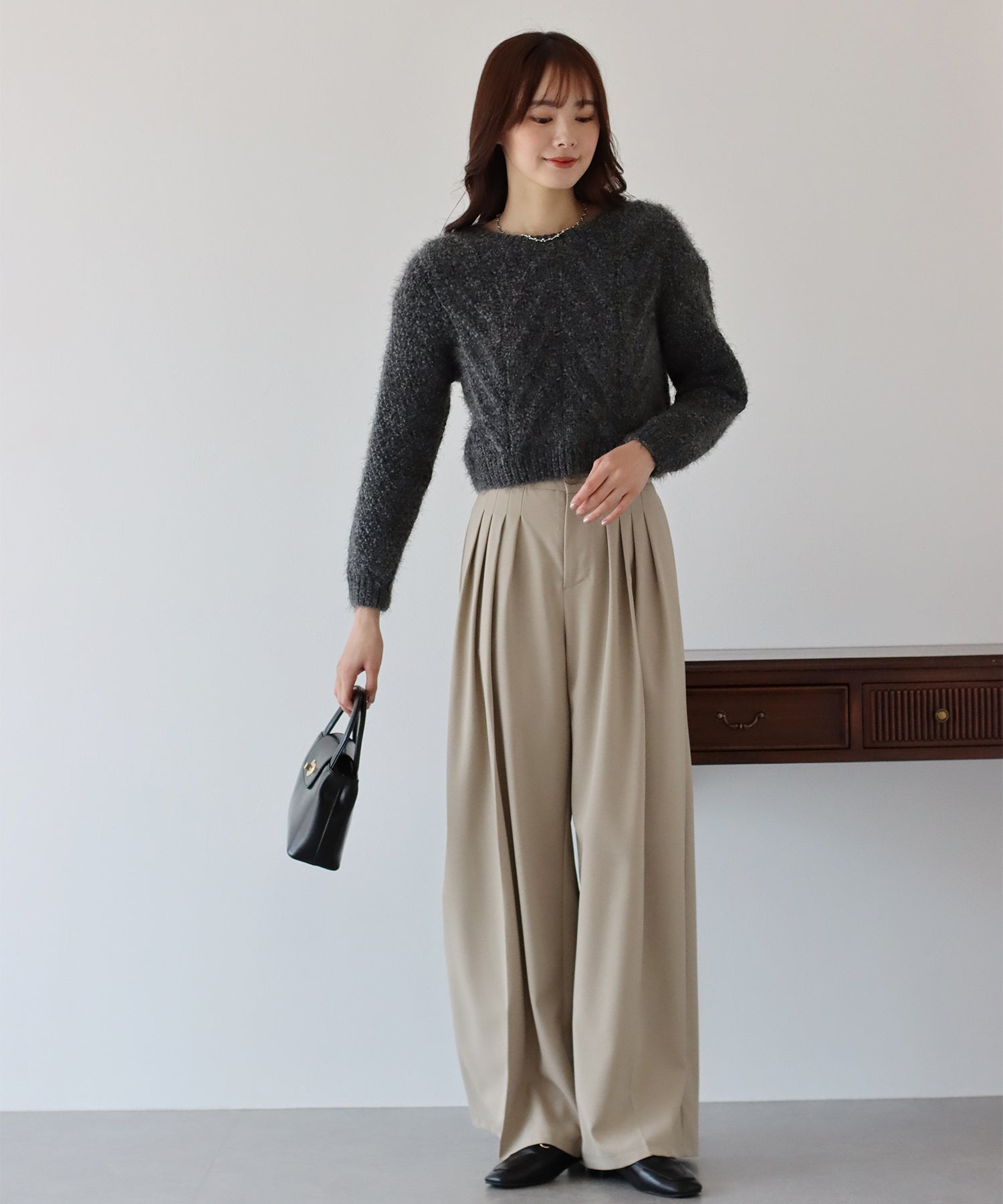 ざっくりとした立体感のあるケーブル編みが秋冬らしいデザイン。