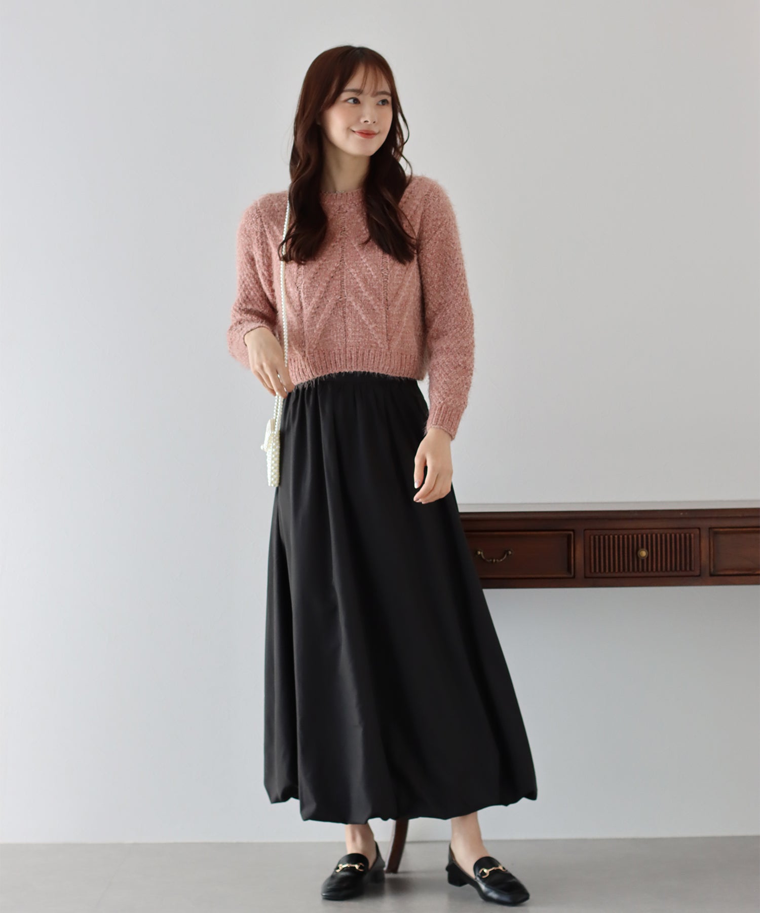 ハイウエストのスカートやパンツを合わせるとバランス良く着こなせます。