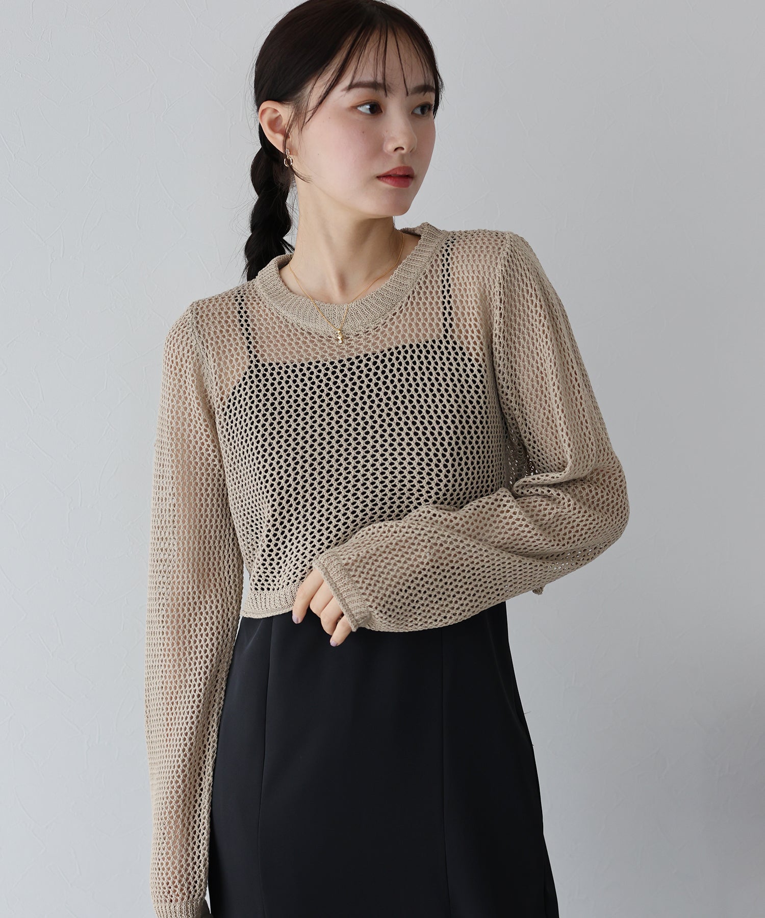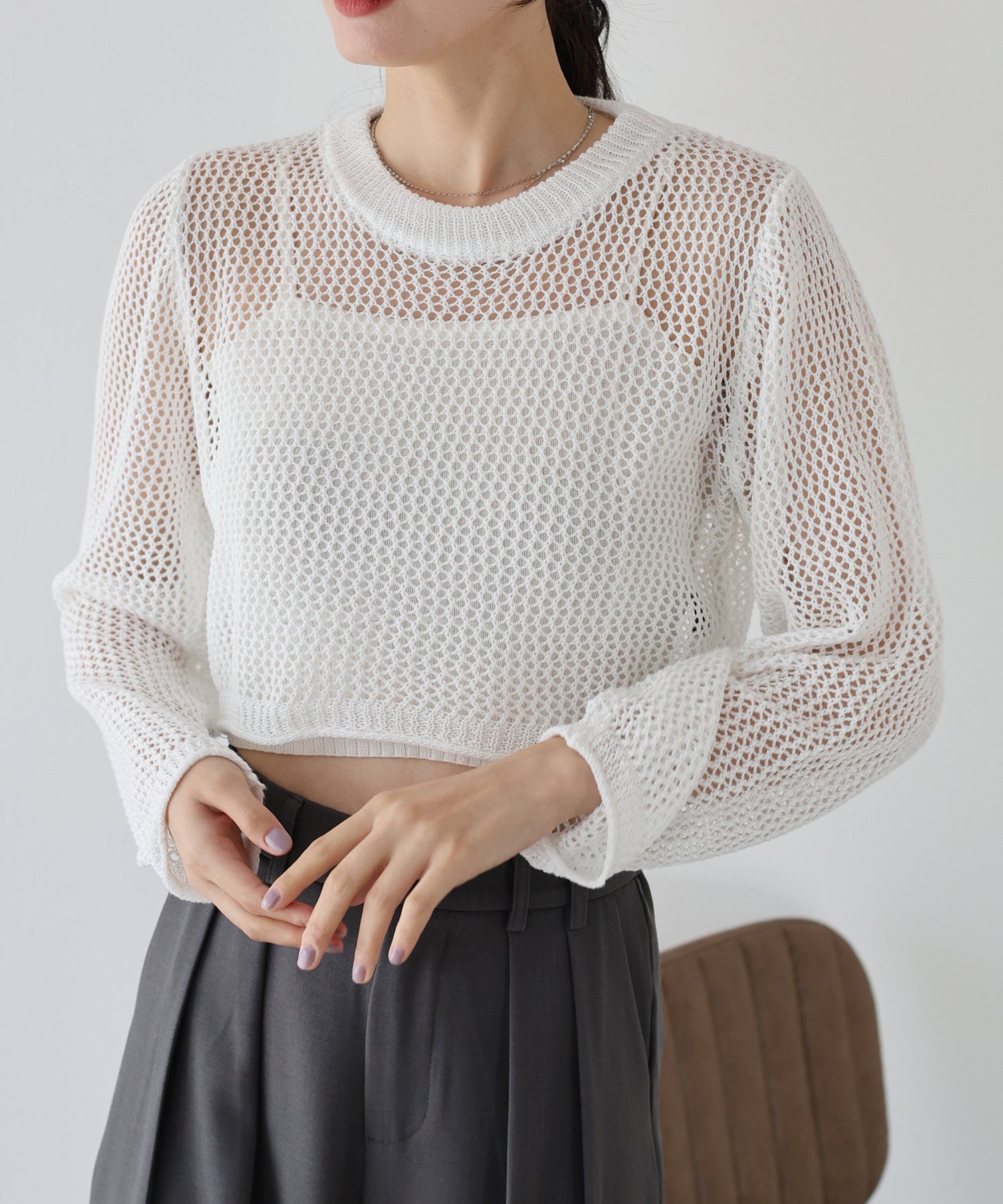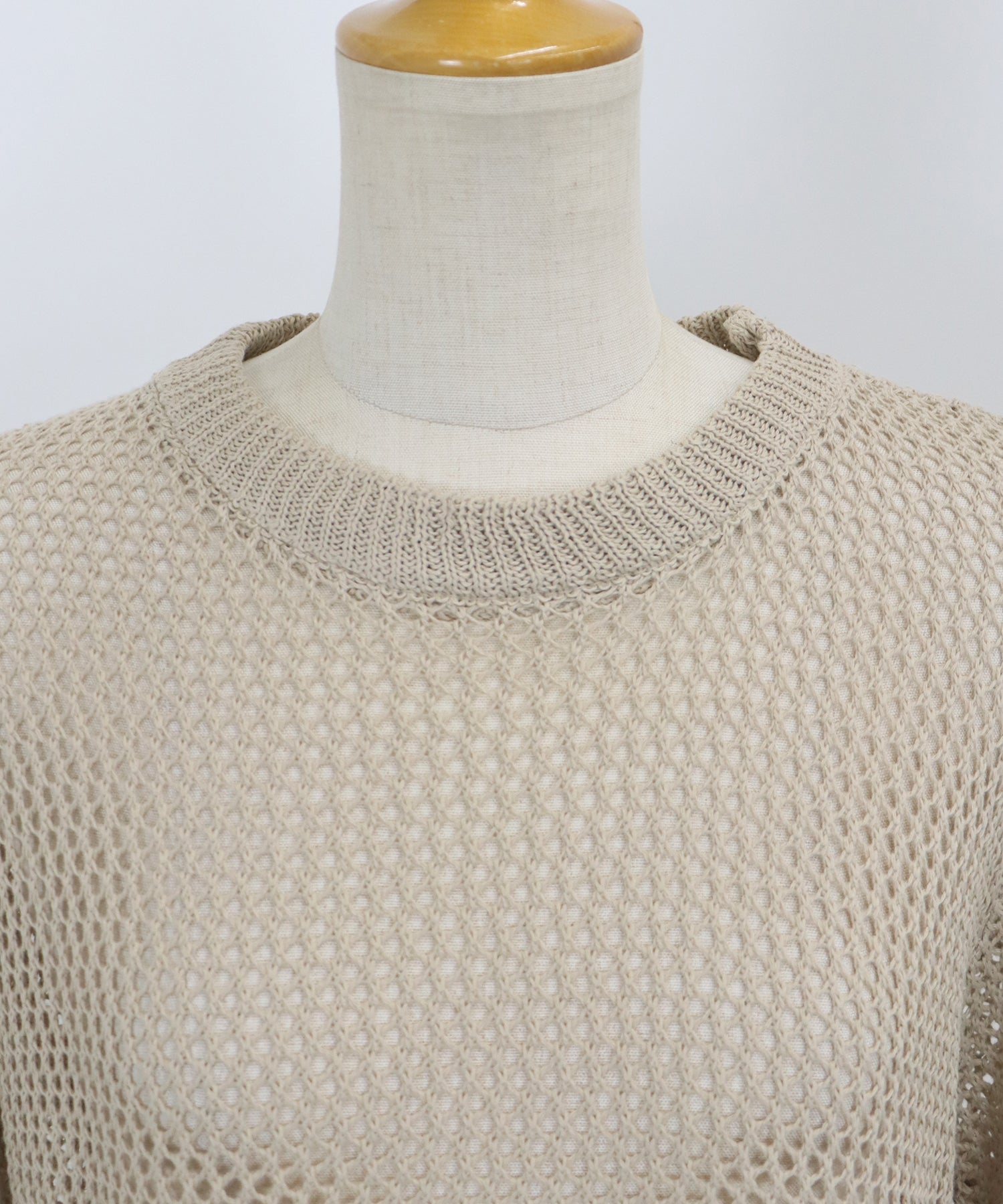 軽やかな印象を与えるゆるメッシュのニットプルオーバー。