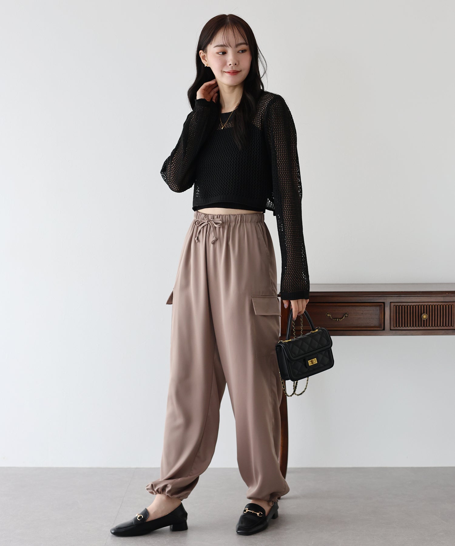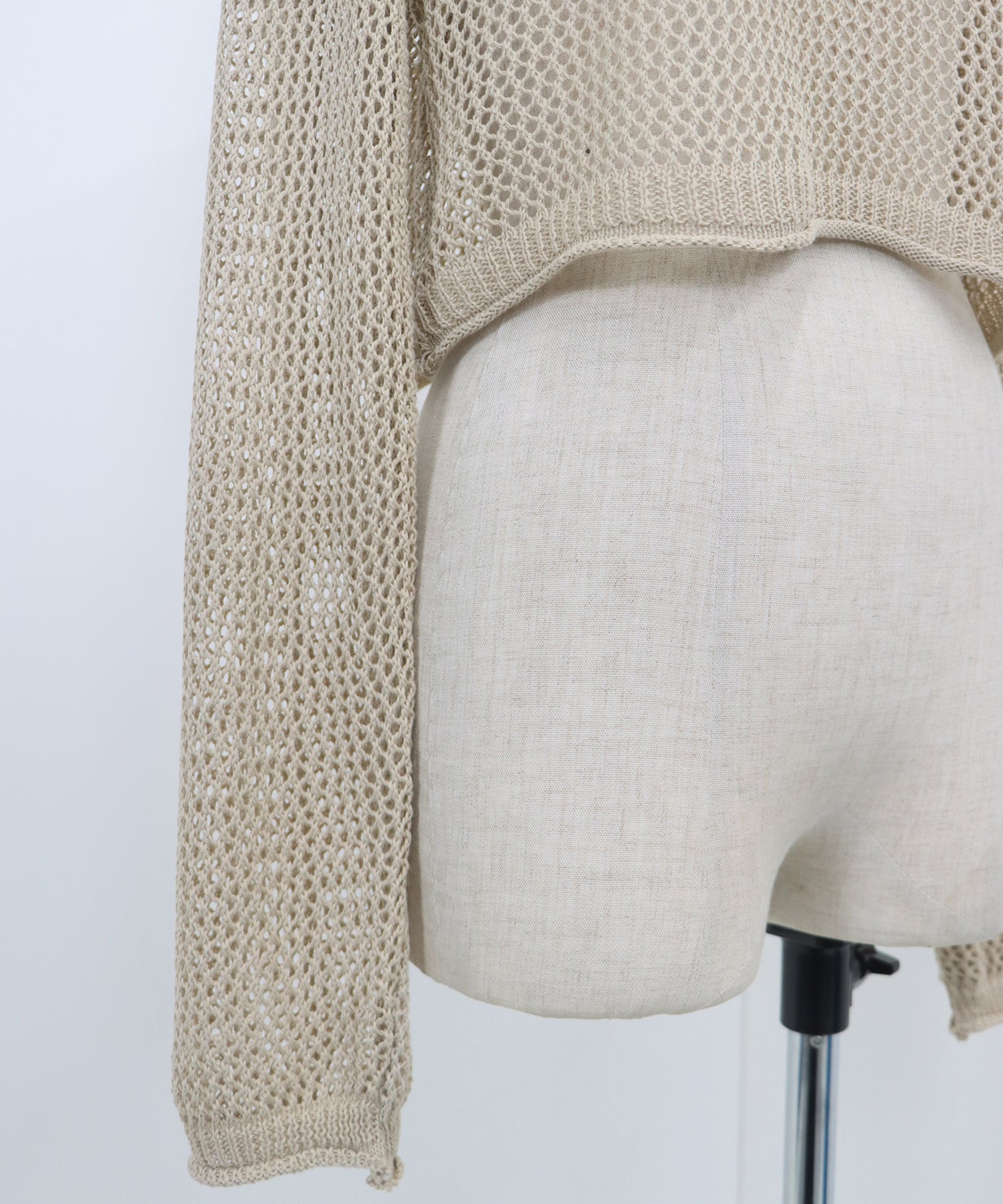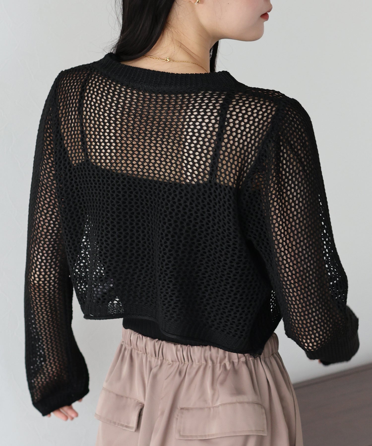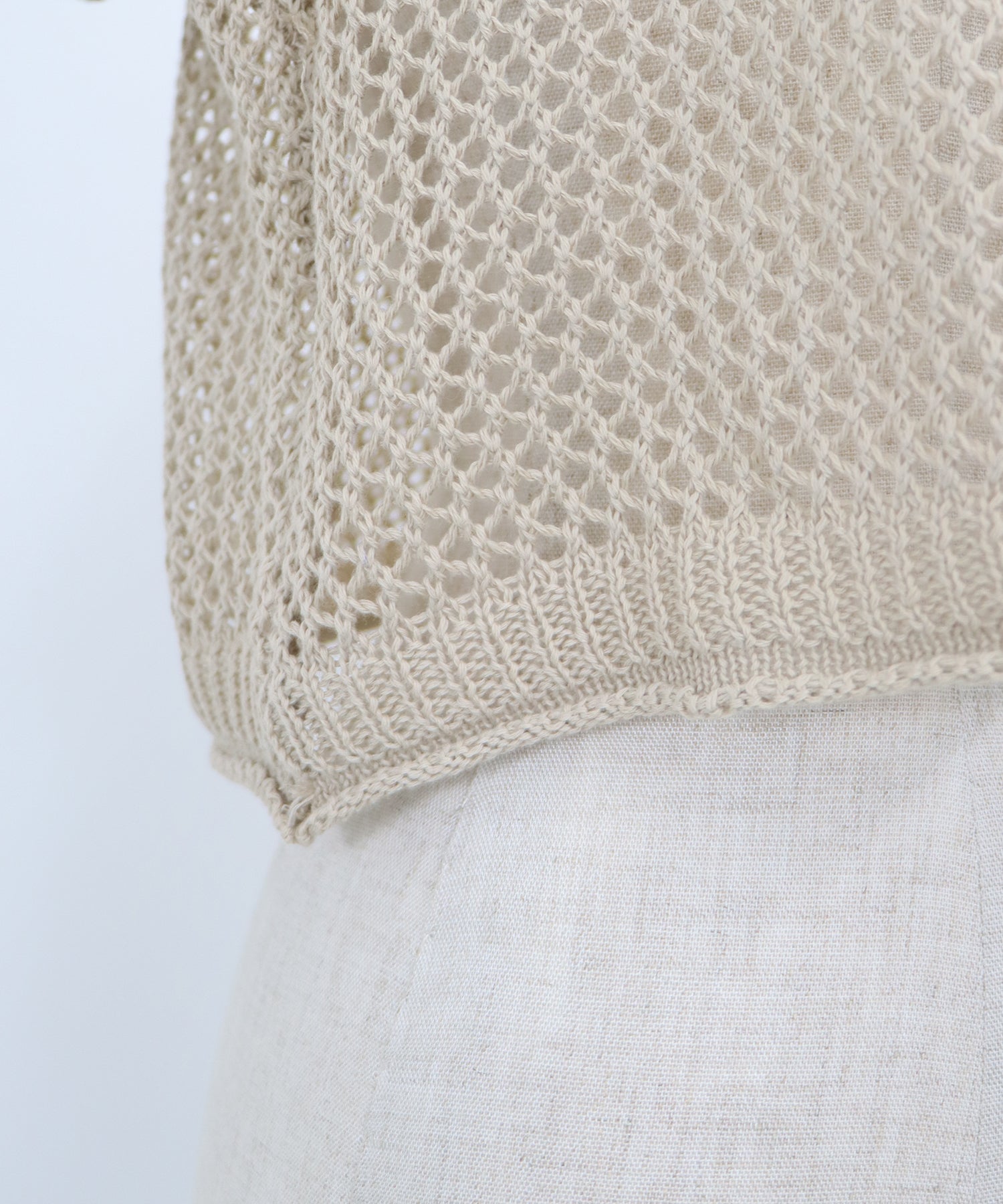 透かし編みが爽やか&上品な透け感なので、キャミソールやタンクトップなどインナーで遊びを入れた着用もおすすめです。