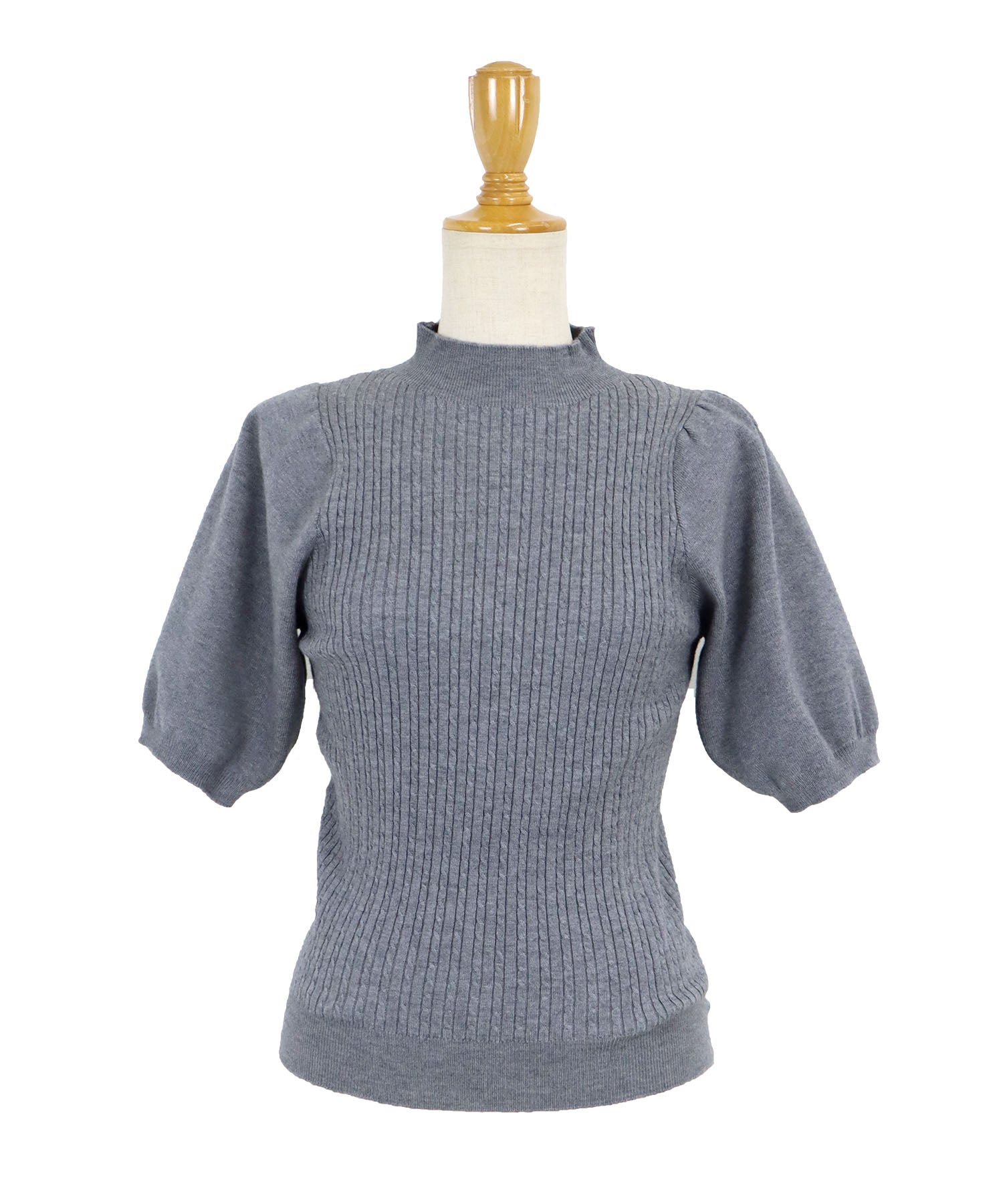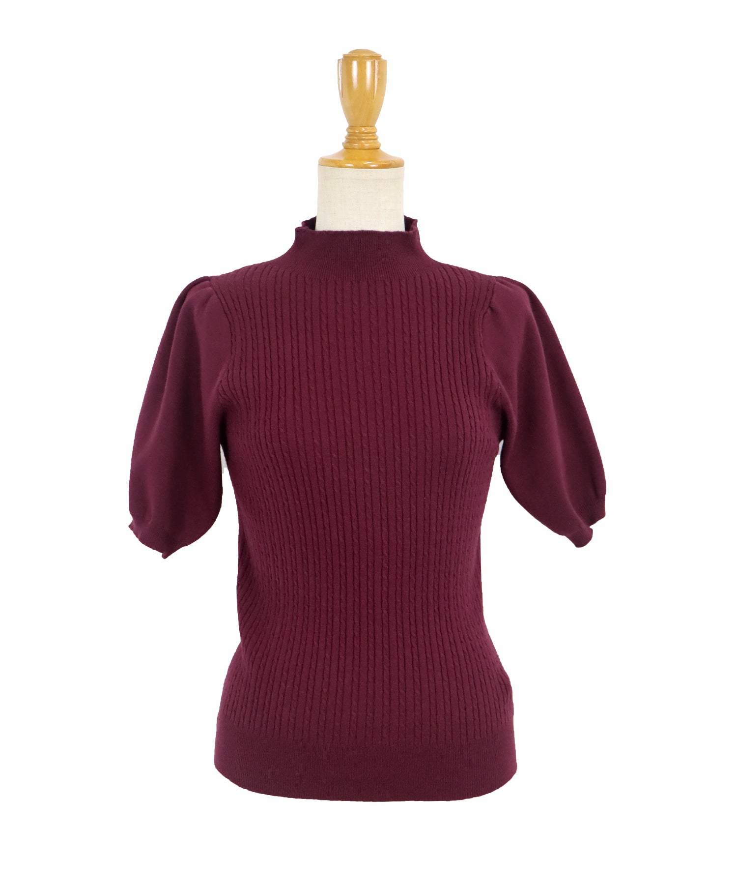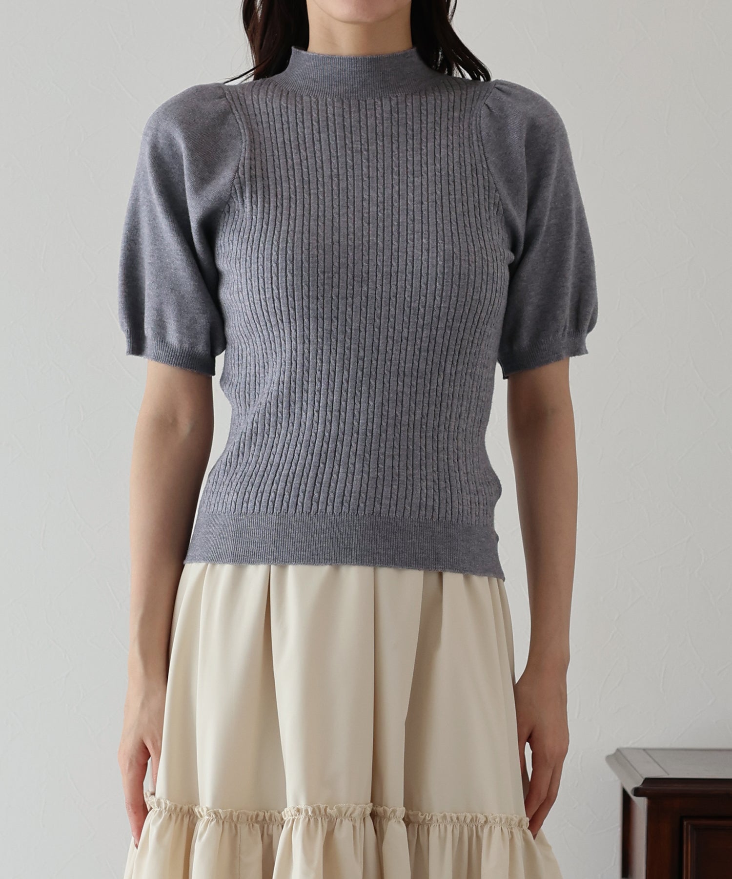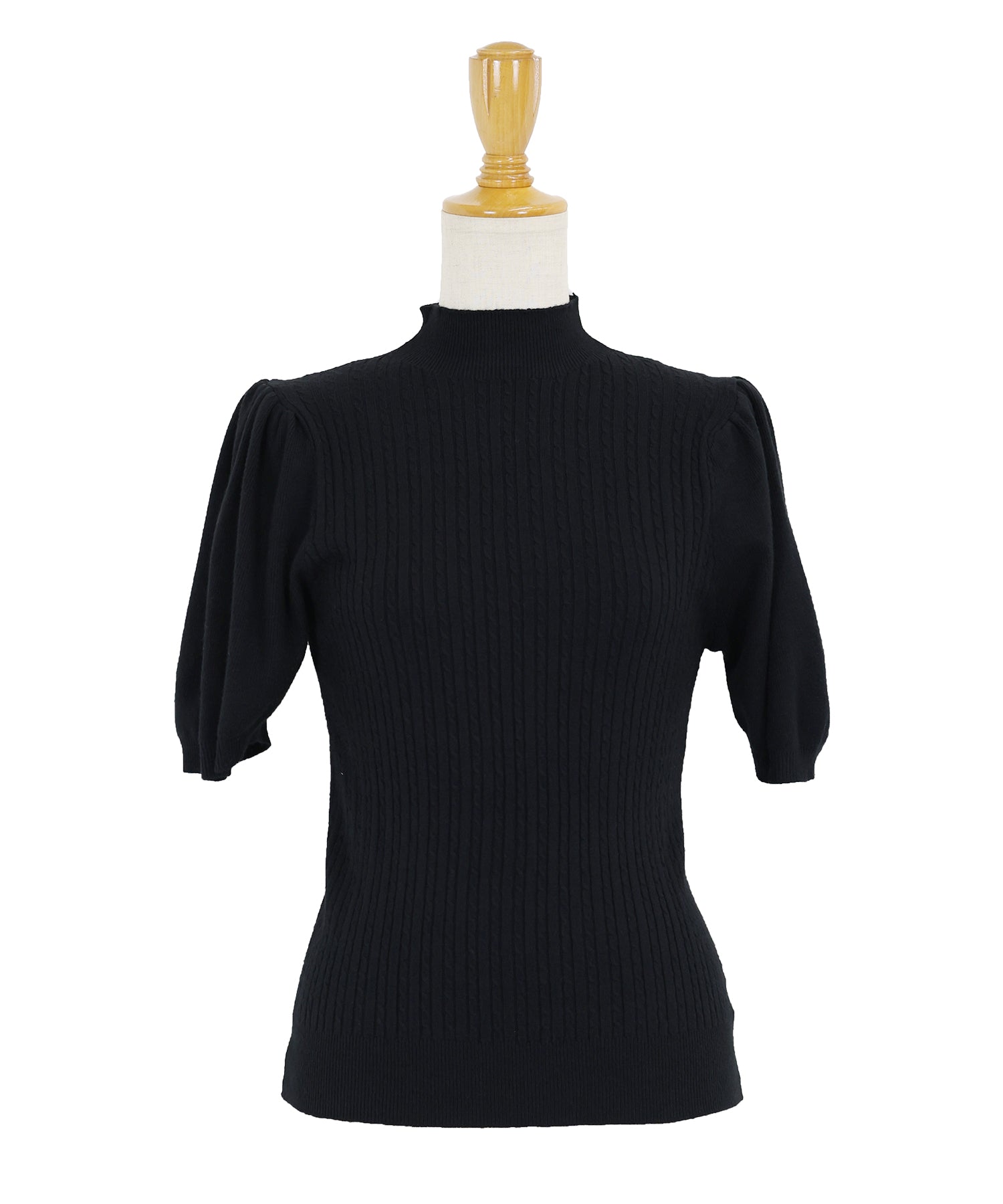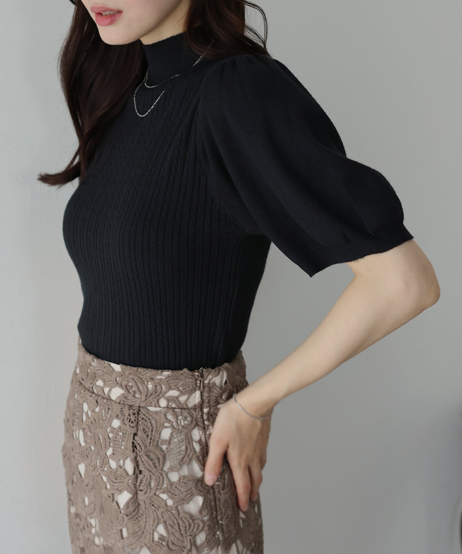 【SALE】パフスリーブ半袖ミニケーブルニット