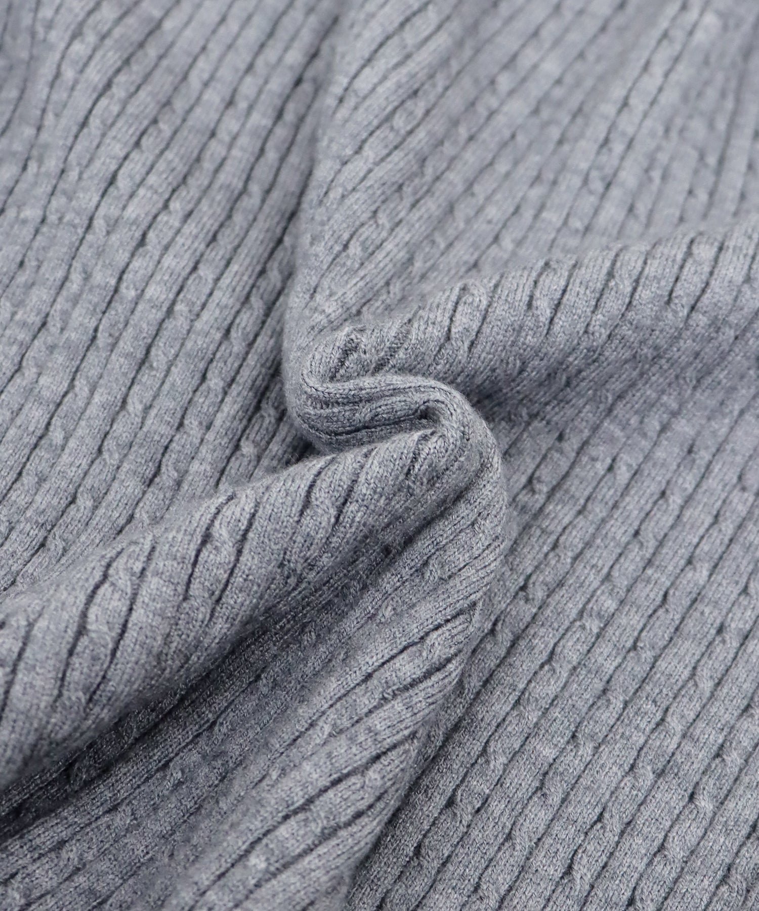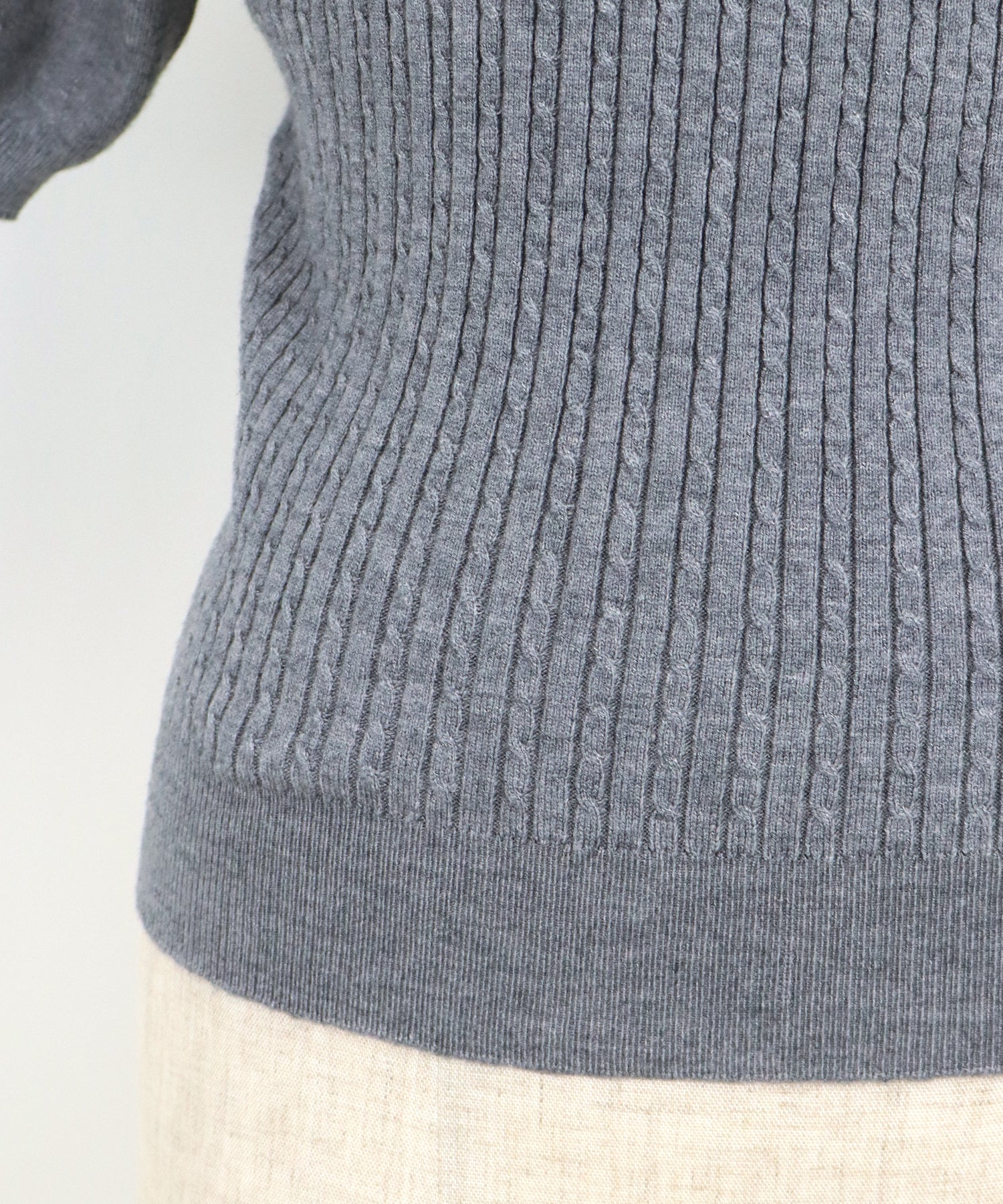 立体感のあるケーブル編みで、カジュアルになりすぎず上品に着られます。