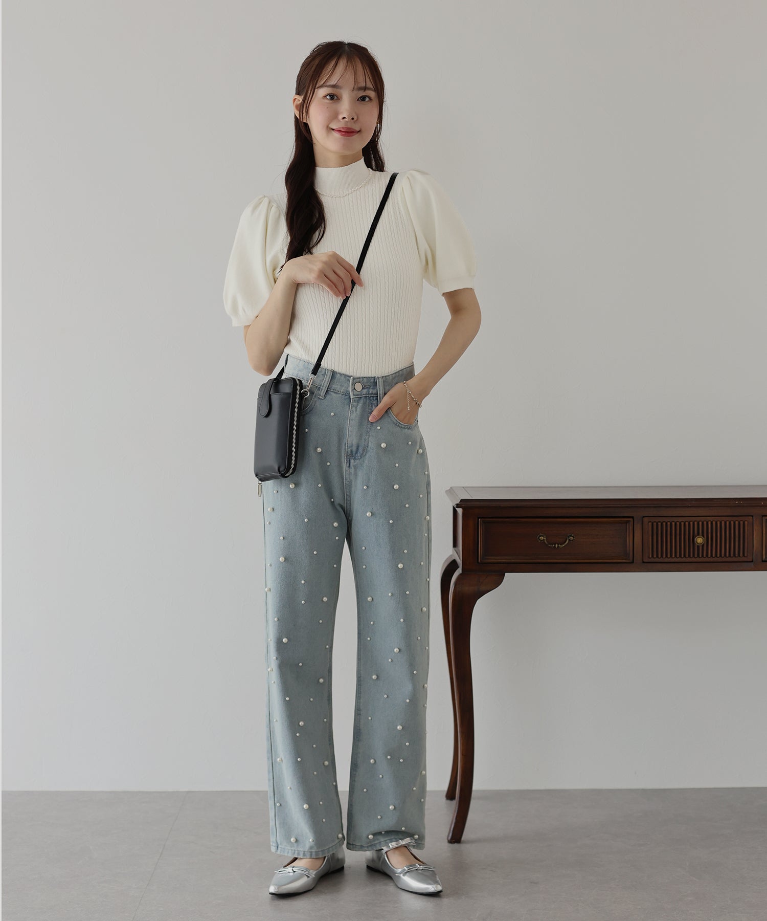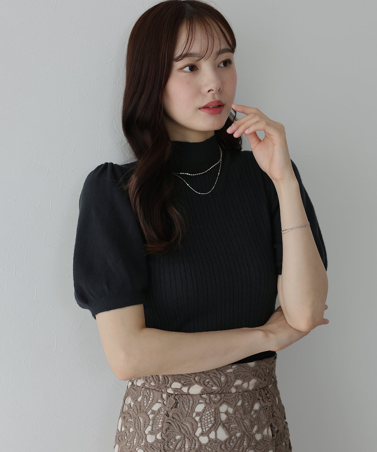 様々なコーデに使えるベーシックな半袖ハイネックニット