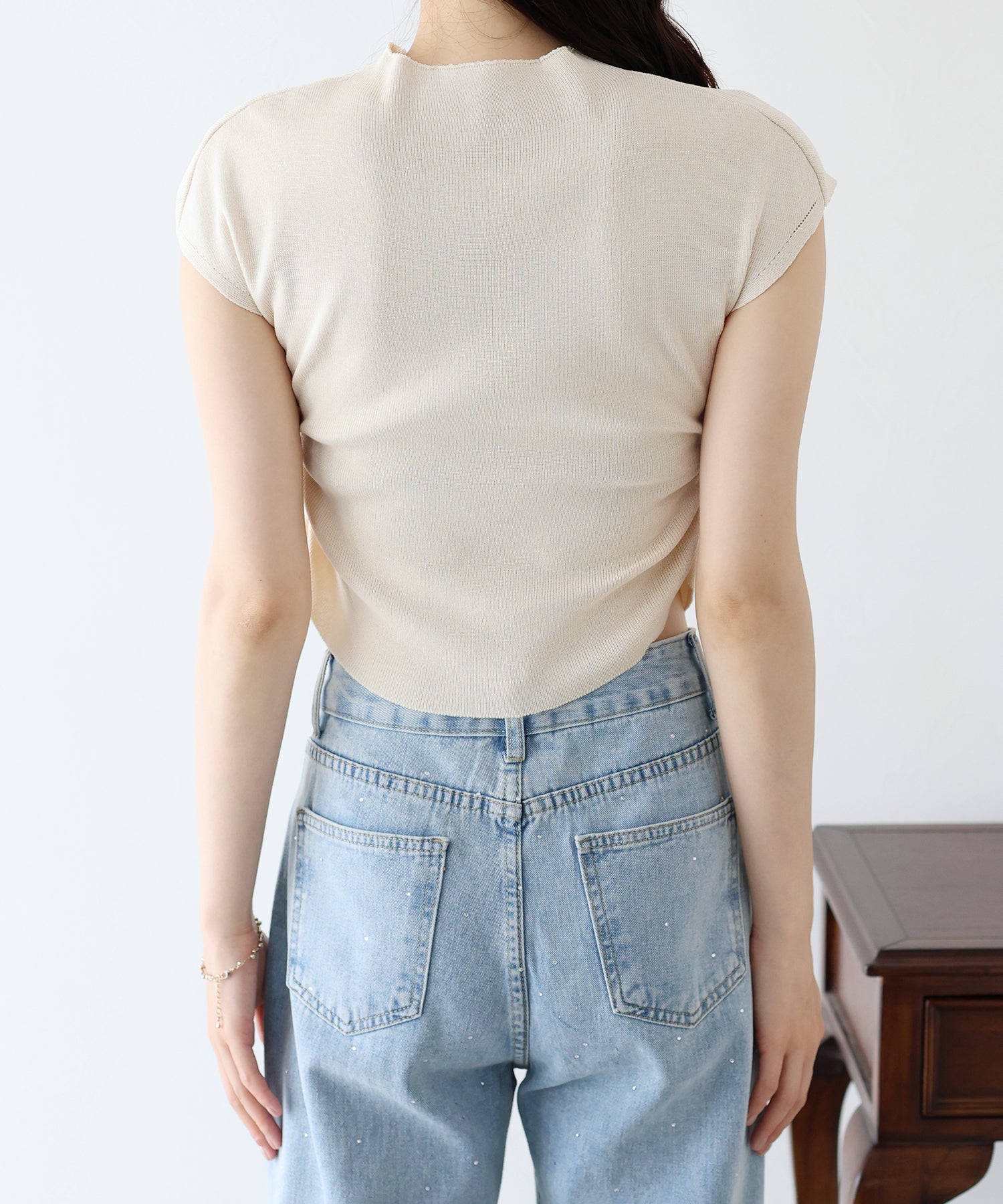 ショート丈なのでハイウエストのボトムスと合わせるのがおすすめ。
