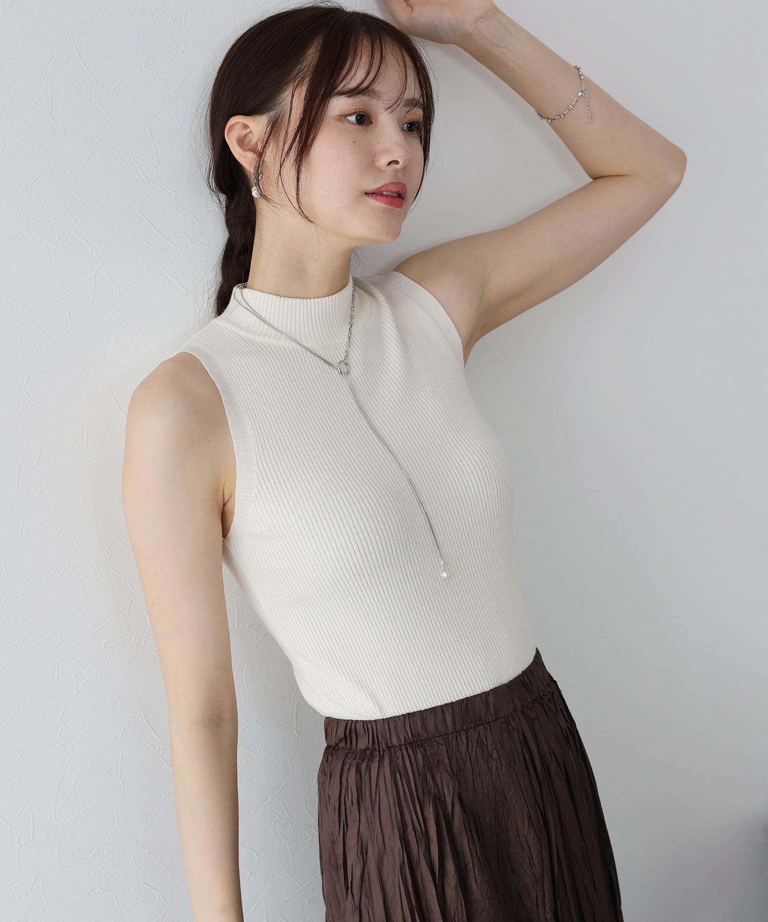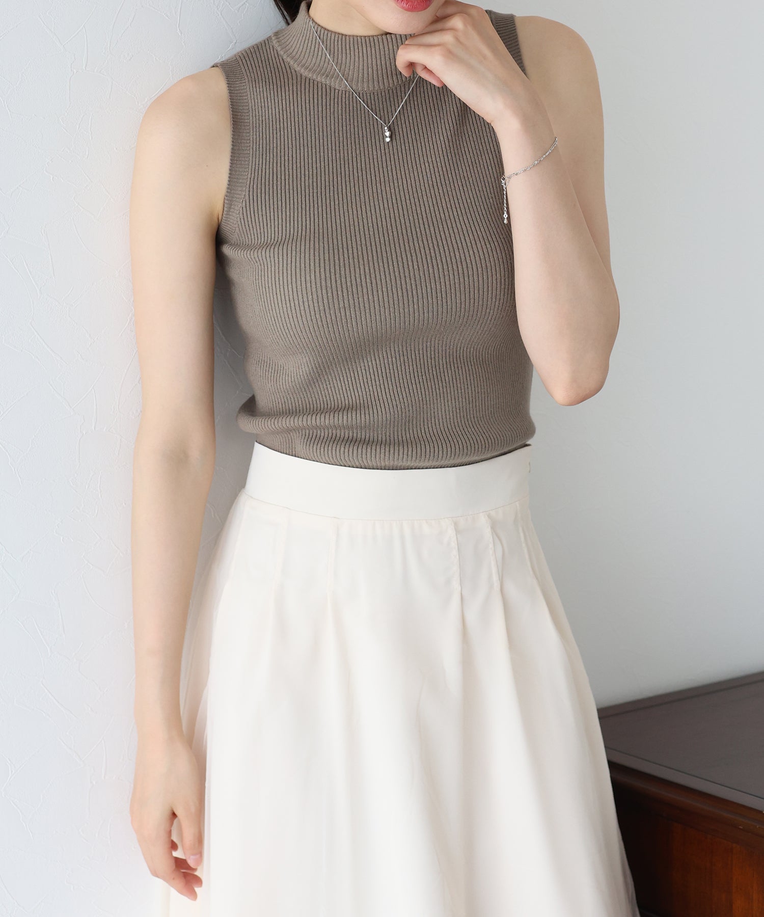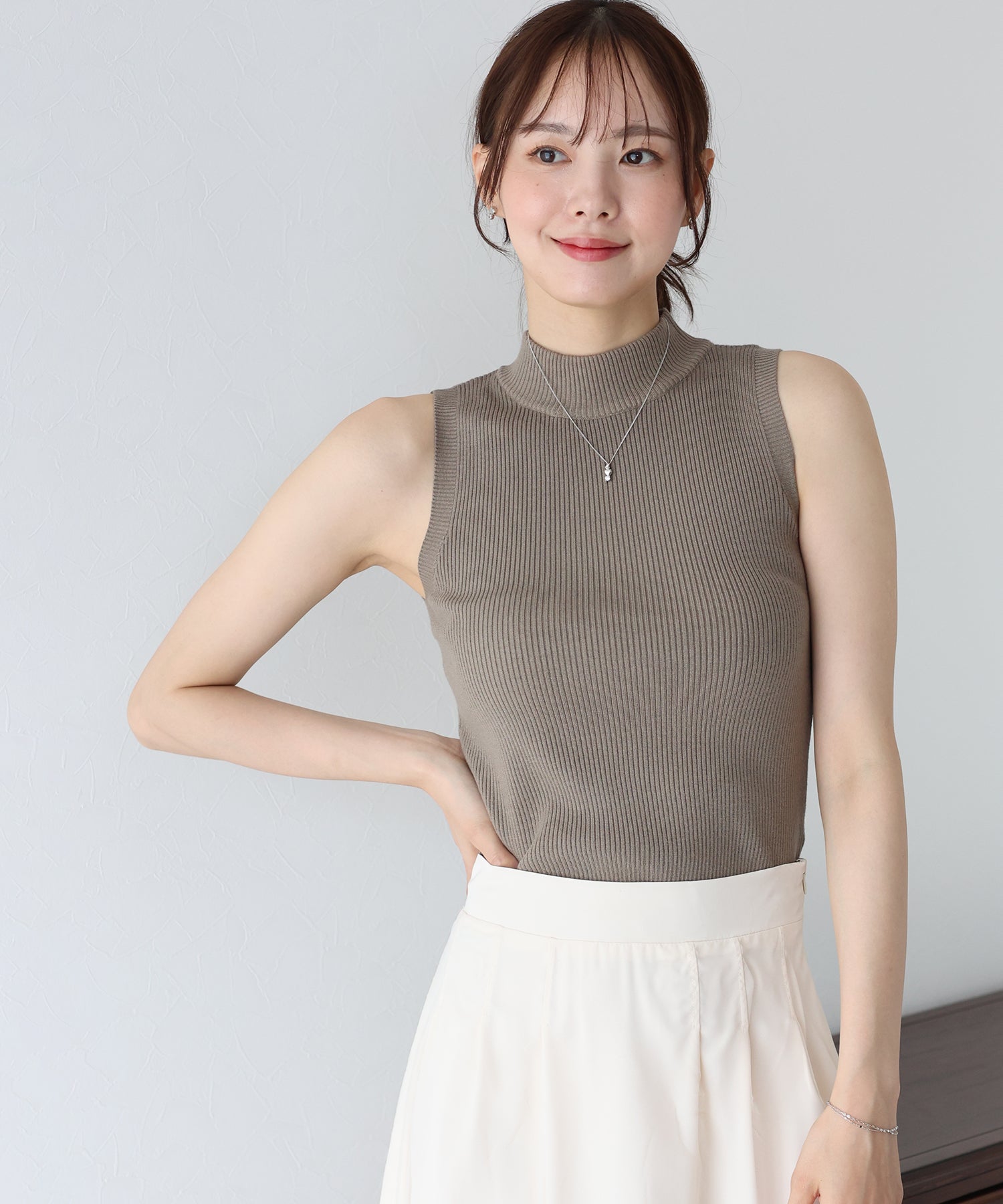 ベーシックなカラーが着回し力抜群のスリーブレスニット。
