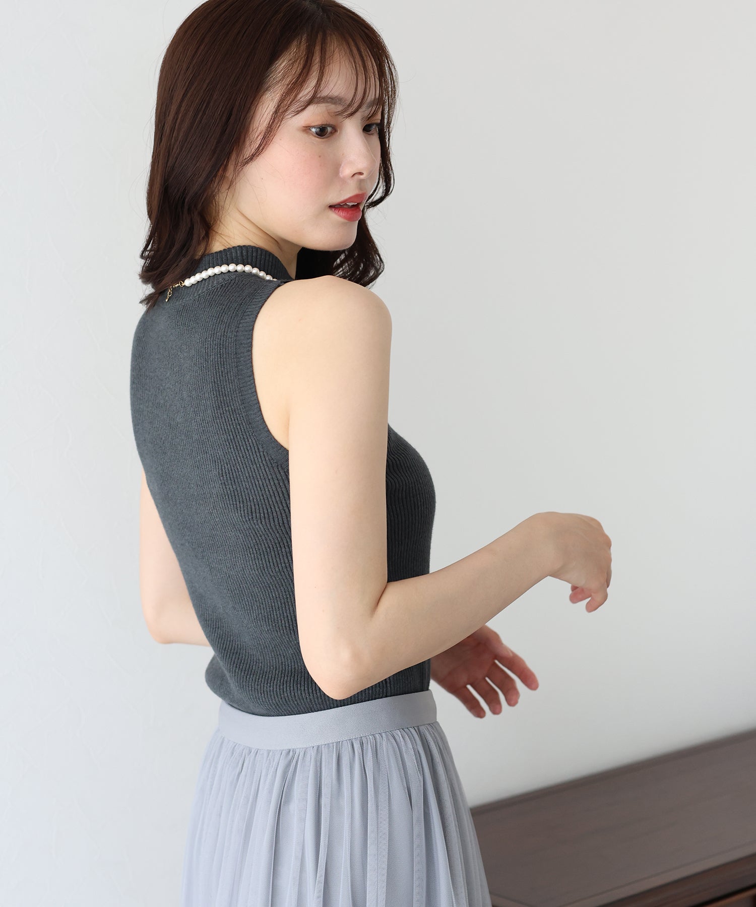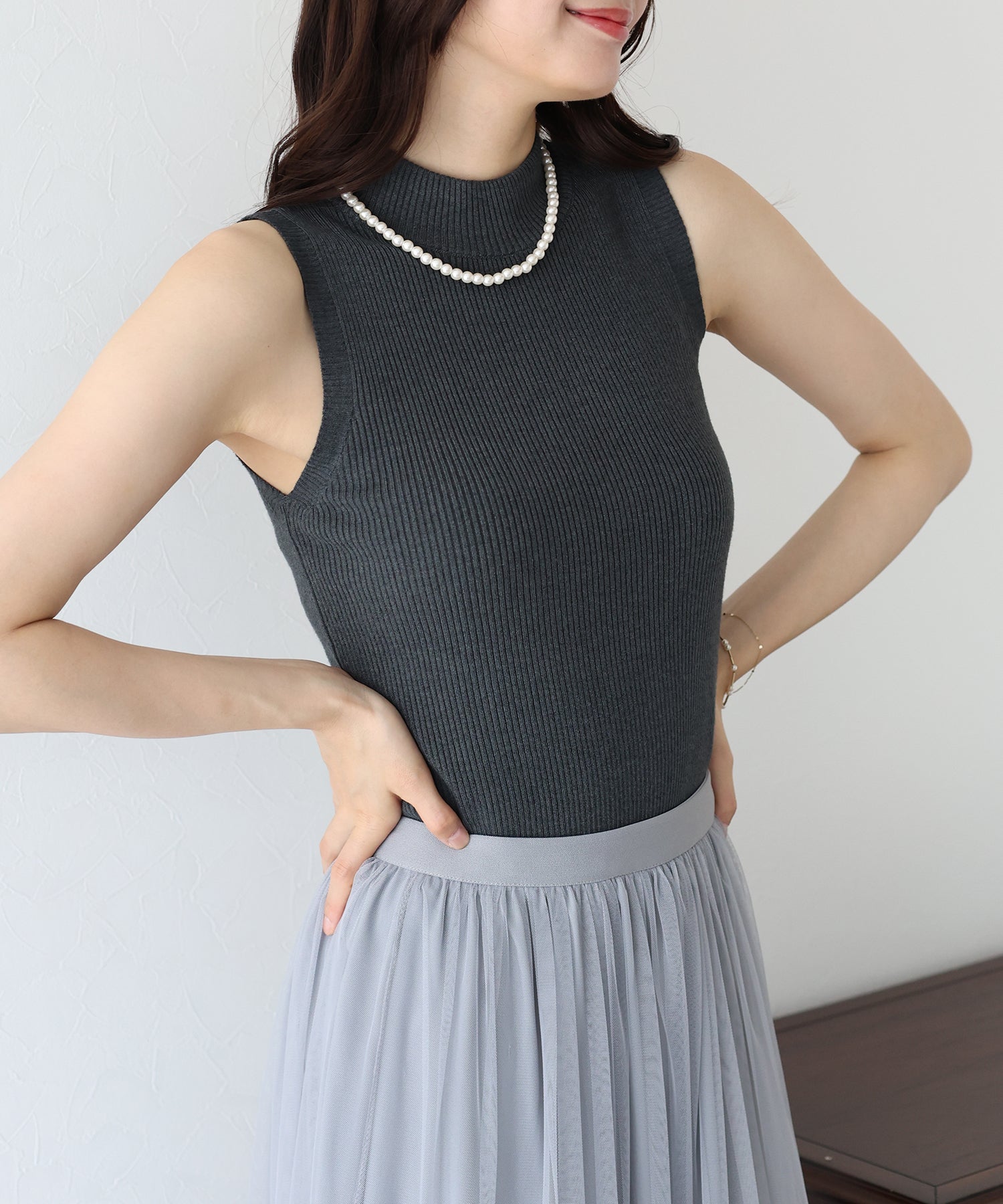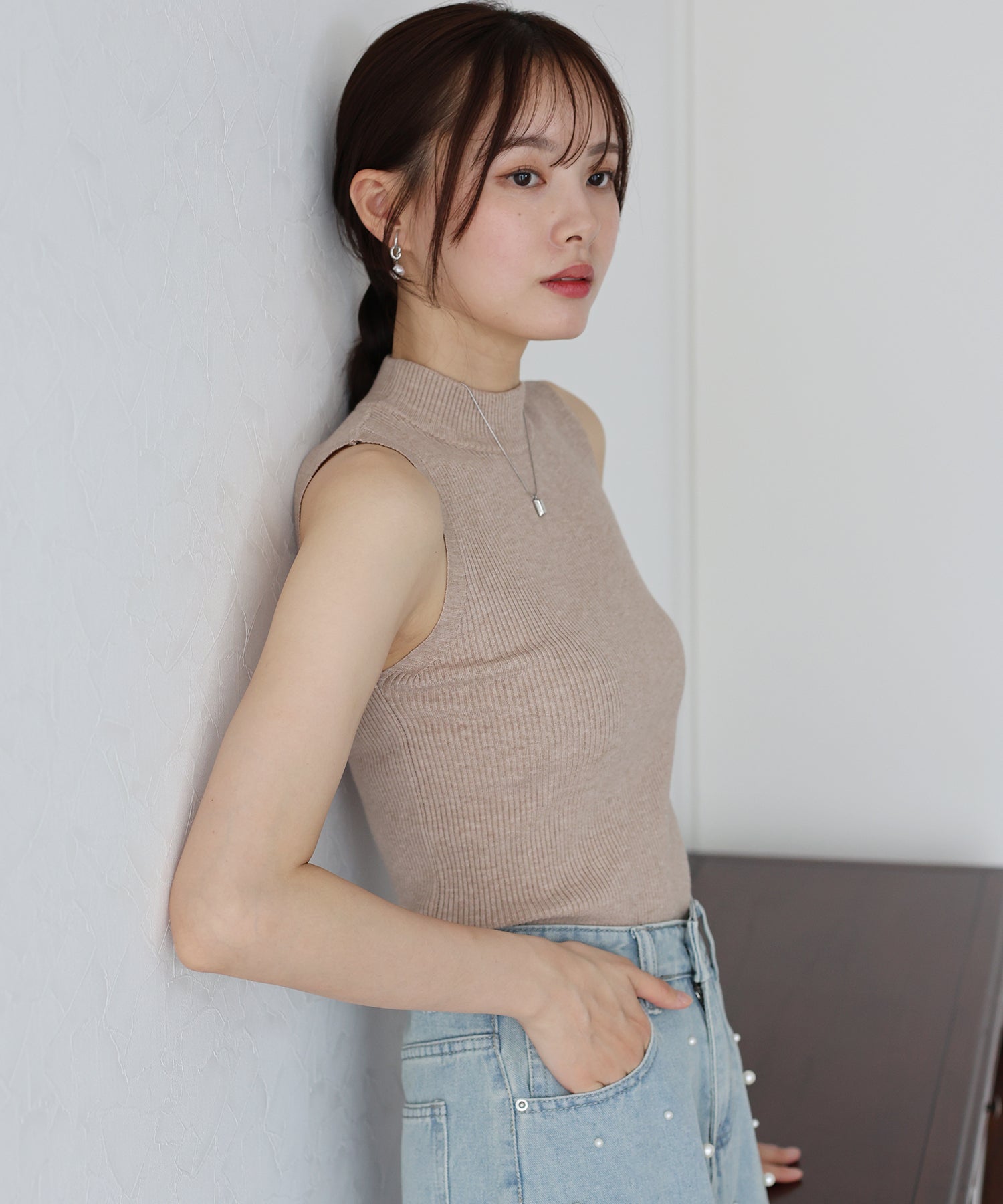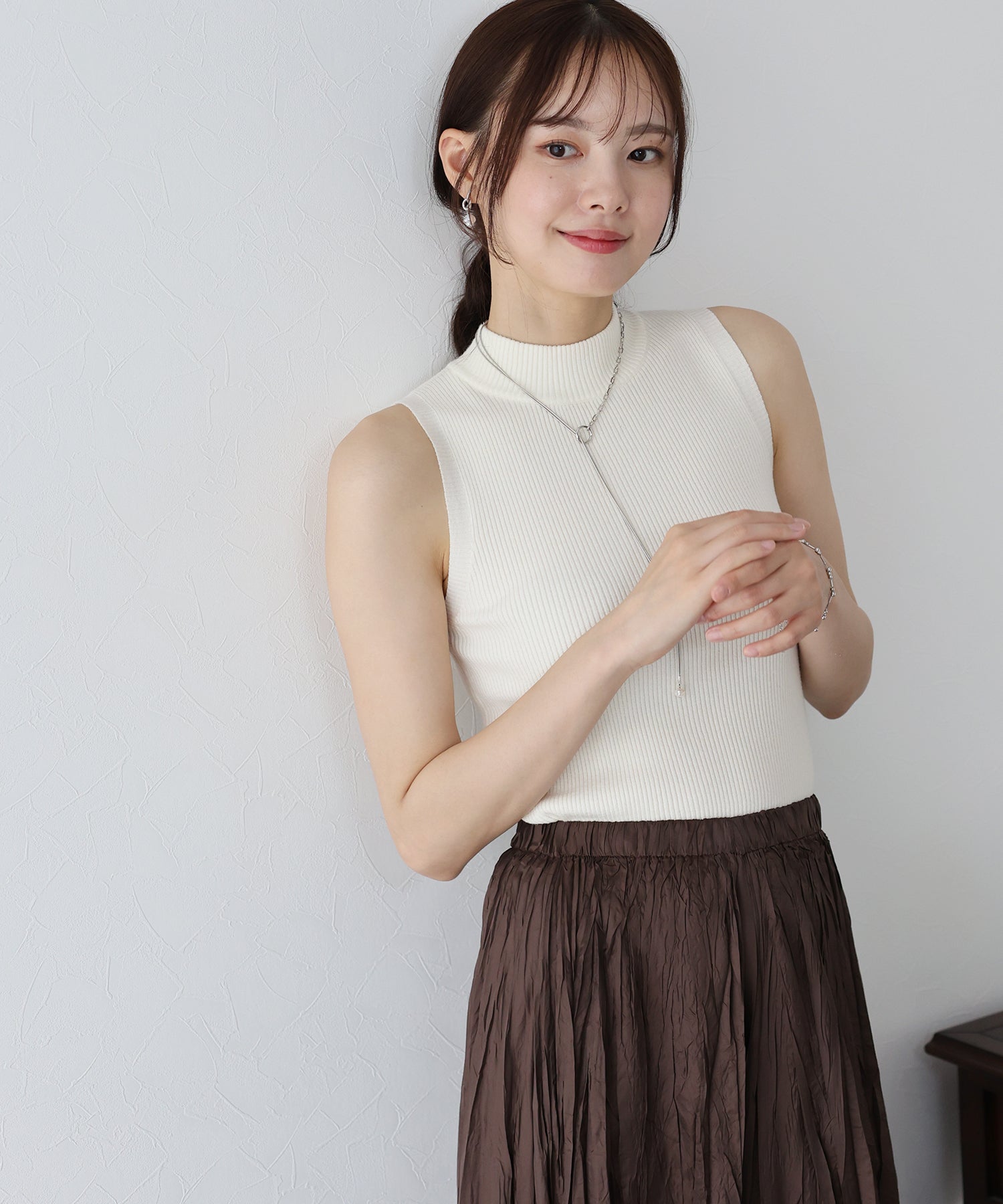 ベーシックなカラーが着回し力抜群のスリーブレスニット。