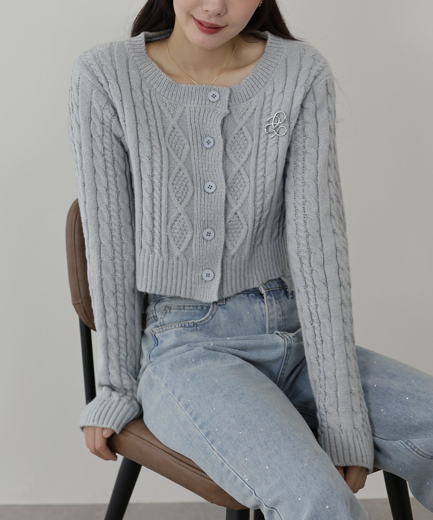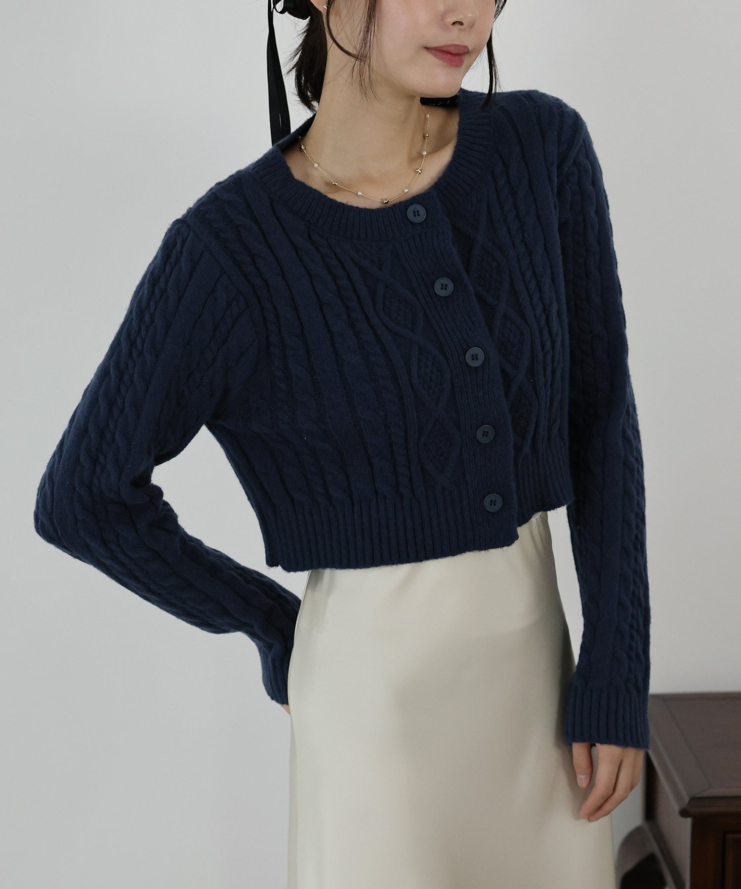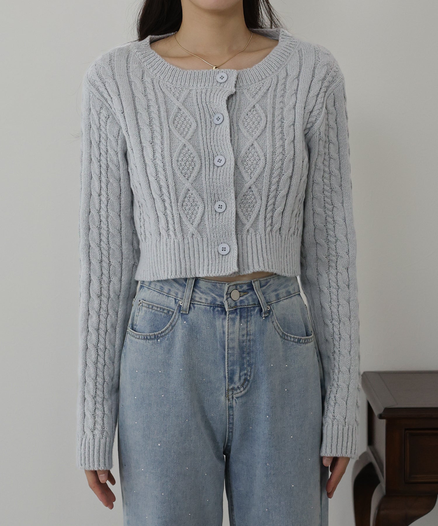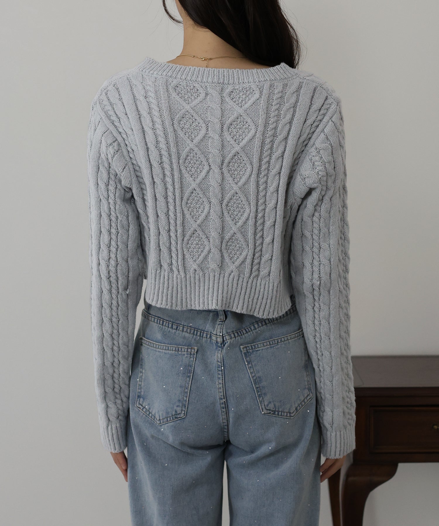 【SALE】クロップドケーブルカーディガン