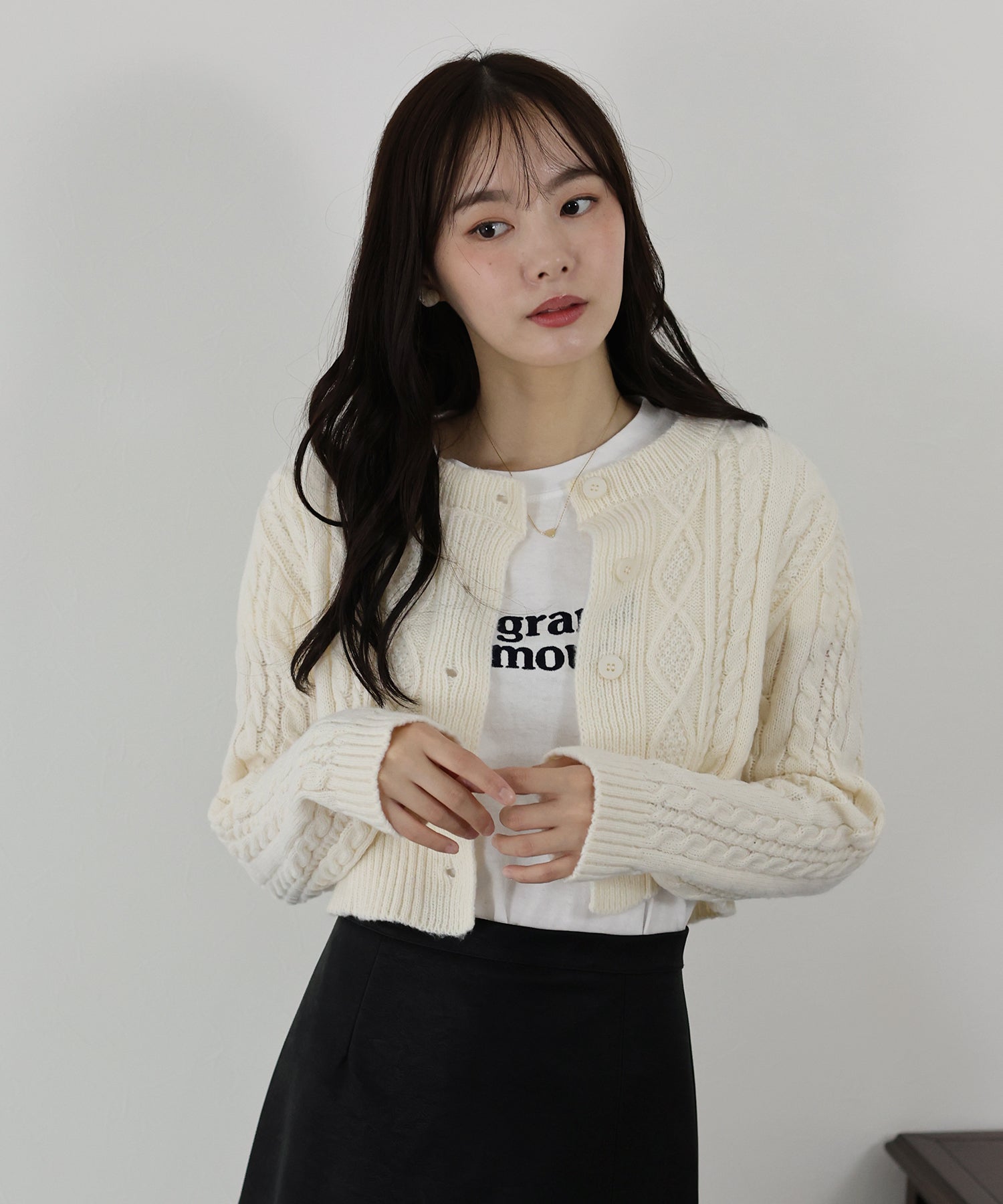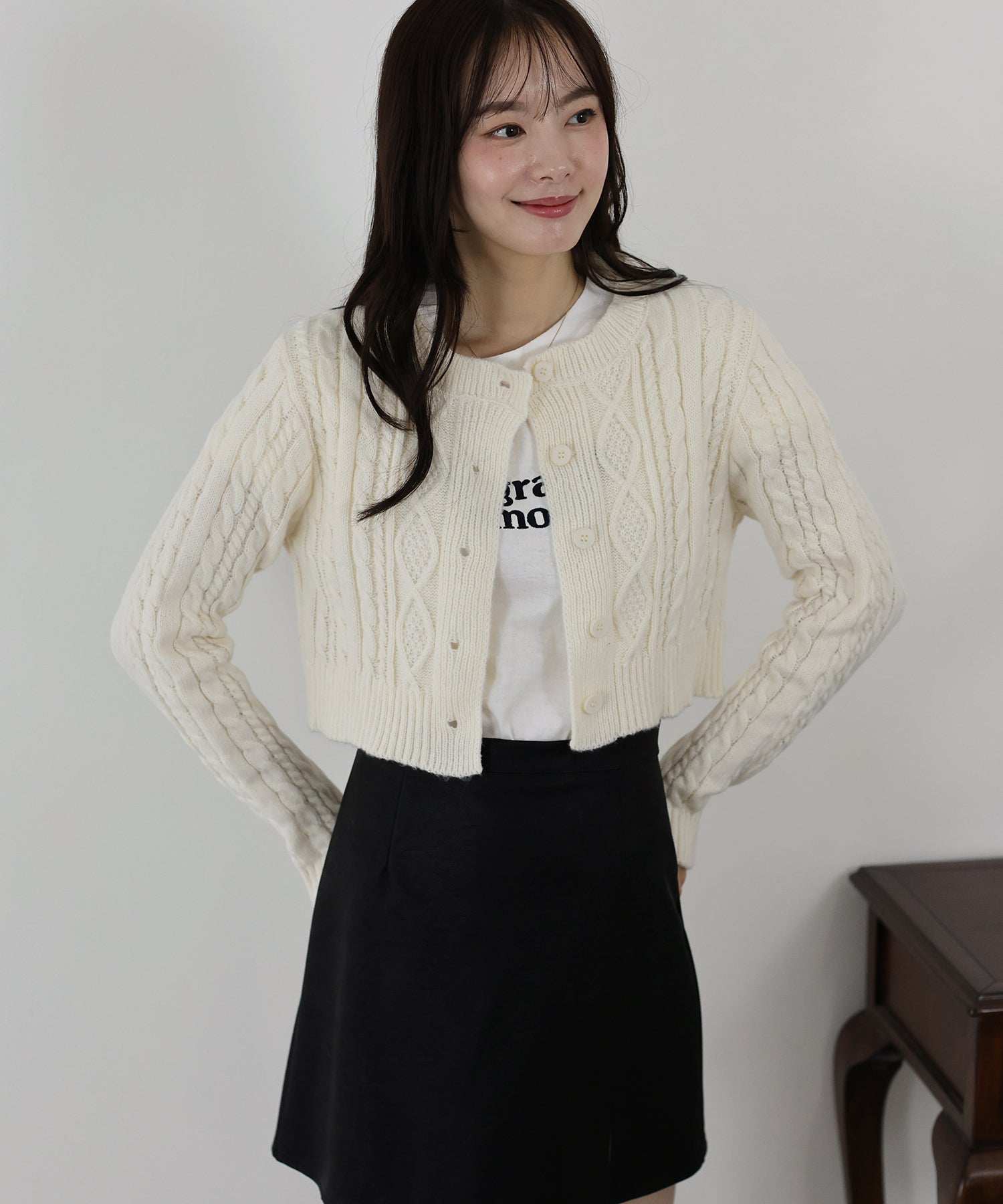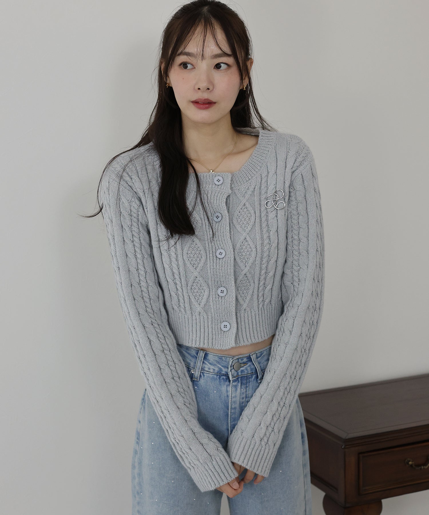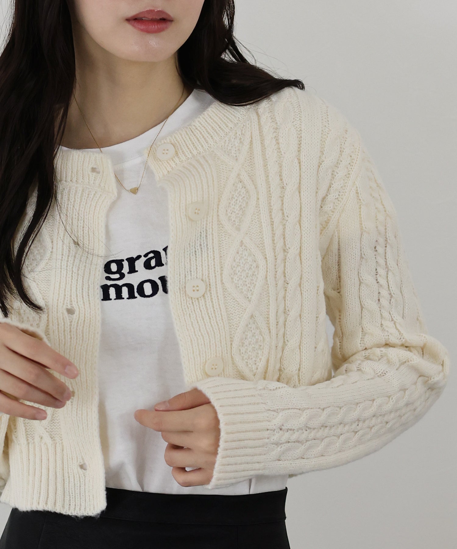 【SALE】クロップドケーブルカーディガン