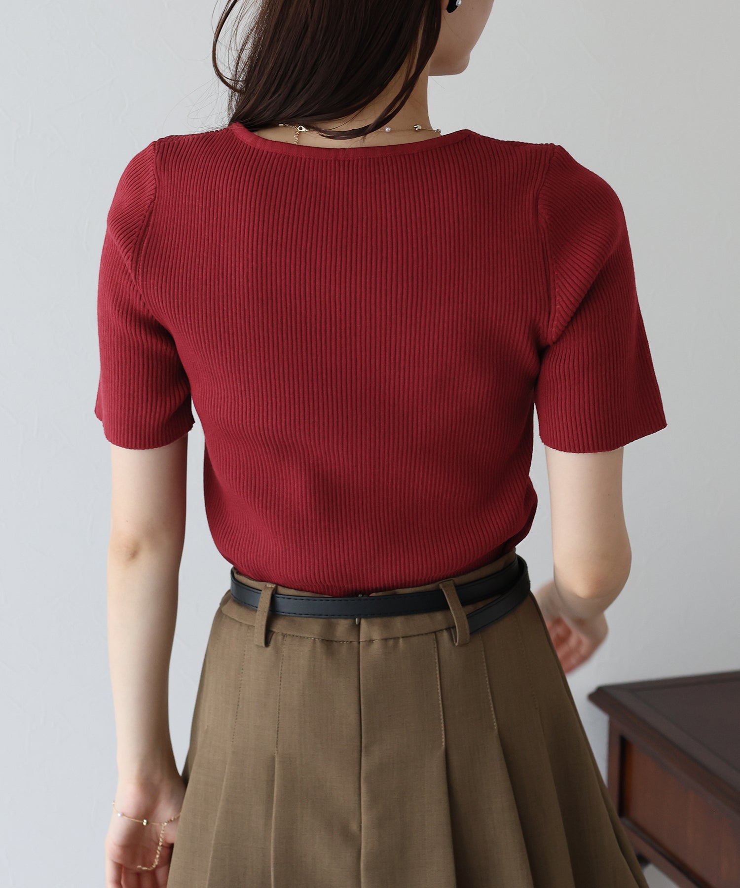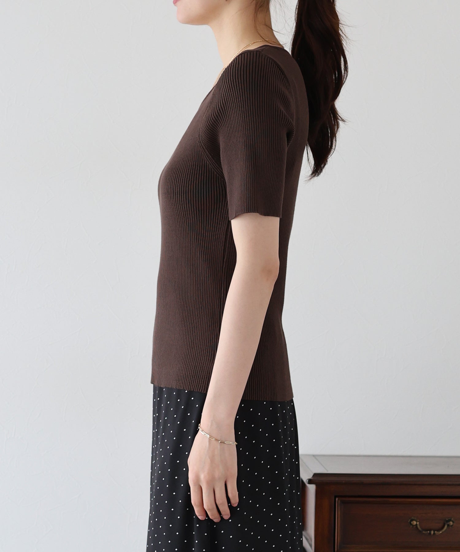 リブ編みで体のラインを美しく見せ、着るだけでスタイルアップ。