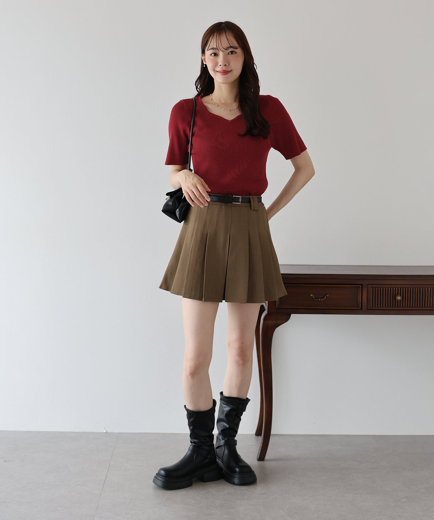 TIME SALE【早割5%OFF】ベルトSETスウェードプリーツミニスカート