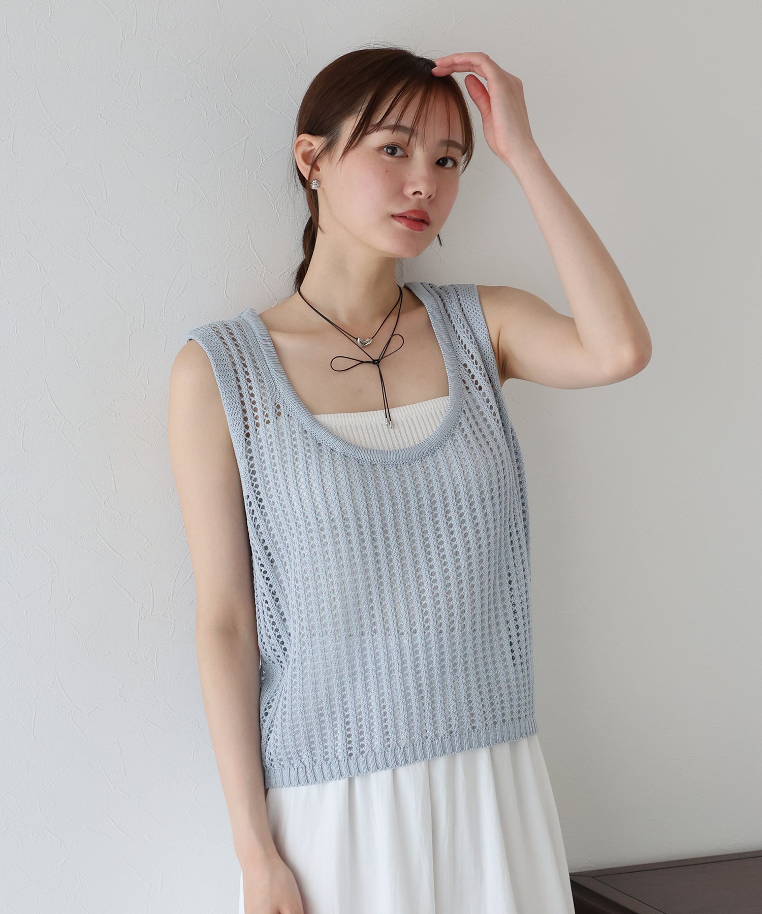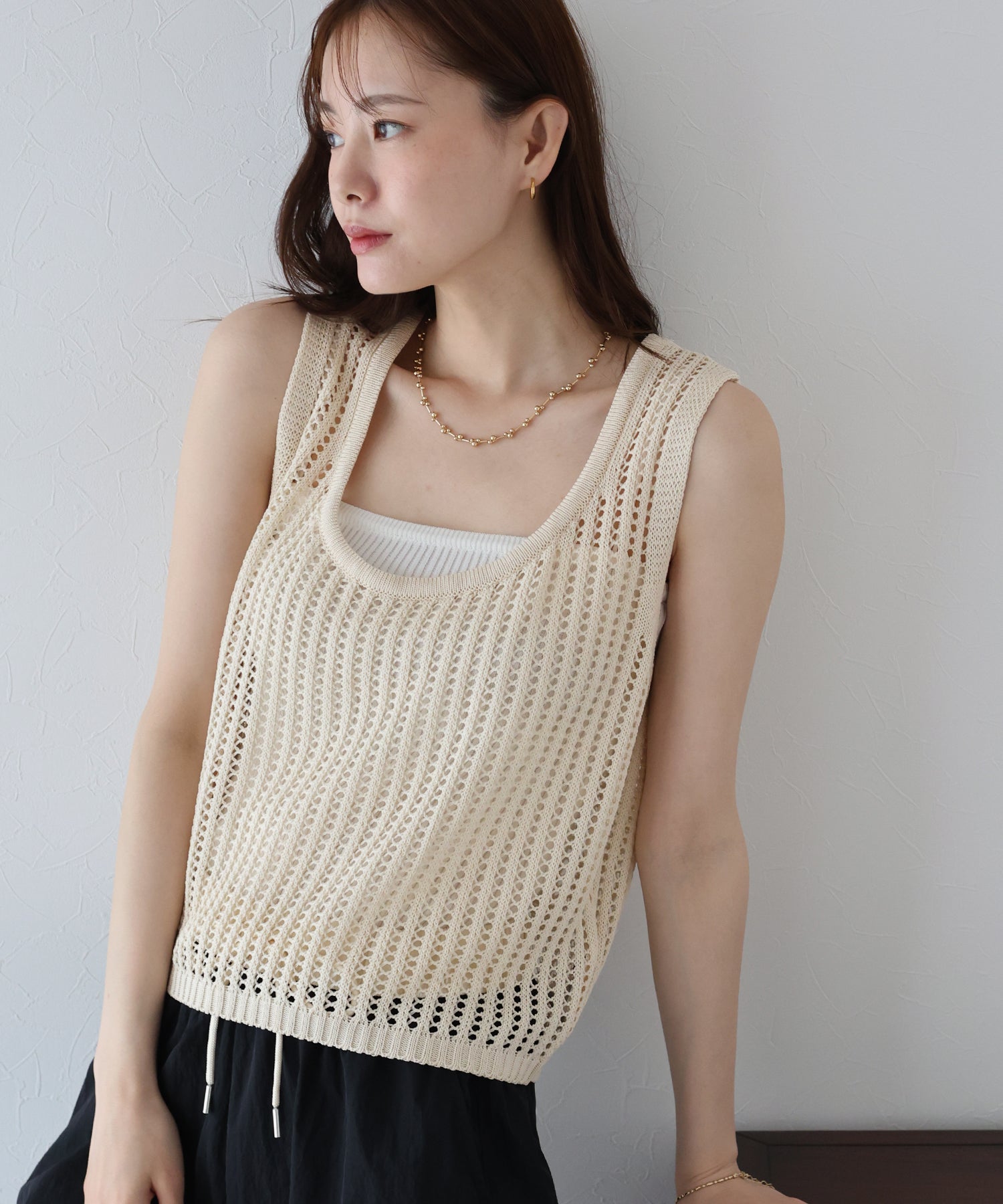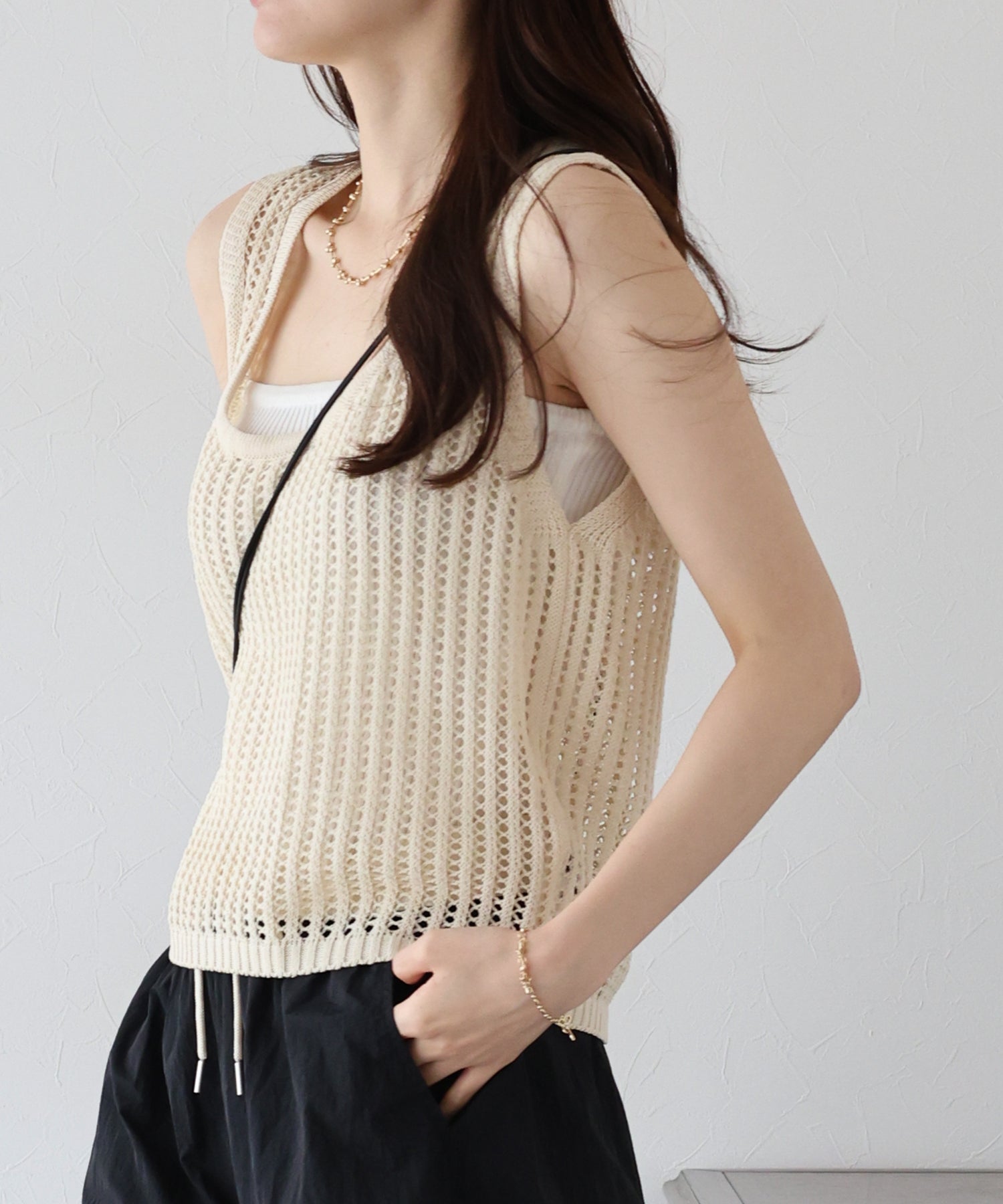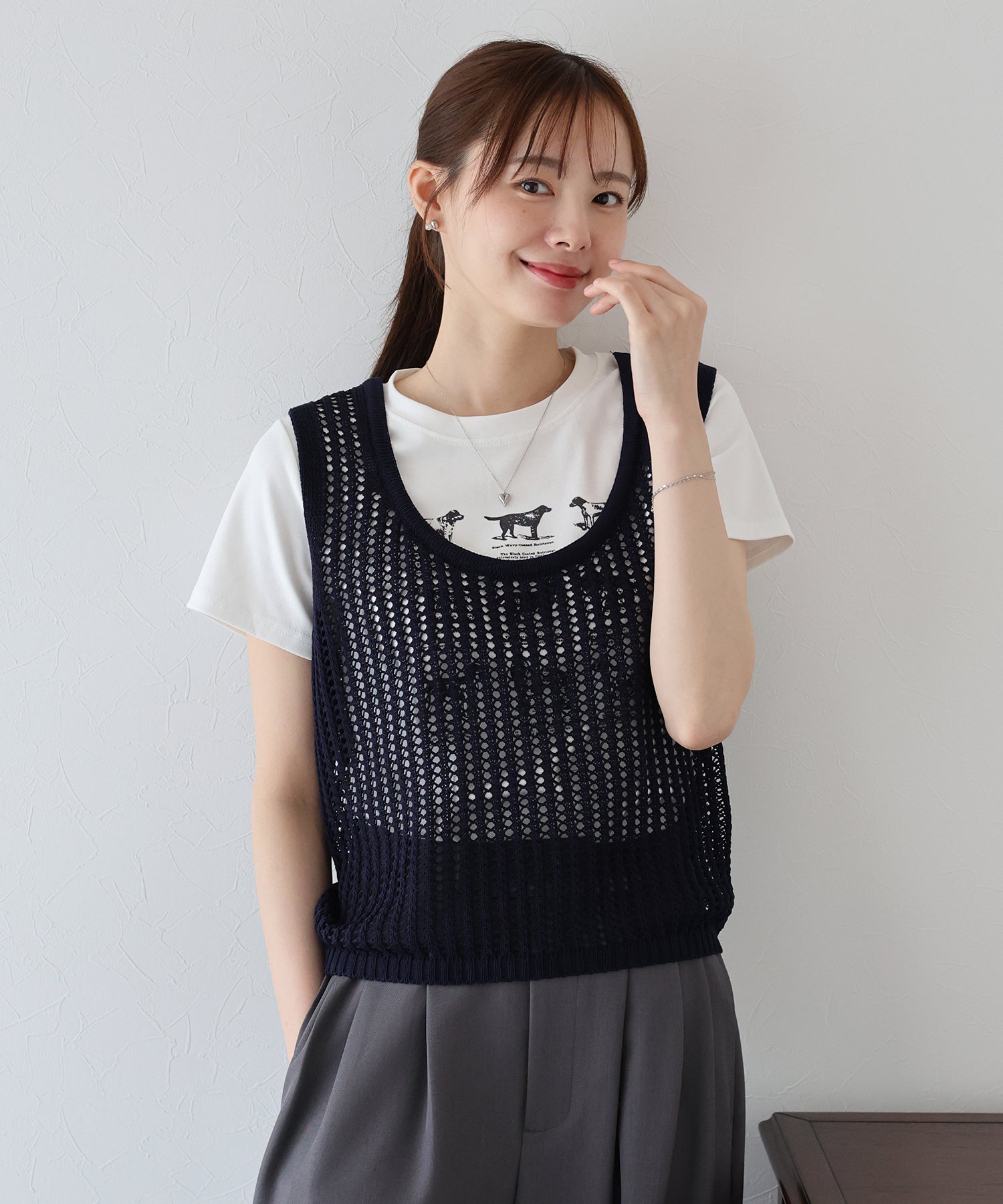 カジュアル&フェミニンなムードを兼ね備えたメッシュベスト。