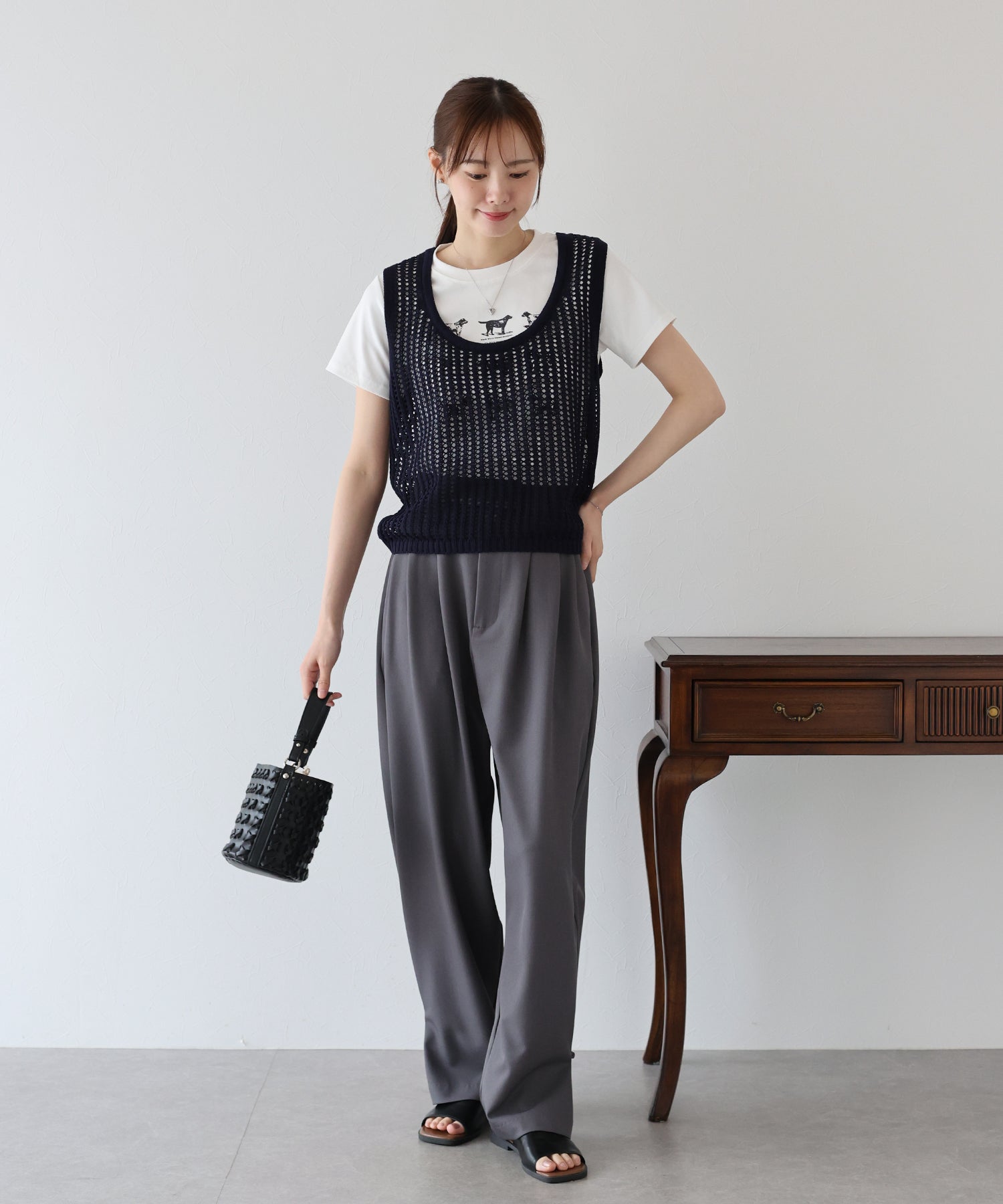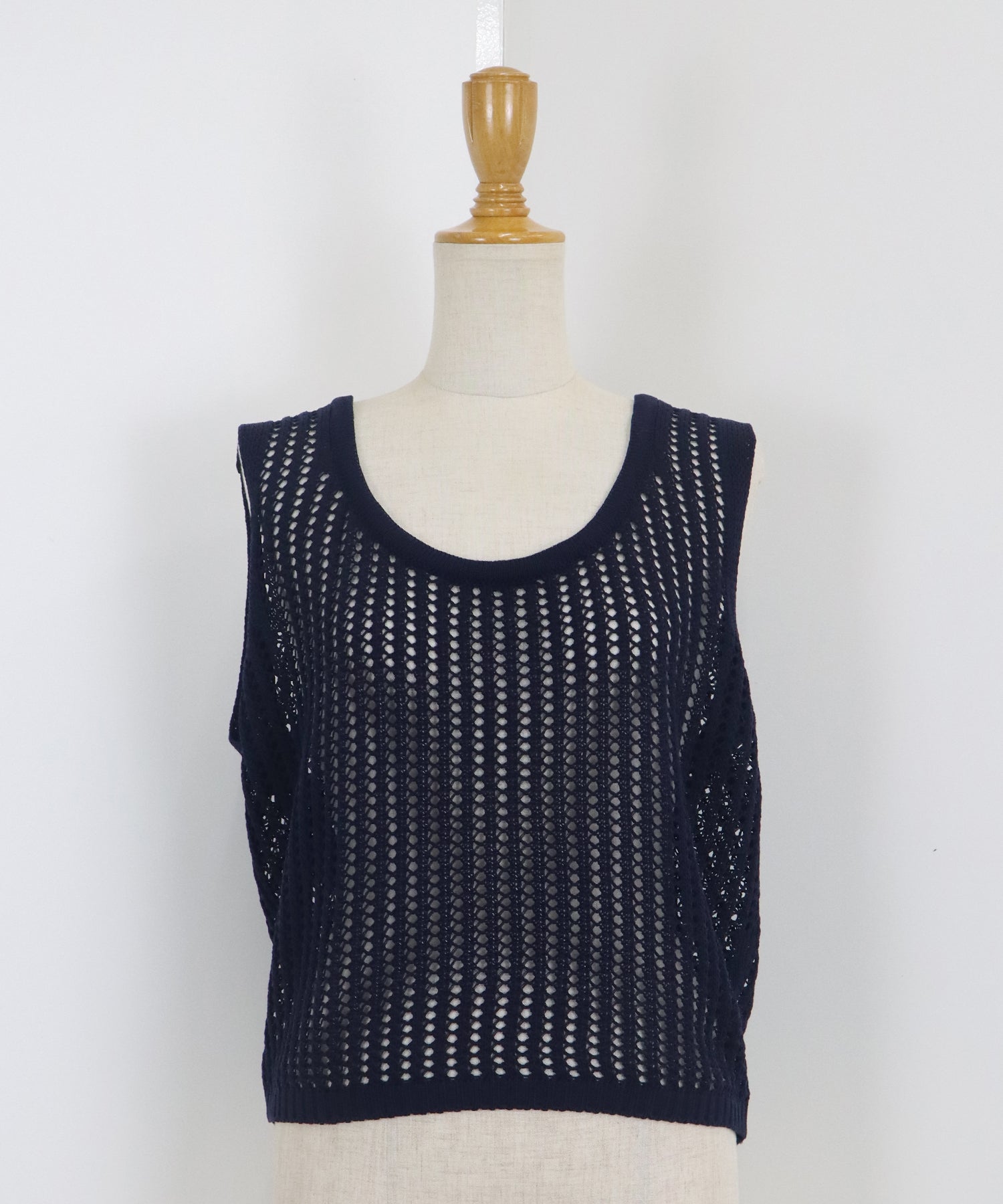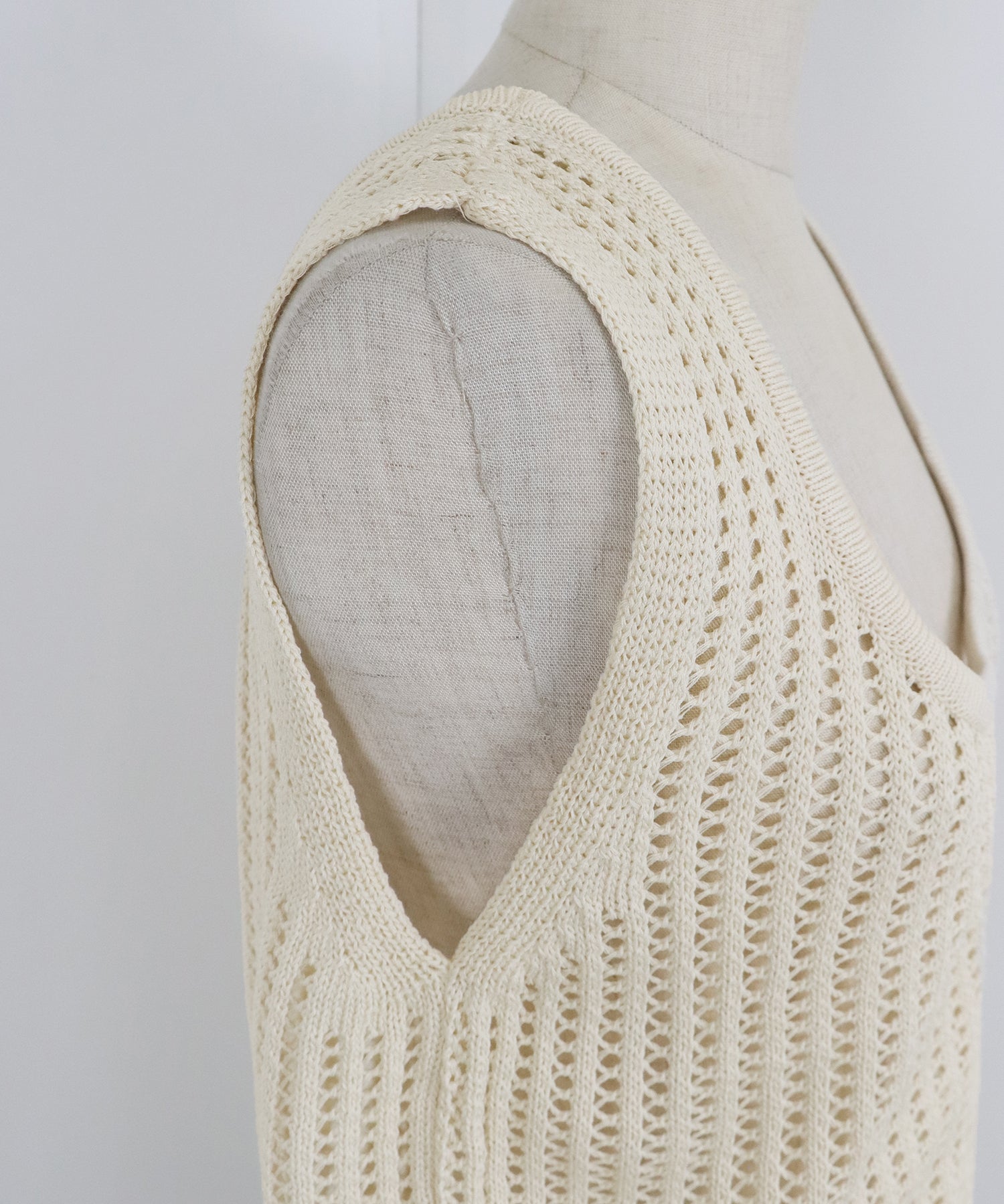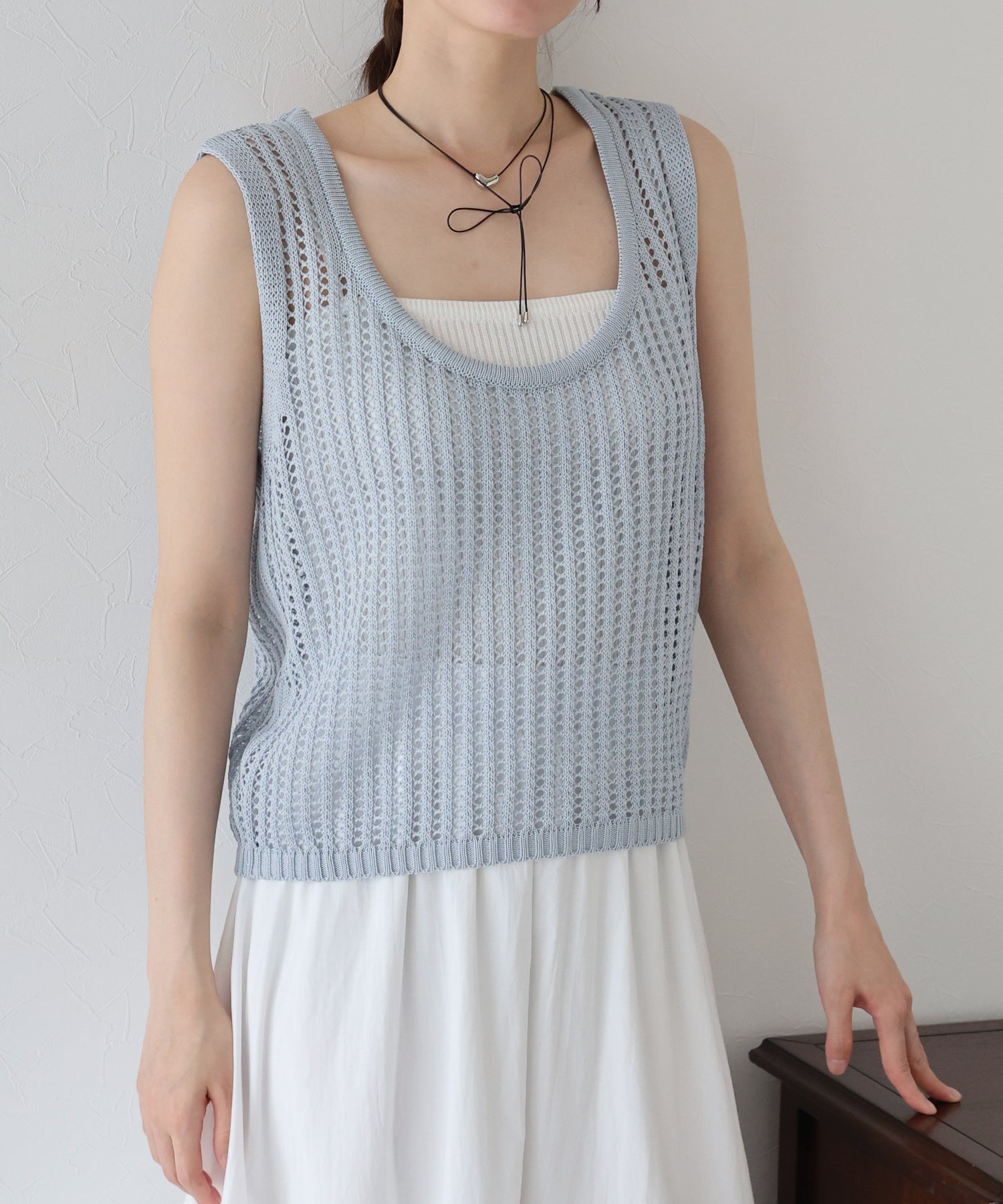カジュアル&フェミニンなムードを兼ね備えたメッシュベスト。