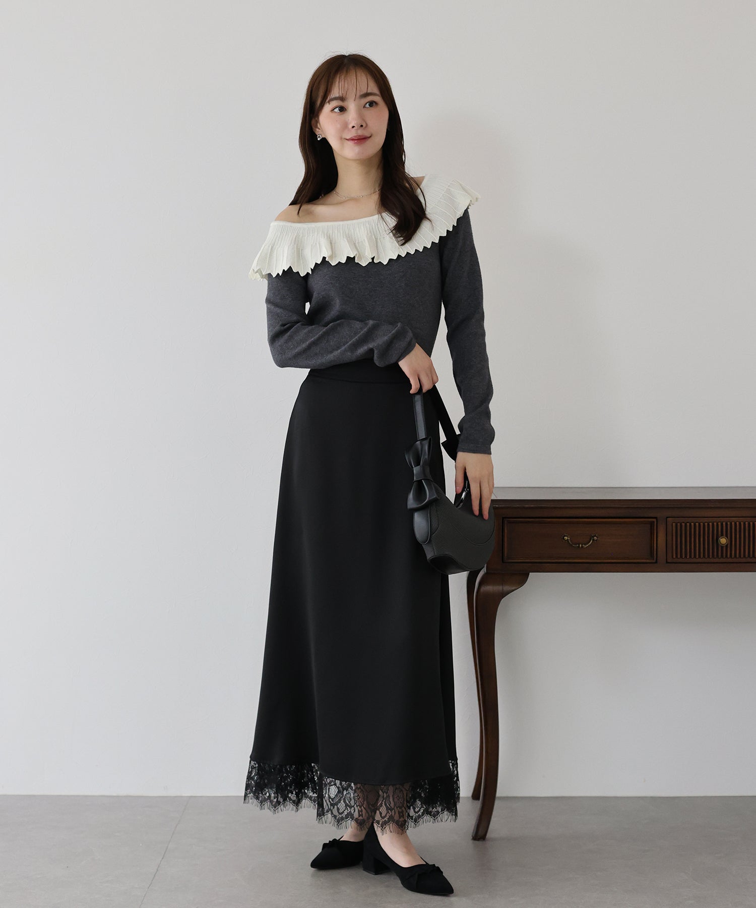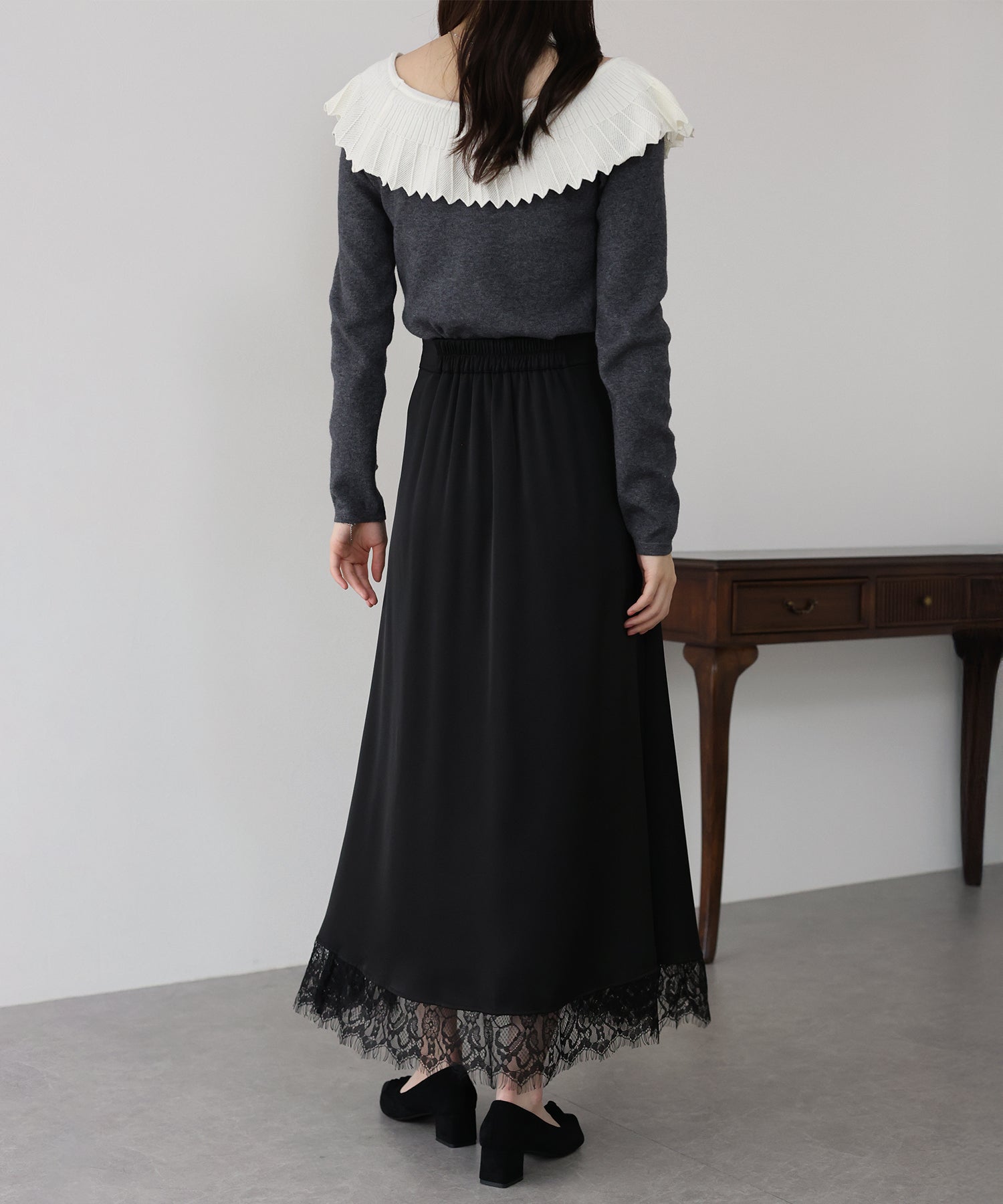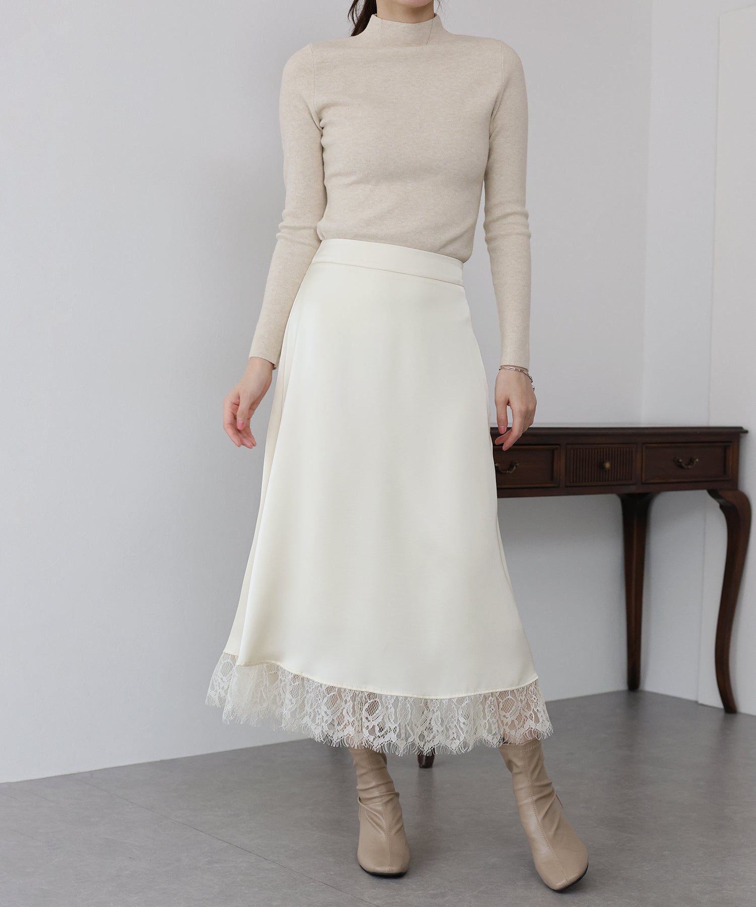 上品で華やかに仕上がる裾レース付きサテンスカート