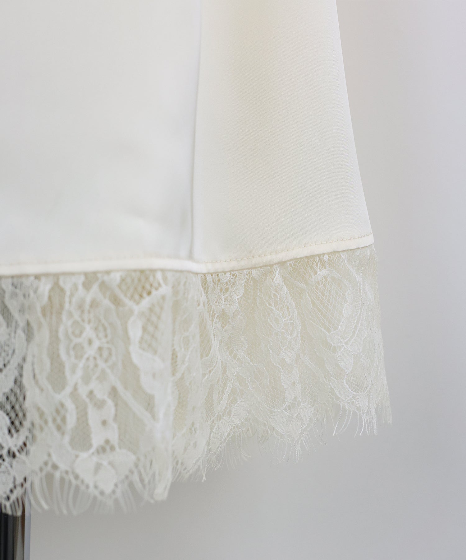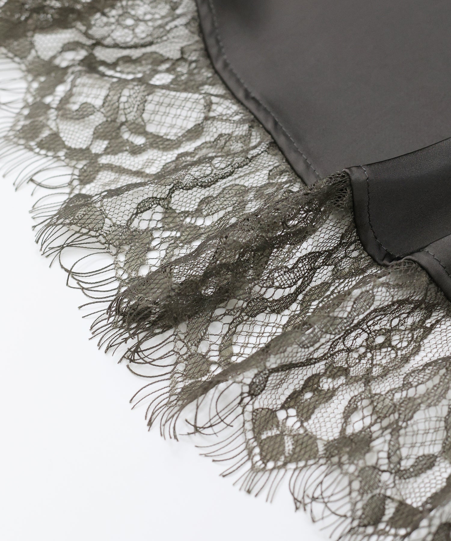 サテンの上品な光沢と繊細なレースで女性らしさのある印象に。