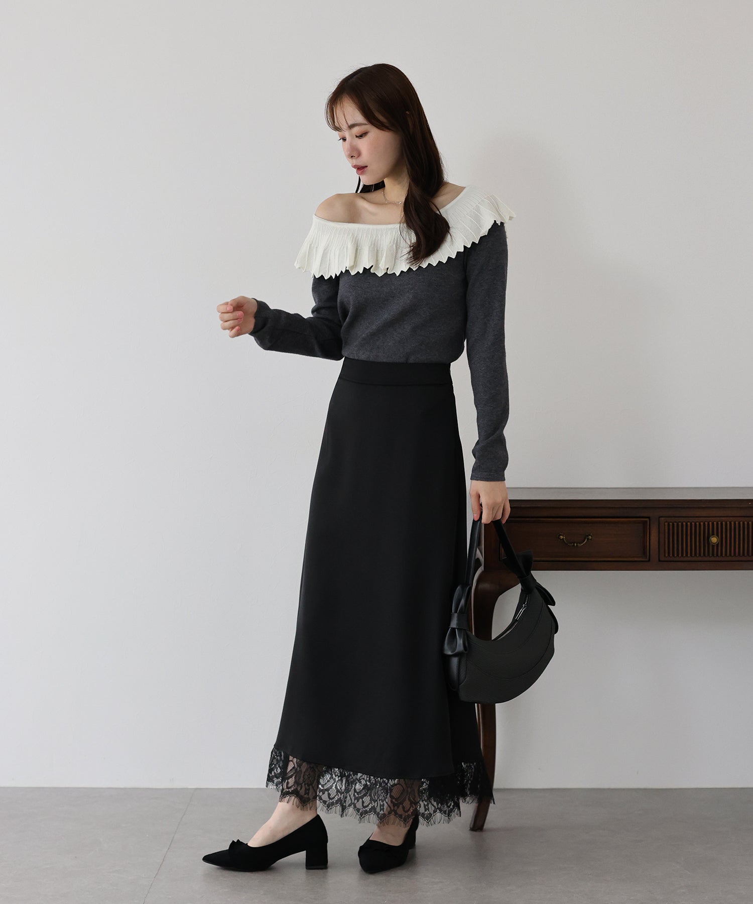 【早割5%OFF】レース切替サテンマーメイドスカート