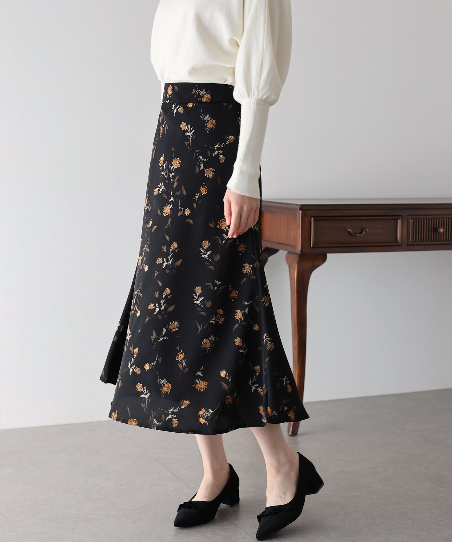 コーディネートを華やかに仕上げる花柄フレアーマーメイドスカート