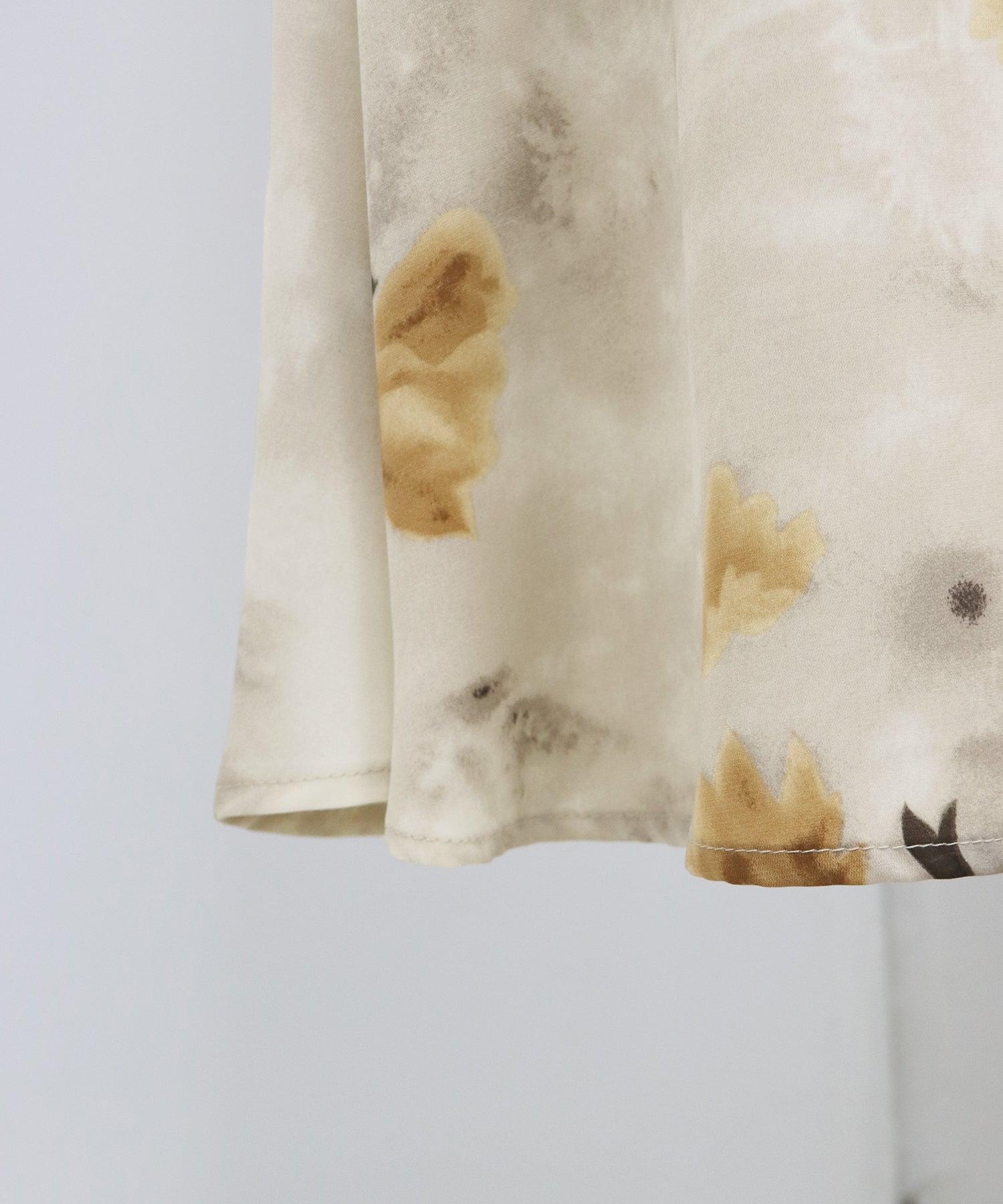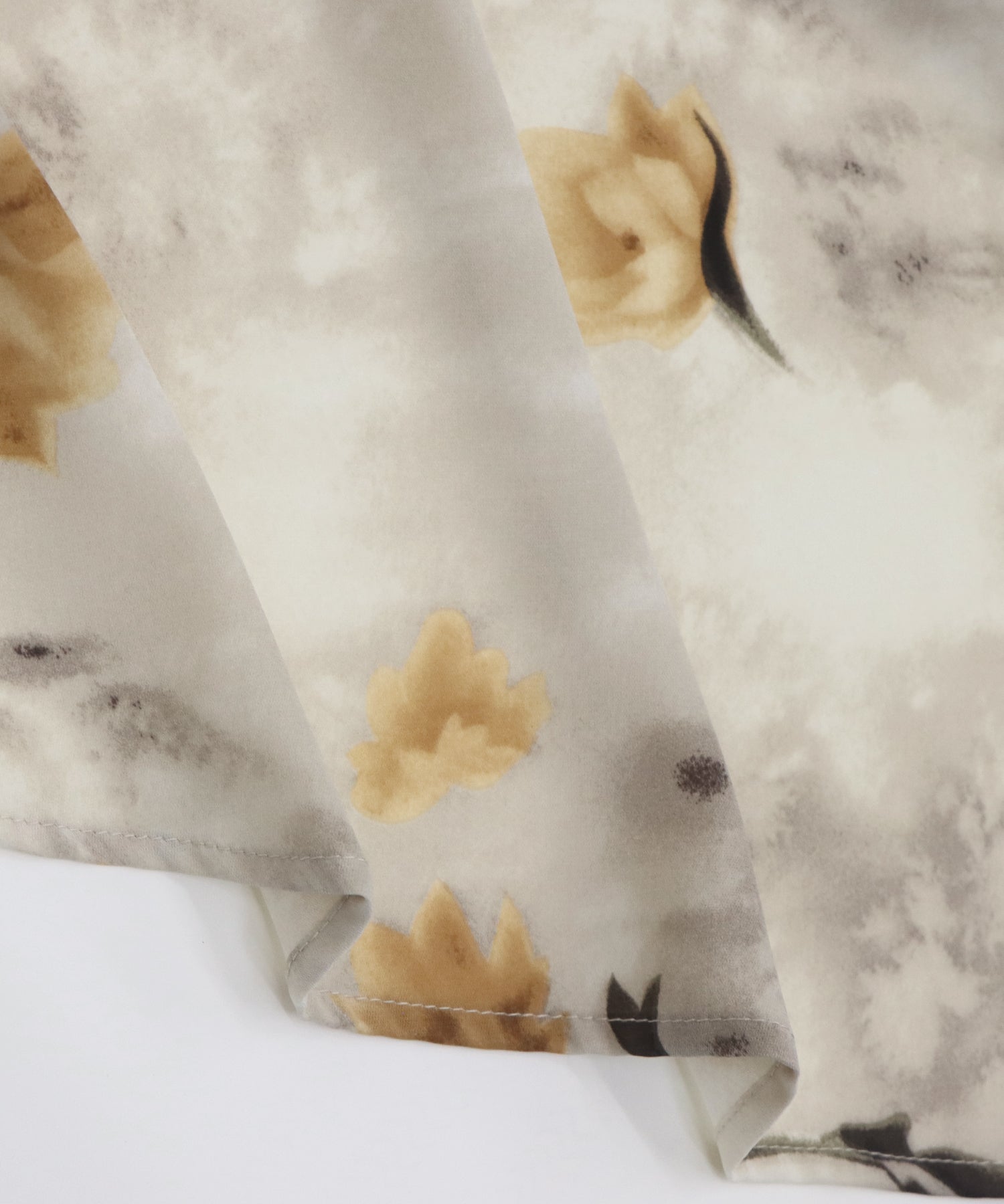 やや光沢感のあるフラワープリントのサテン素材 ※カラーによって柄が異なります。 |
