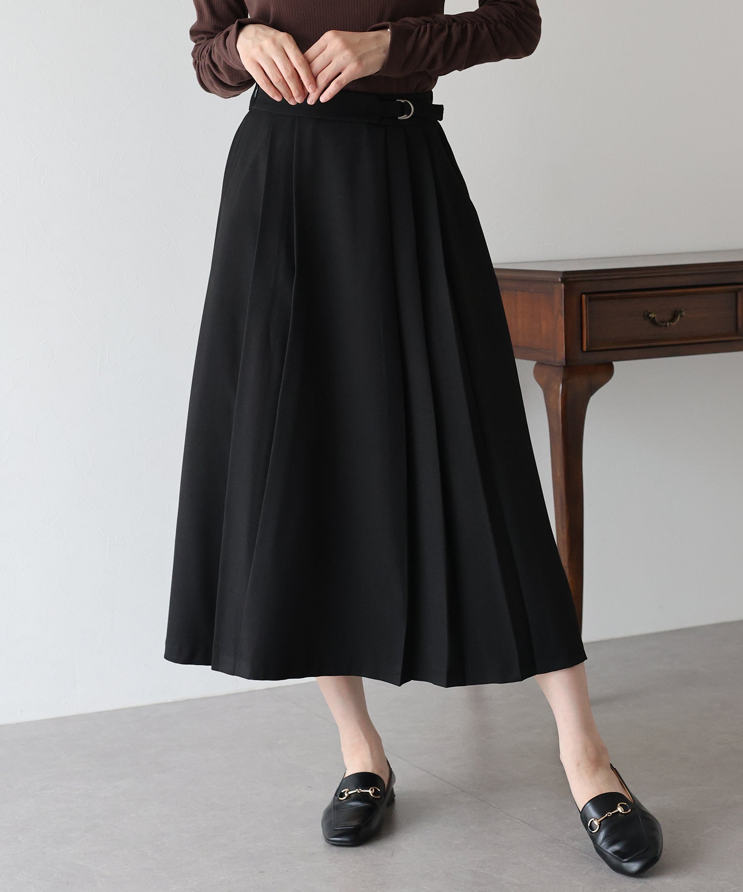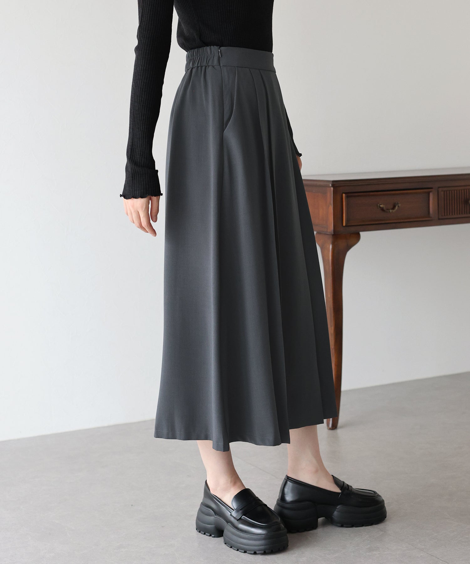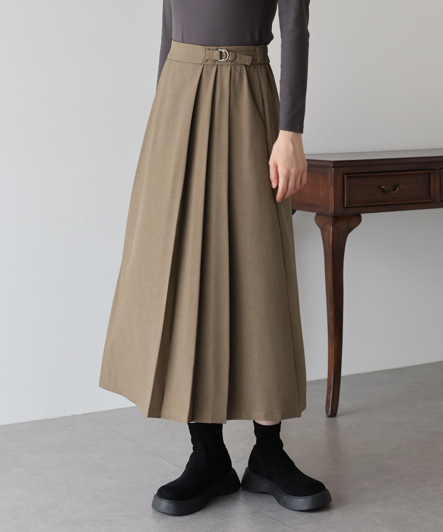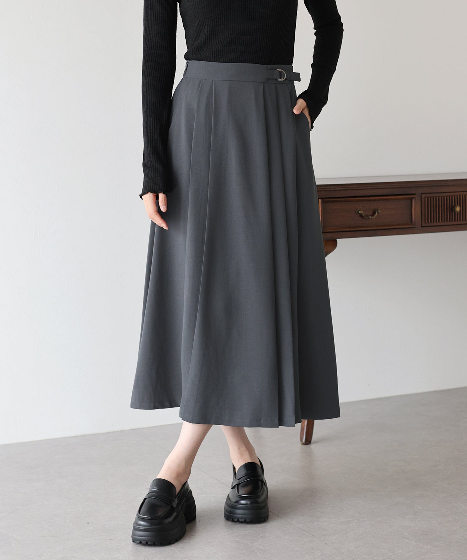 ふんわりと揺れるサイドプリーツのフレアシルエットがフェミニンなスカート。