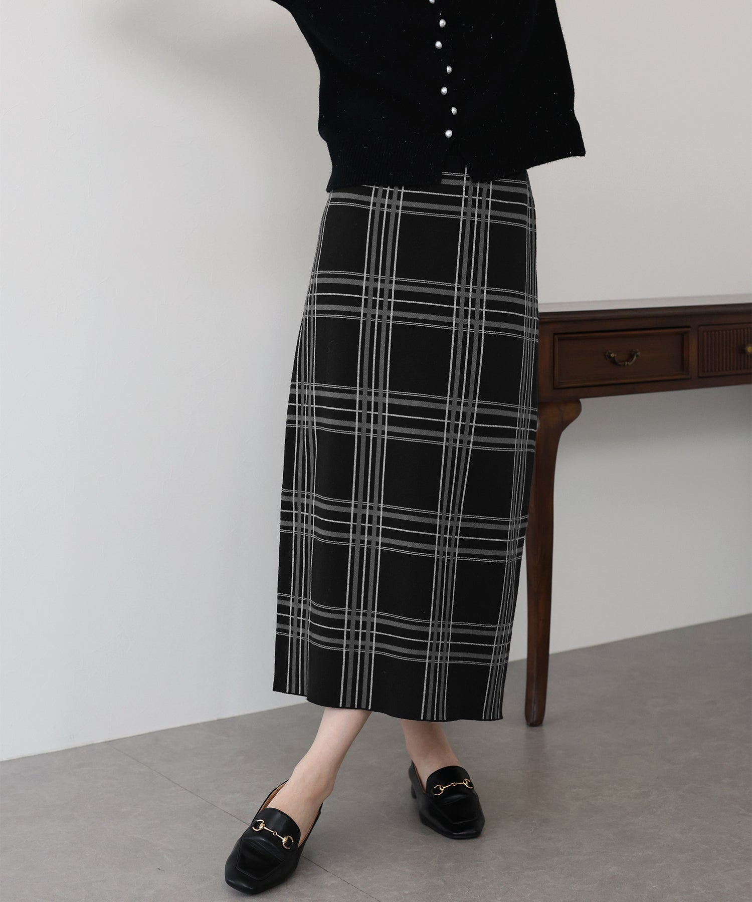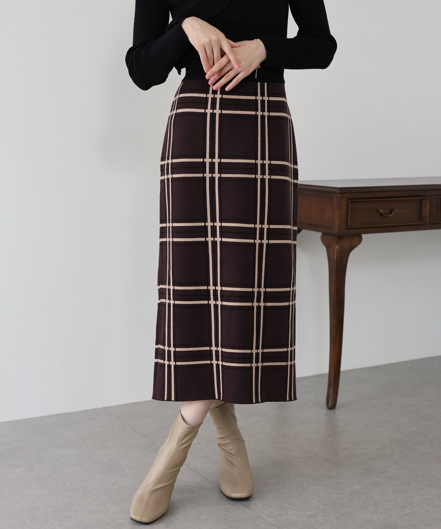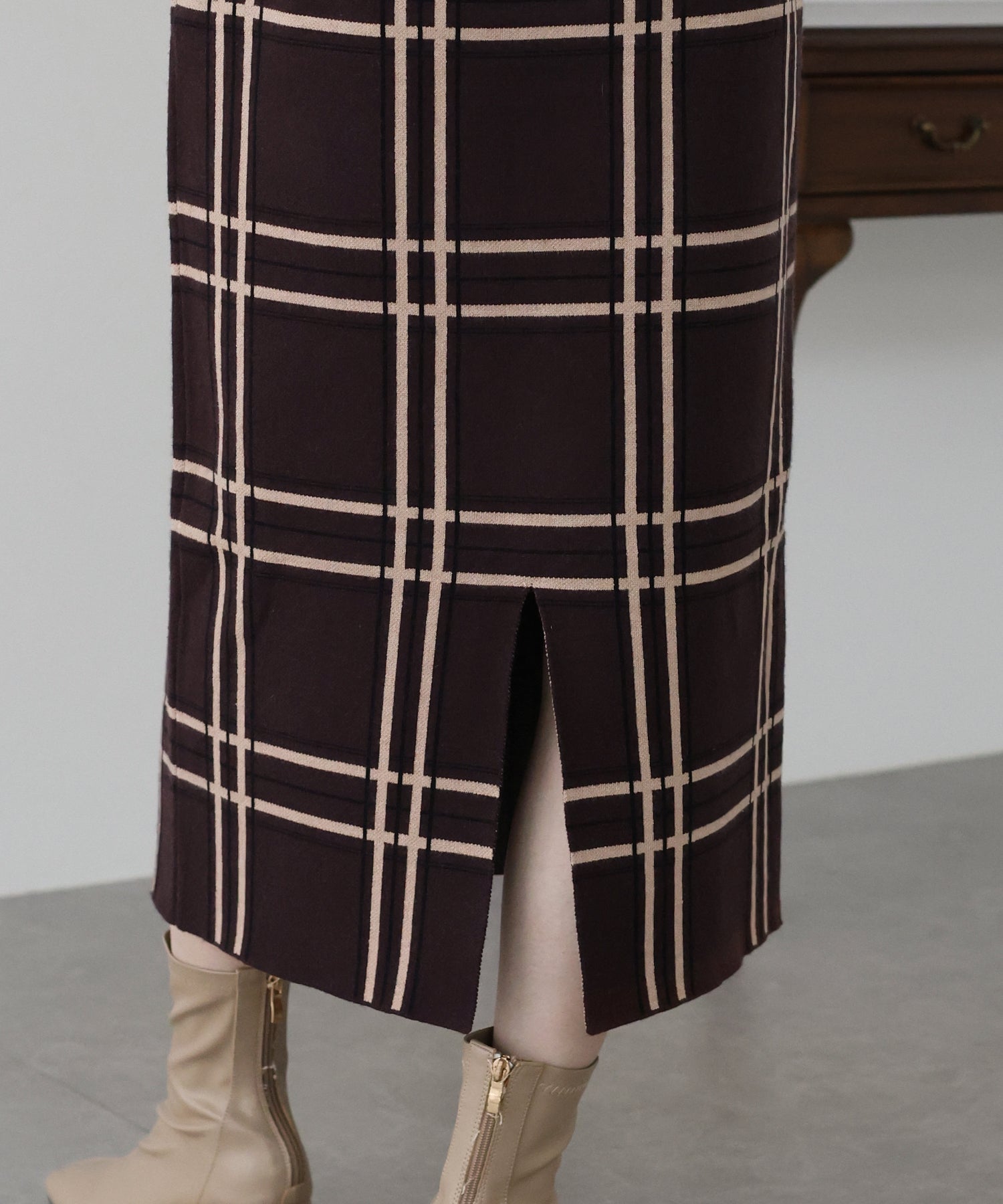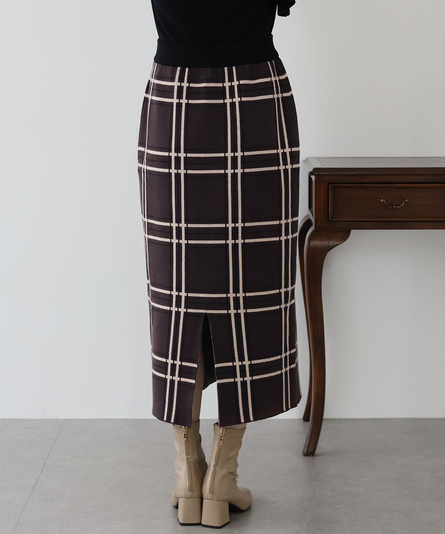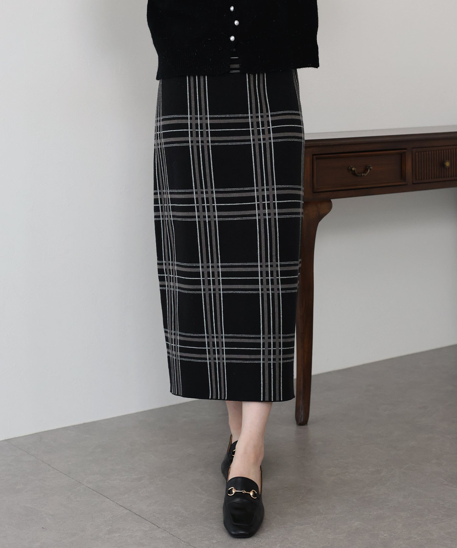 チェックニットタイトスカート