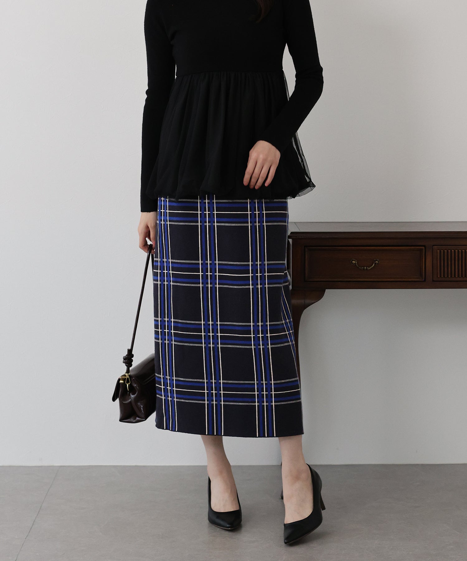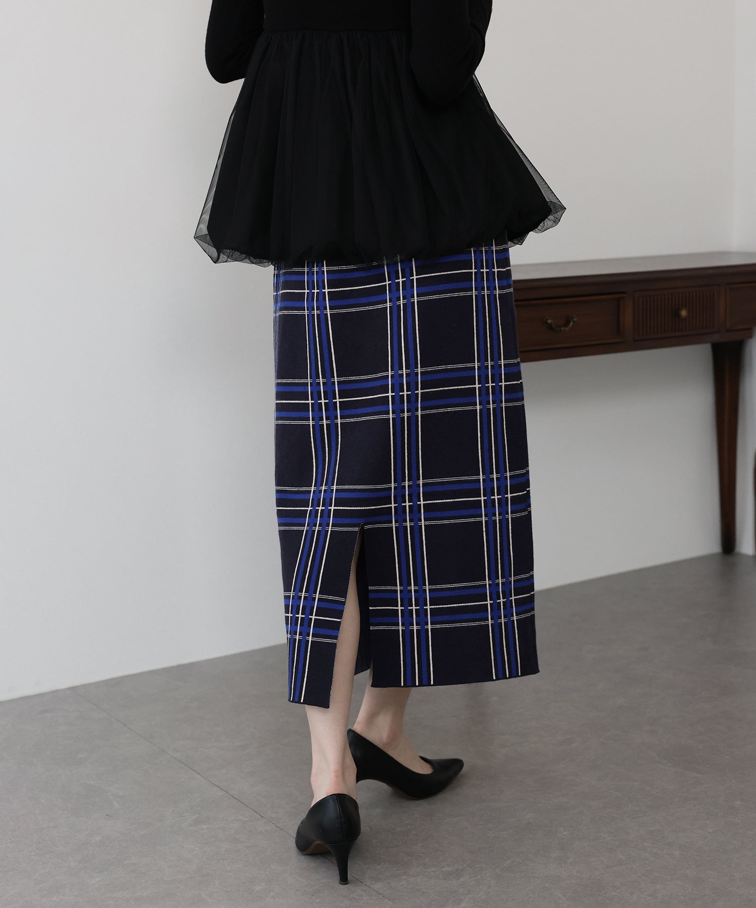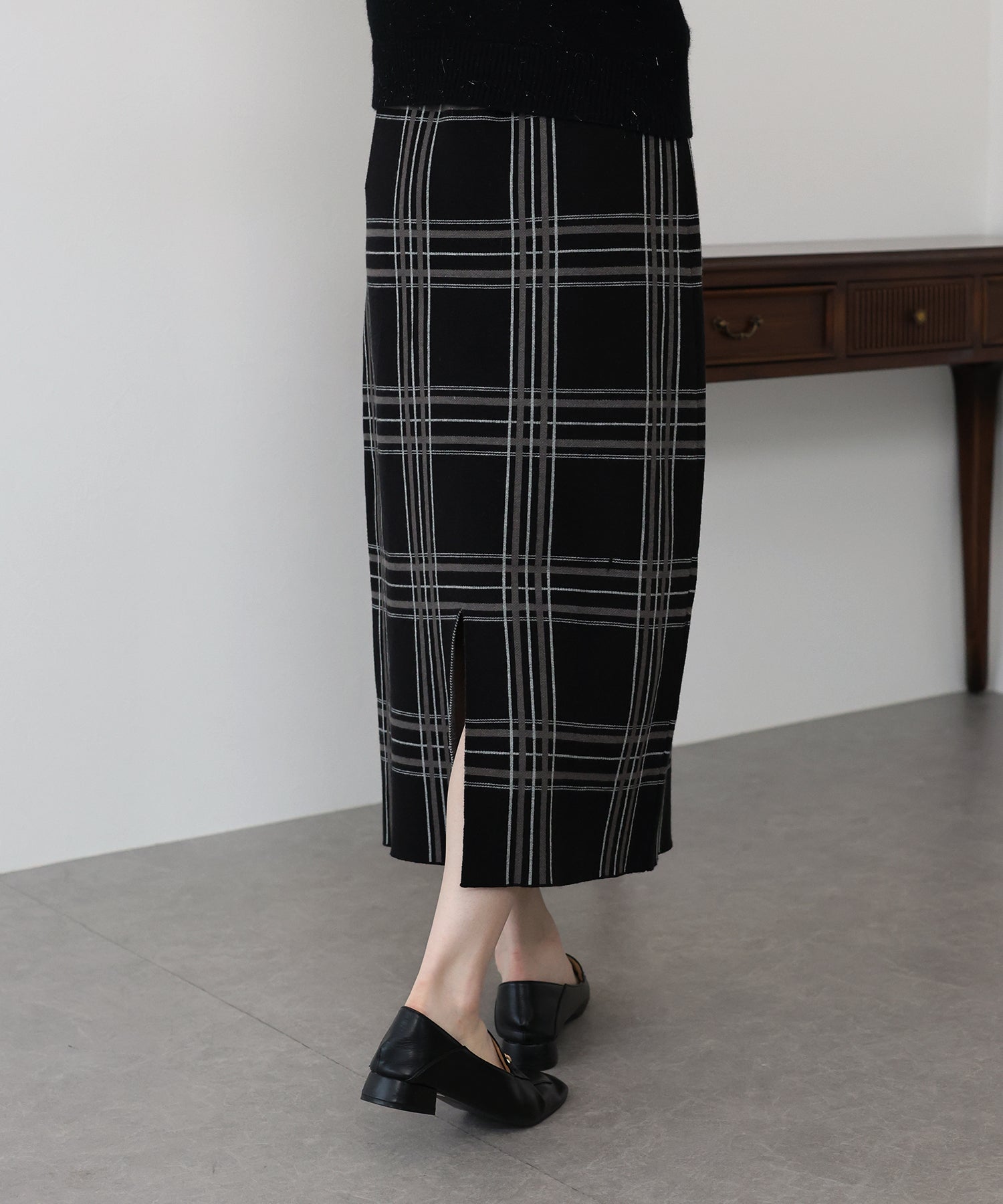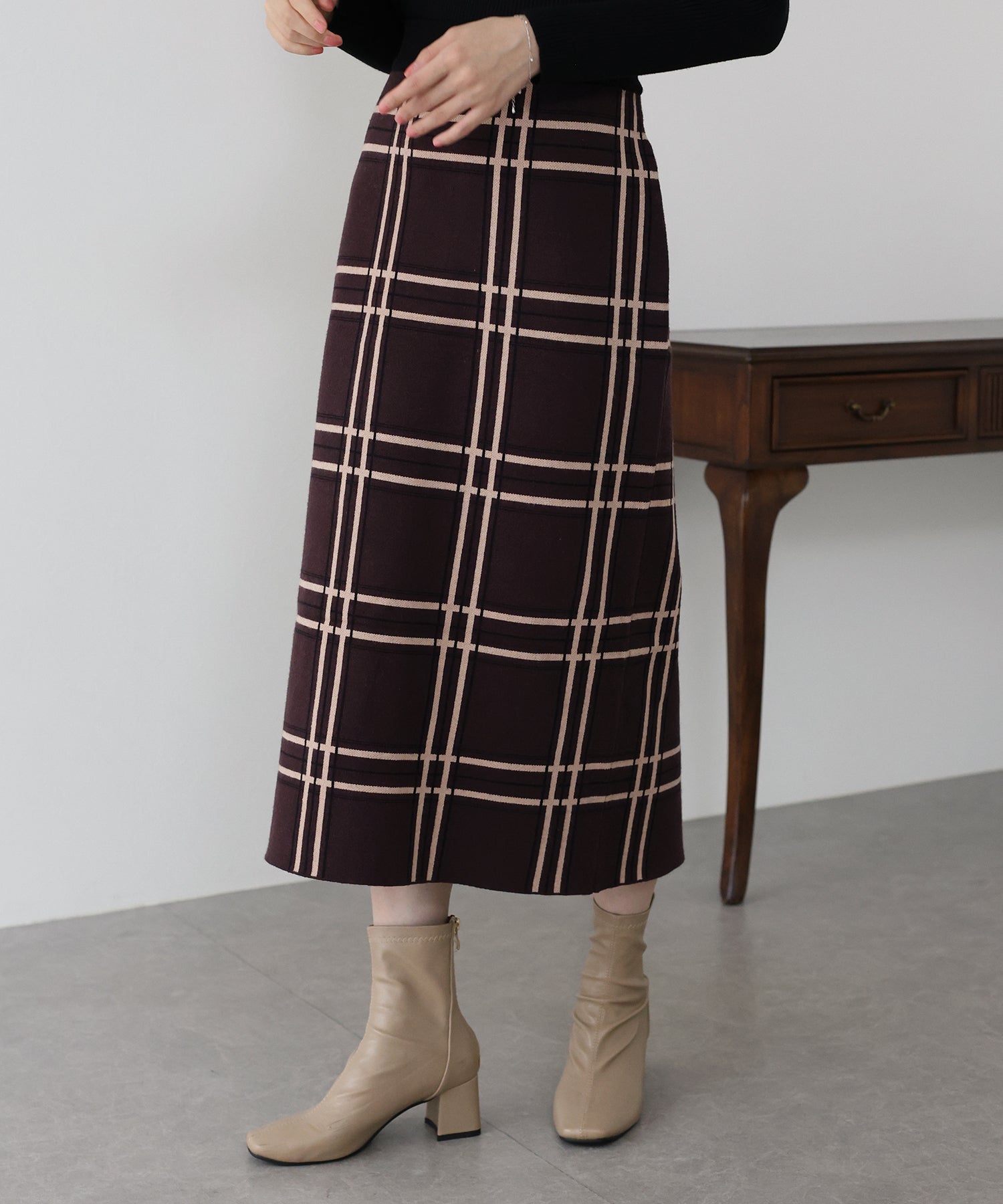 チェックニットタイトスカート