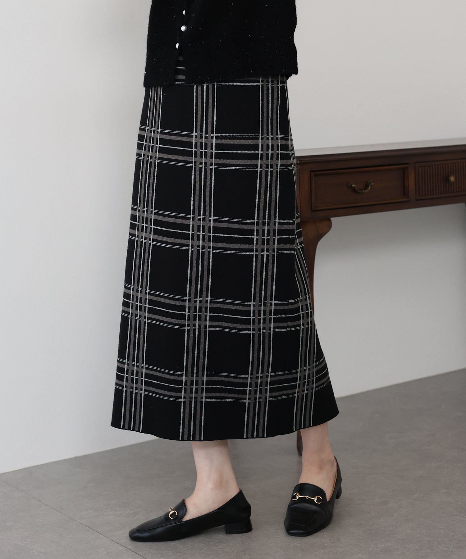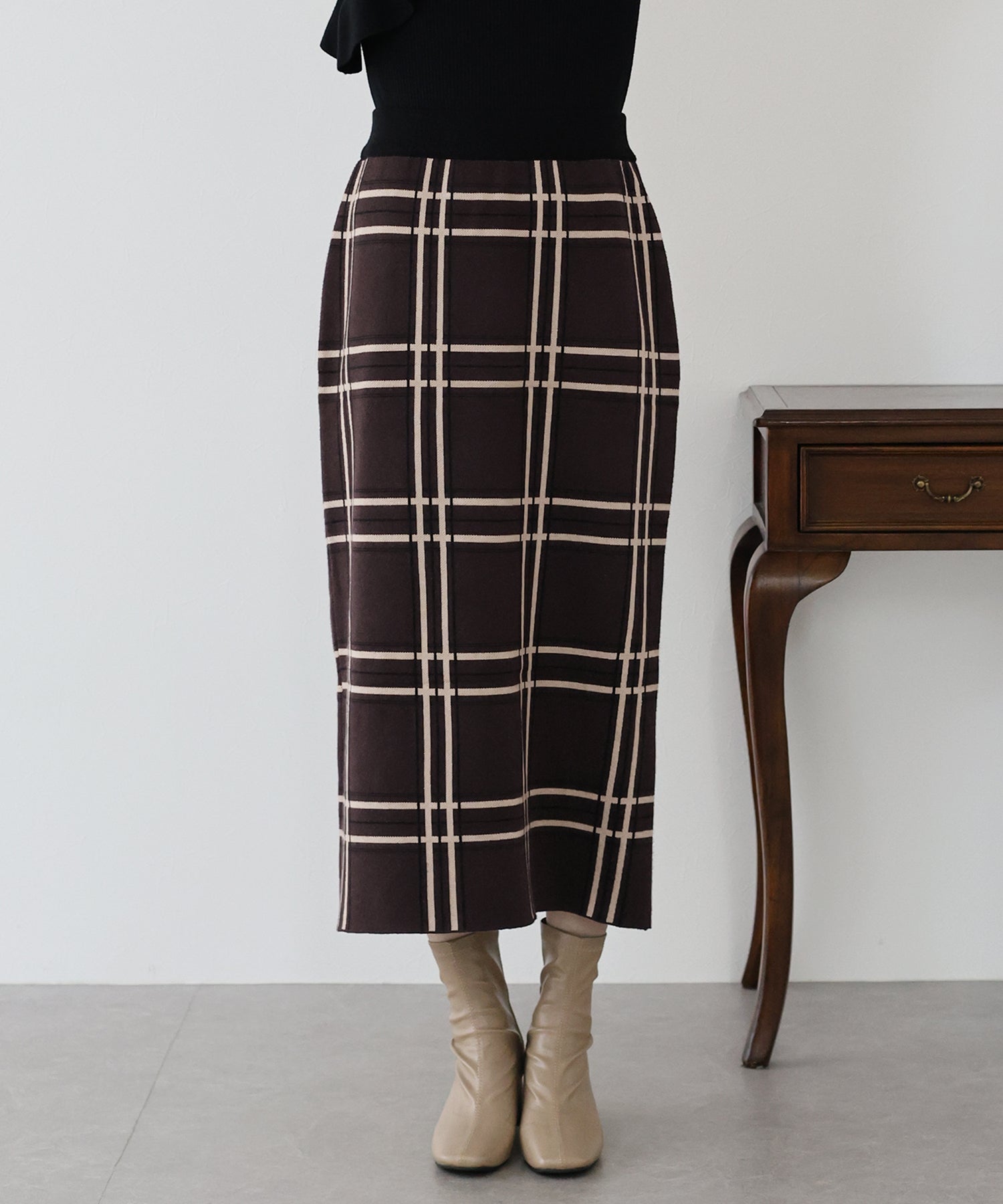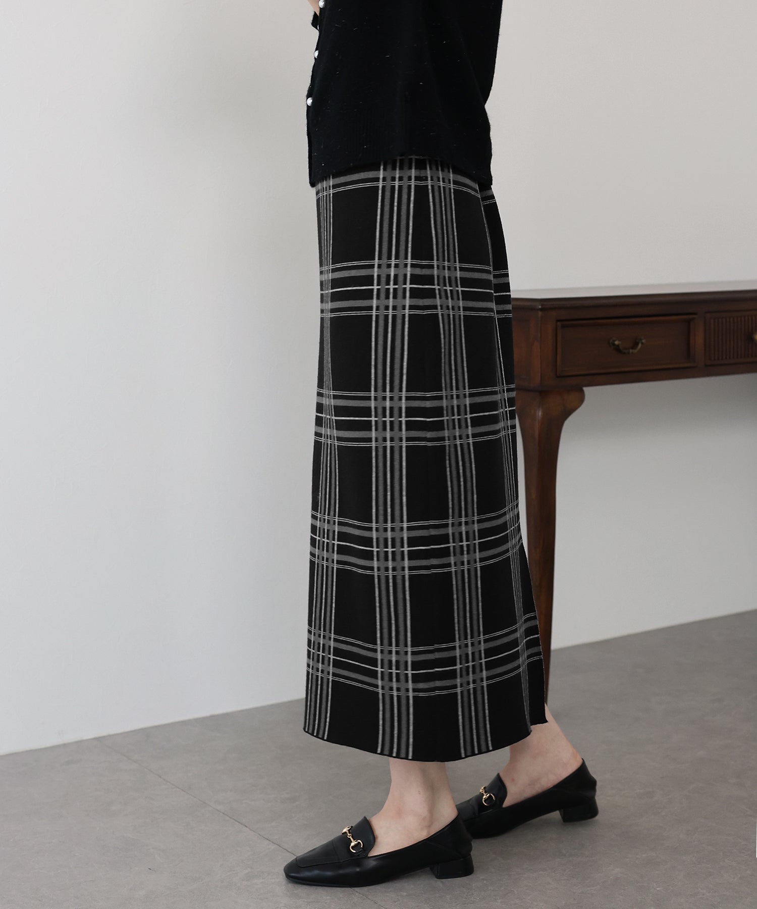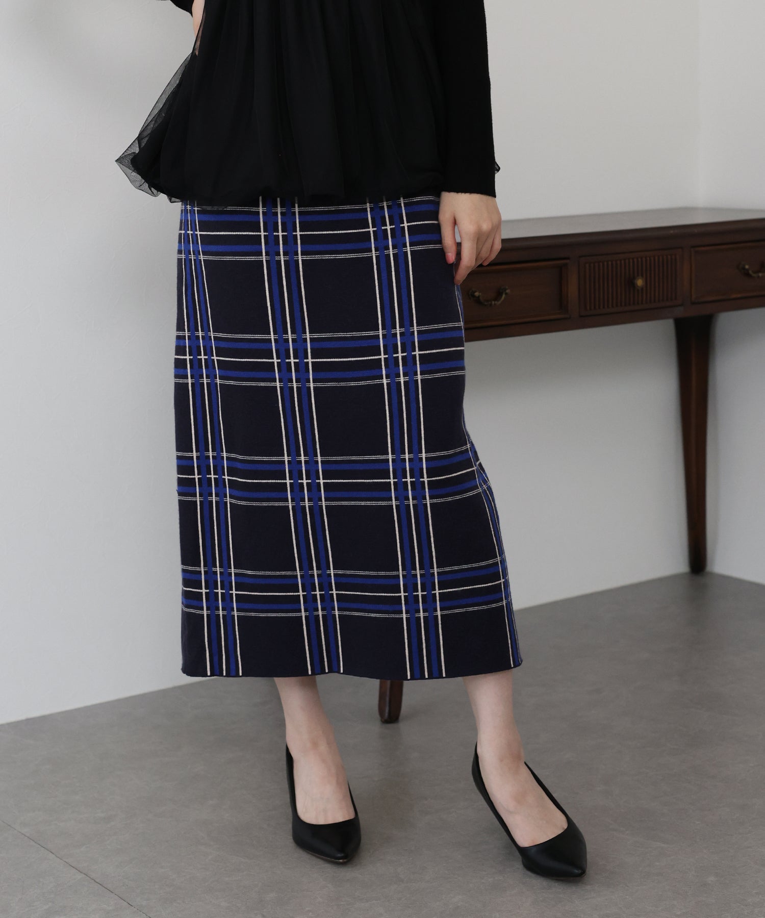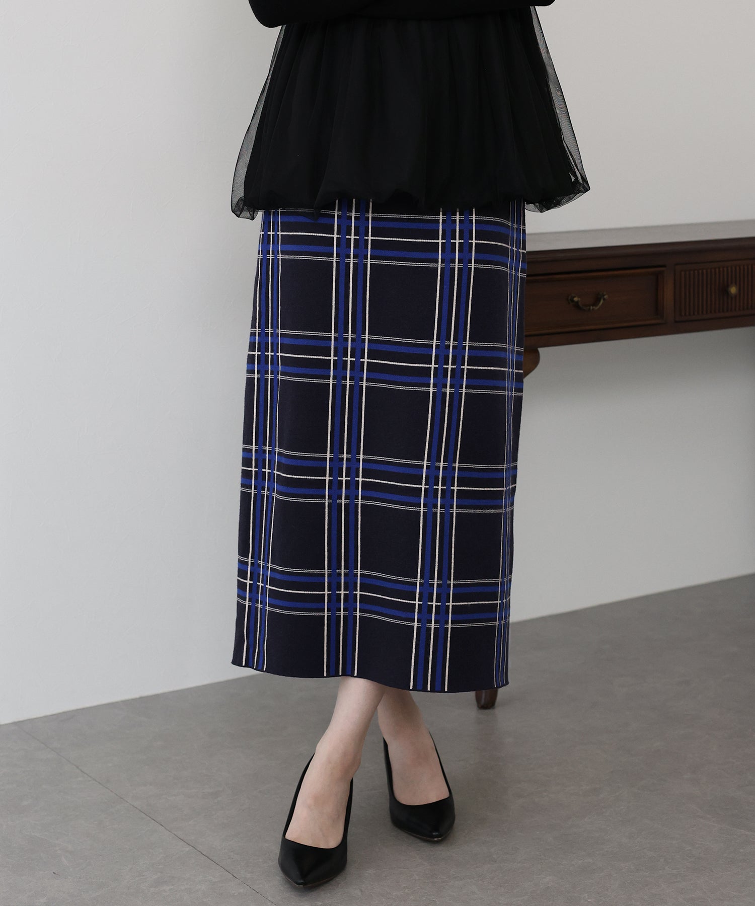 チェックニットタイトスカート