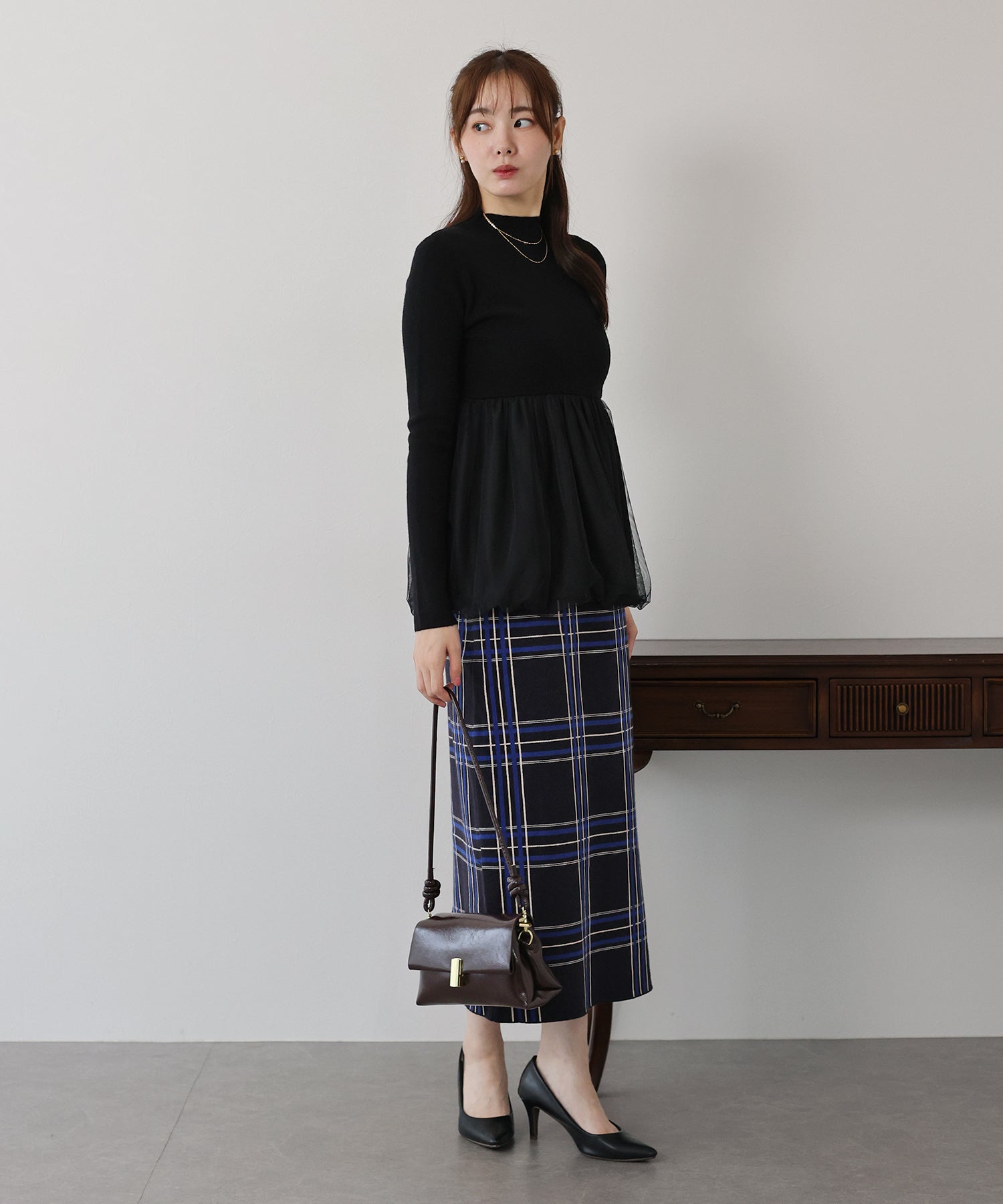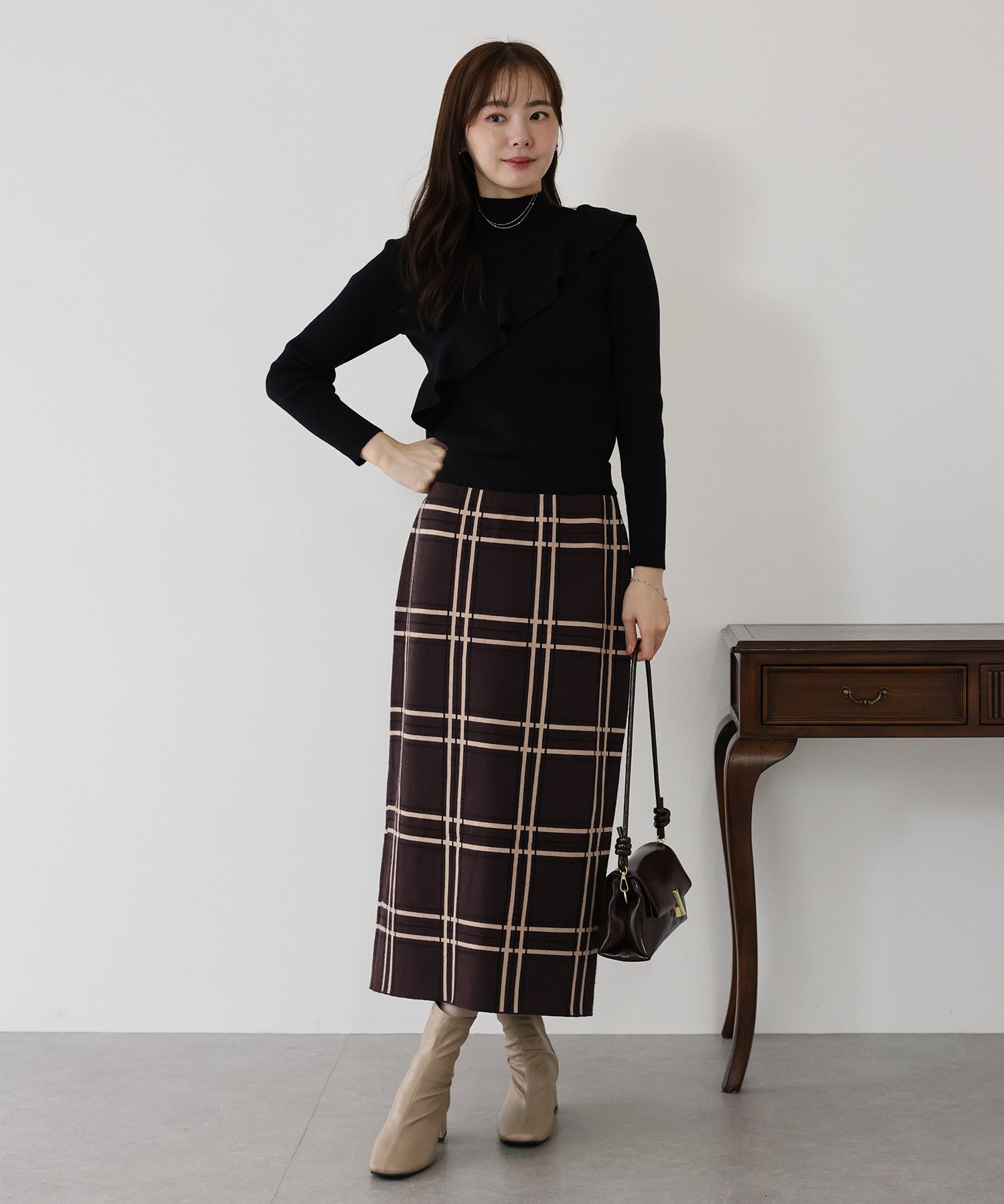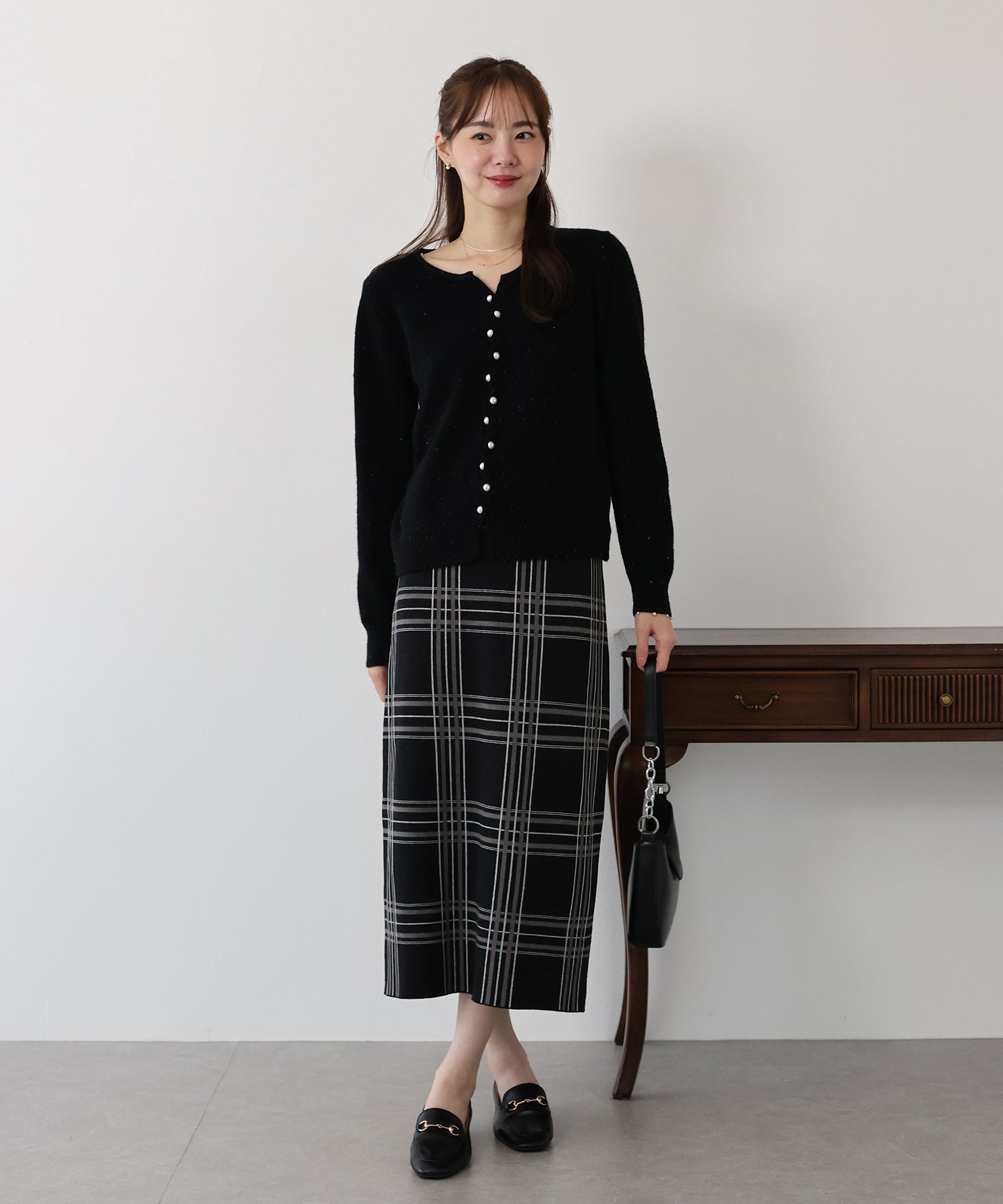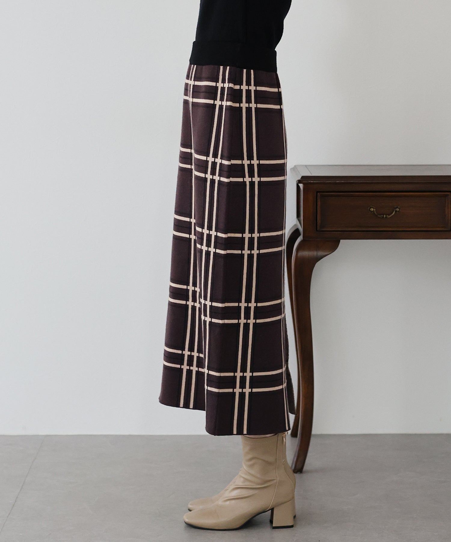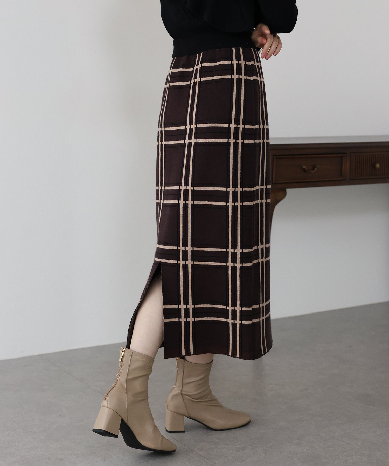 チェックニットタイトスカート
