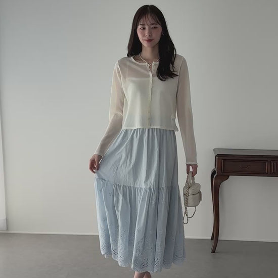 軽やかなコットン素材に、動くたびにふんわり広がるティアードデザインがフェミニンな印象を演出します。