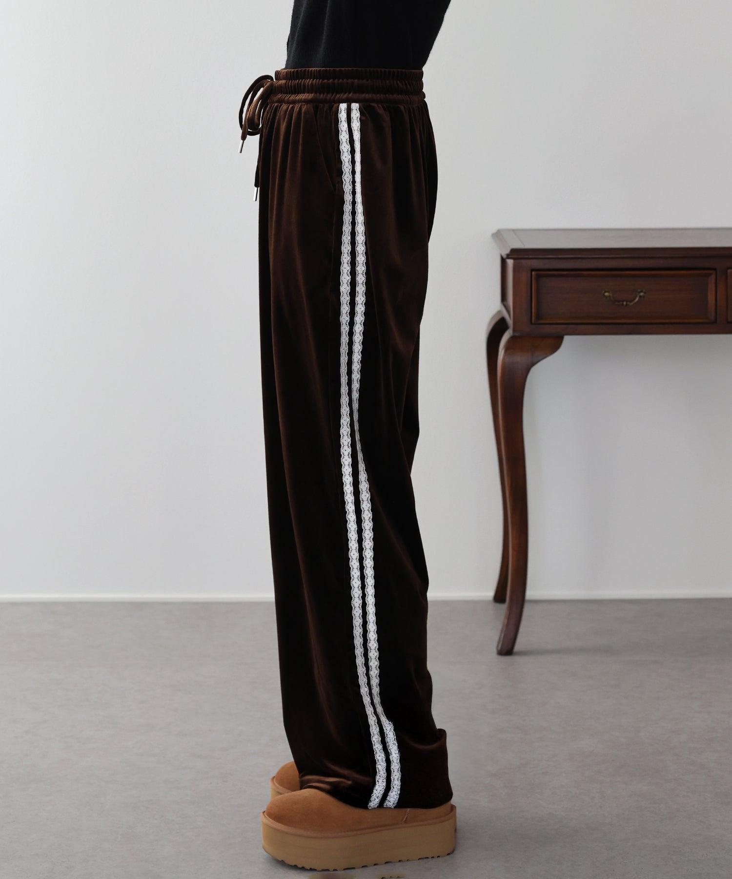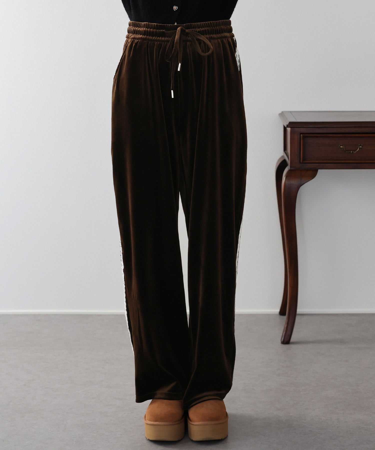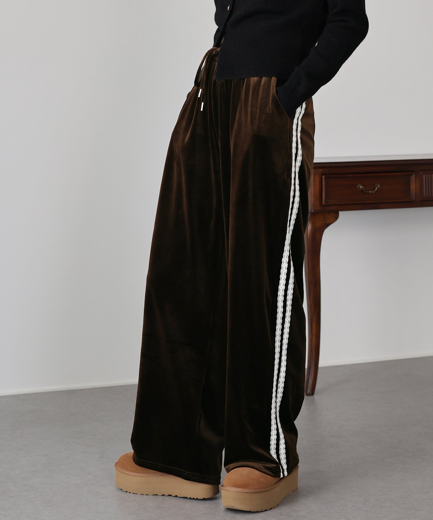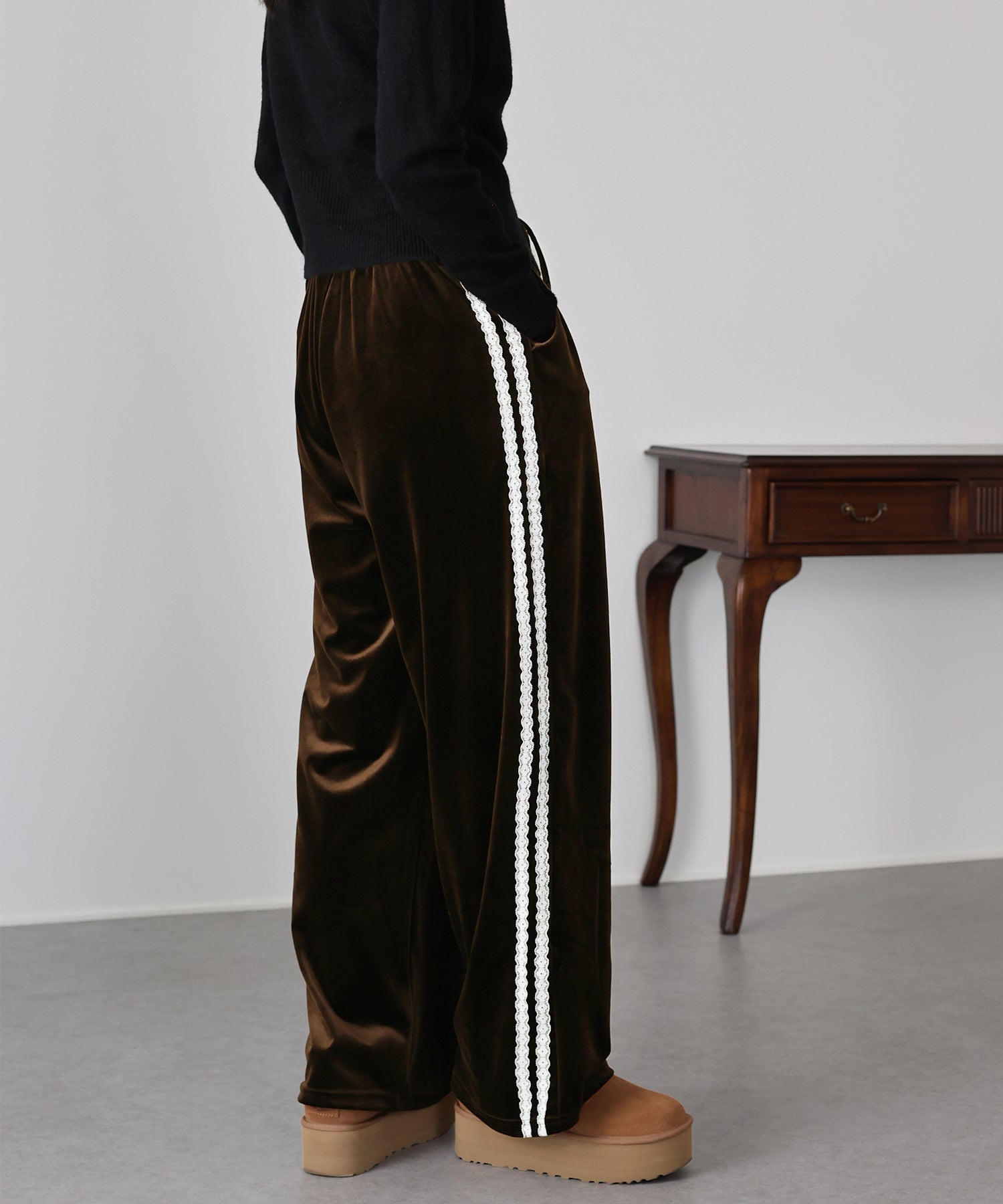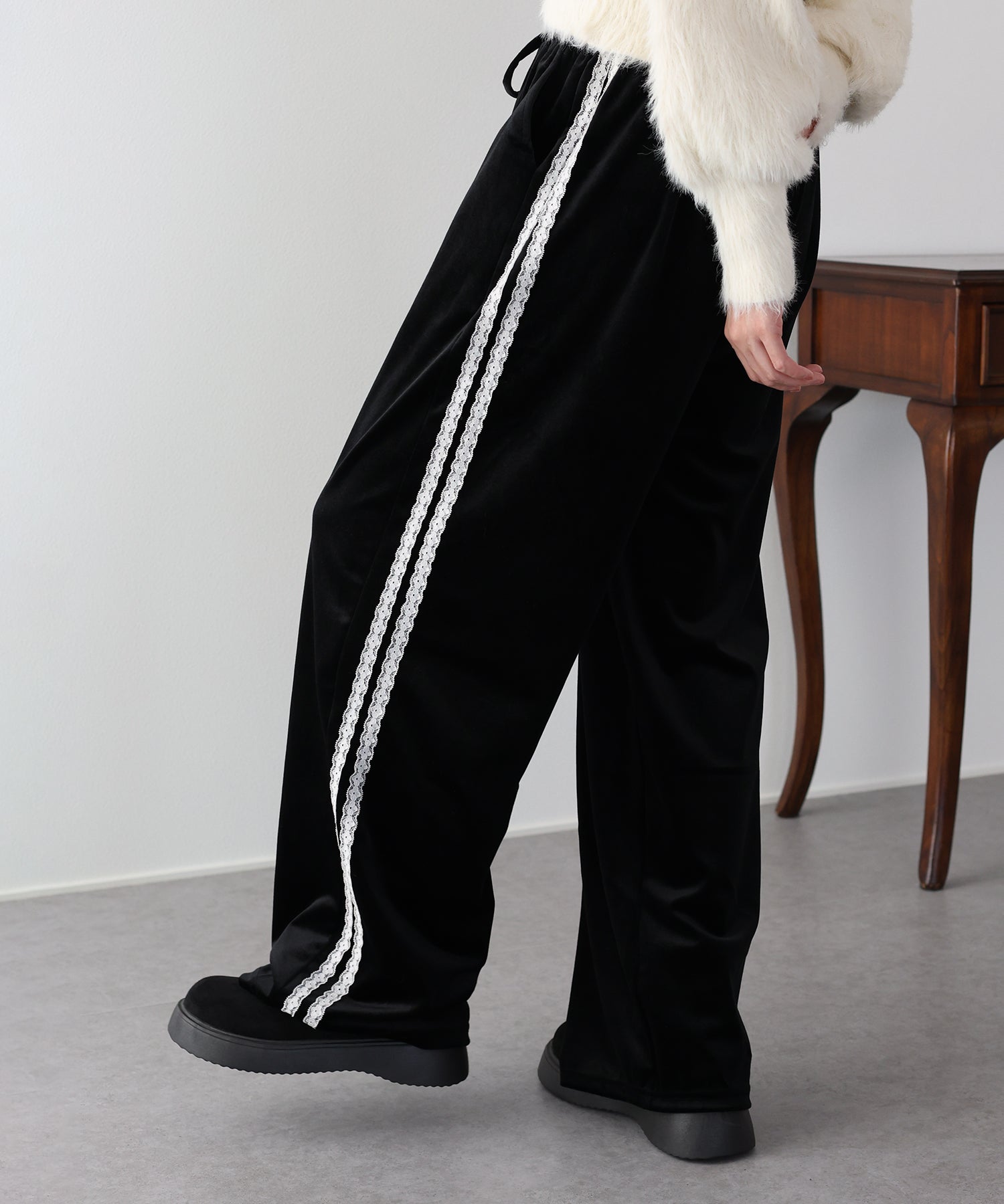 【早割5%OFF】サイドレースベロアパンツ
