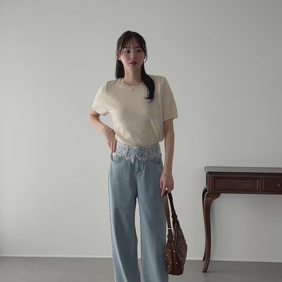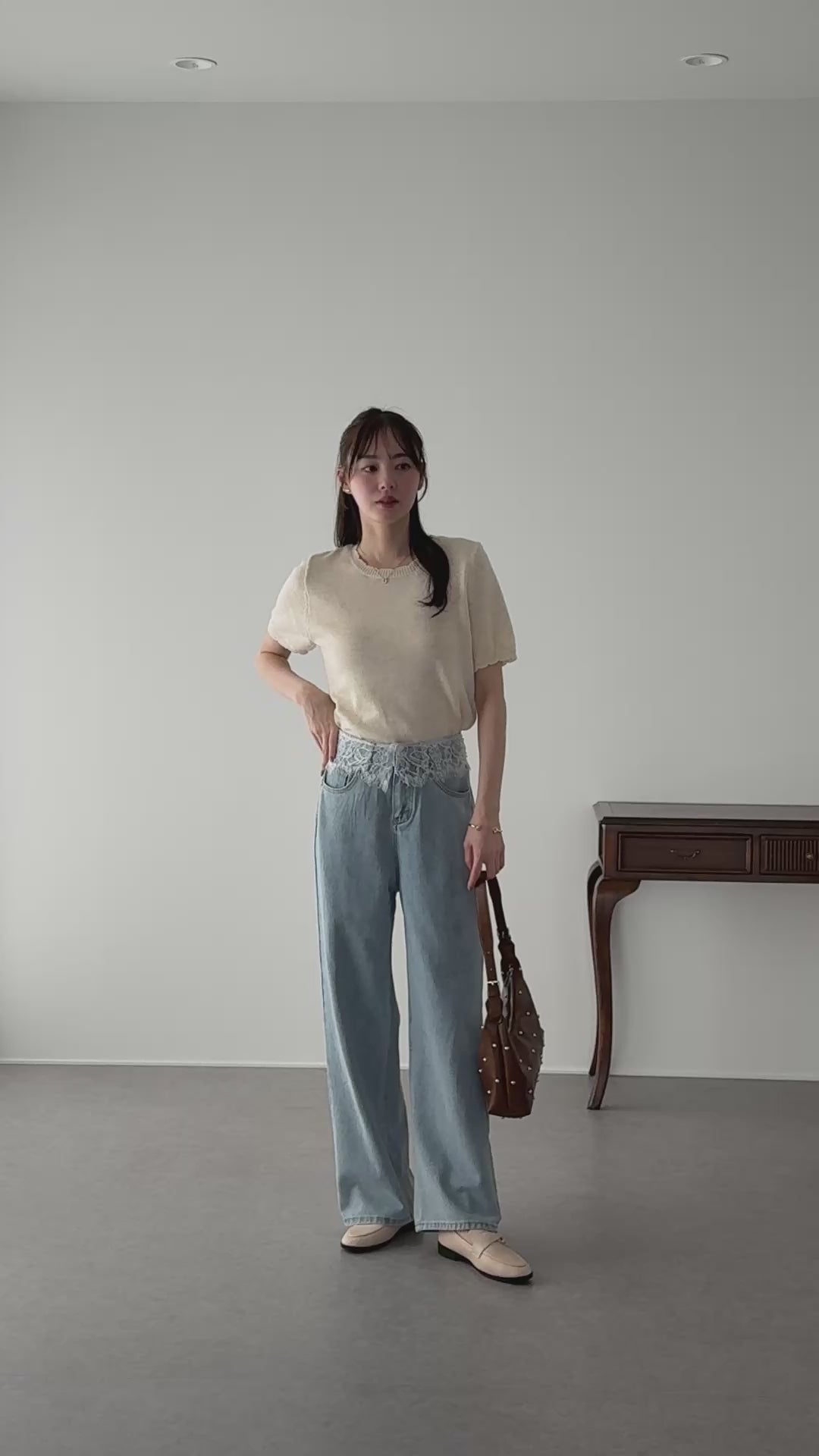 エレガントな魅力をプラスしたウエストレースデニムパンツ