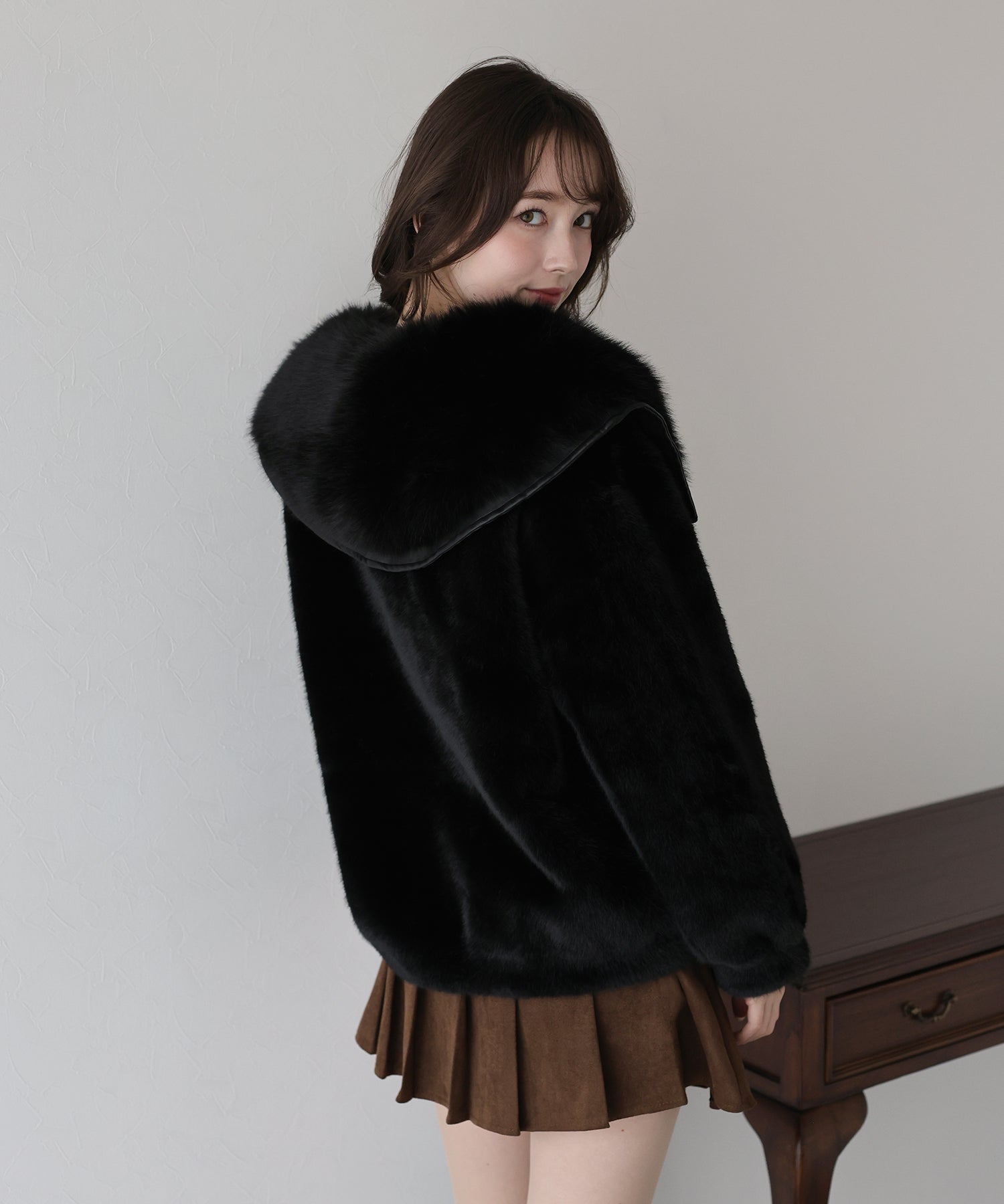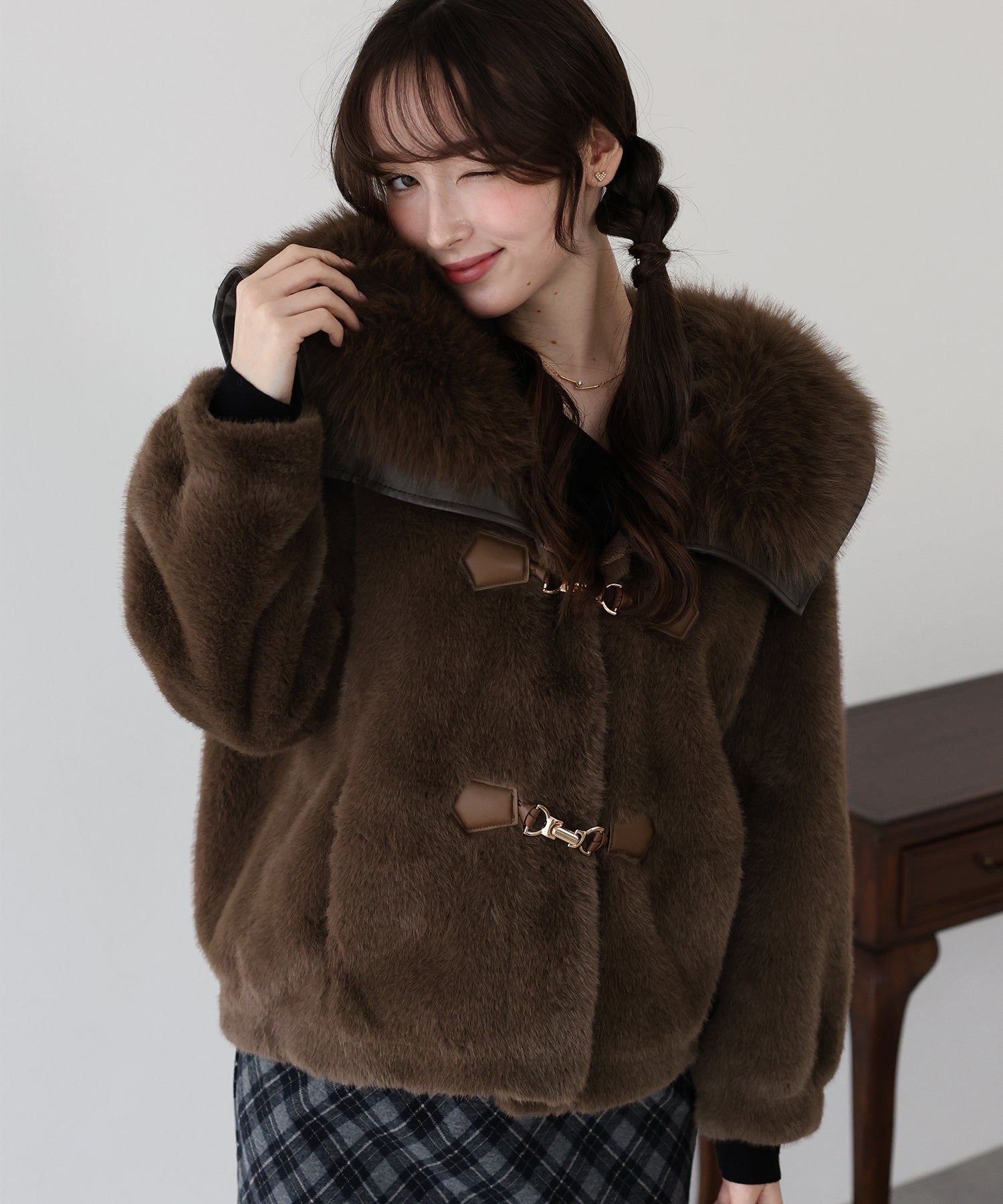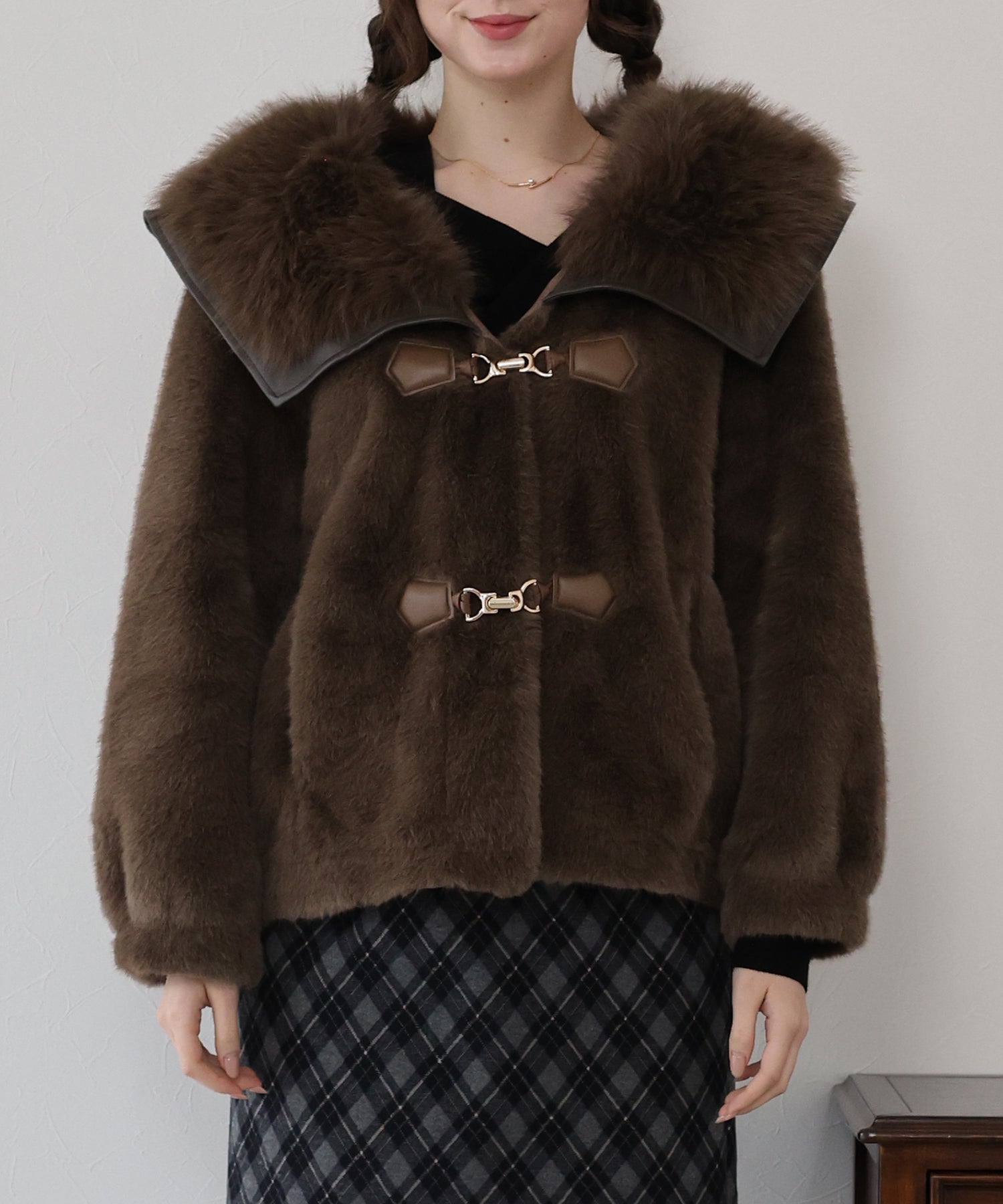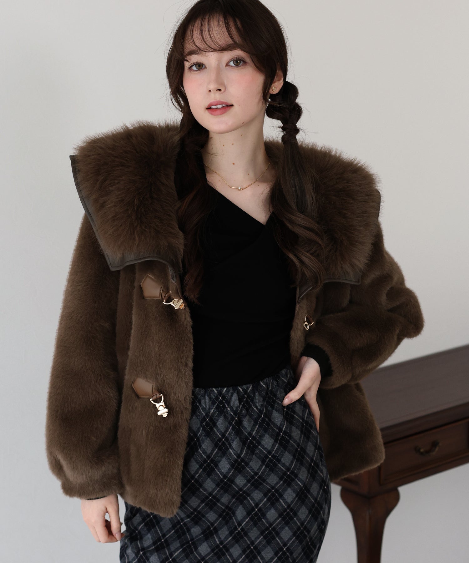 毛足の長いファーが華やかで高見えし、暖かく包んでくれる一着です。