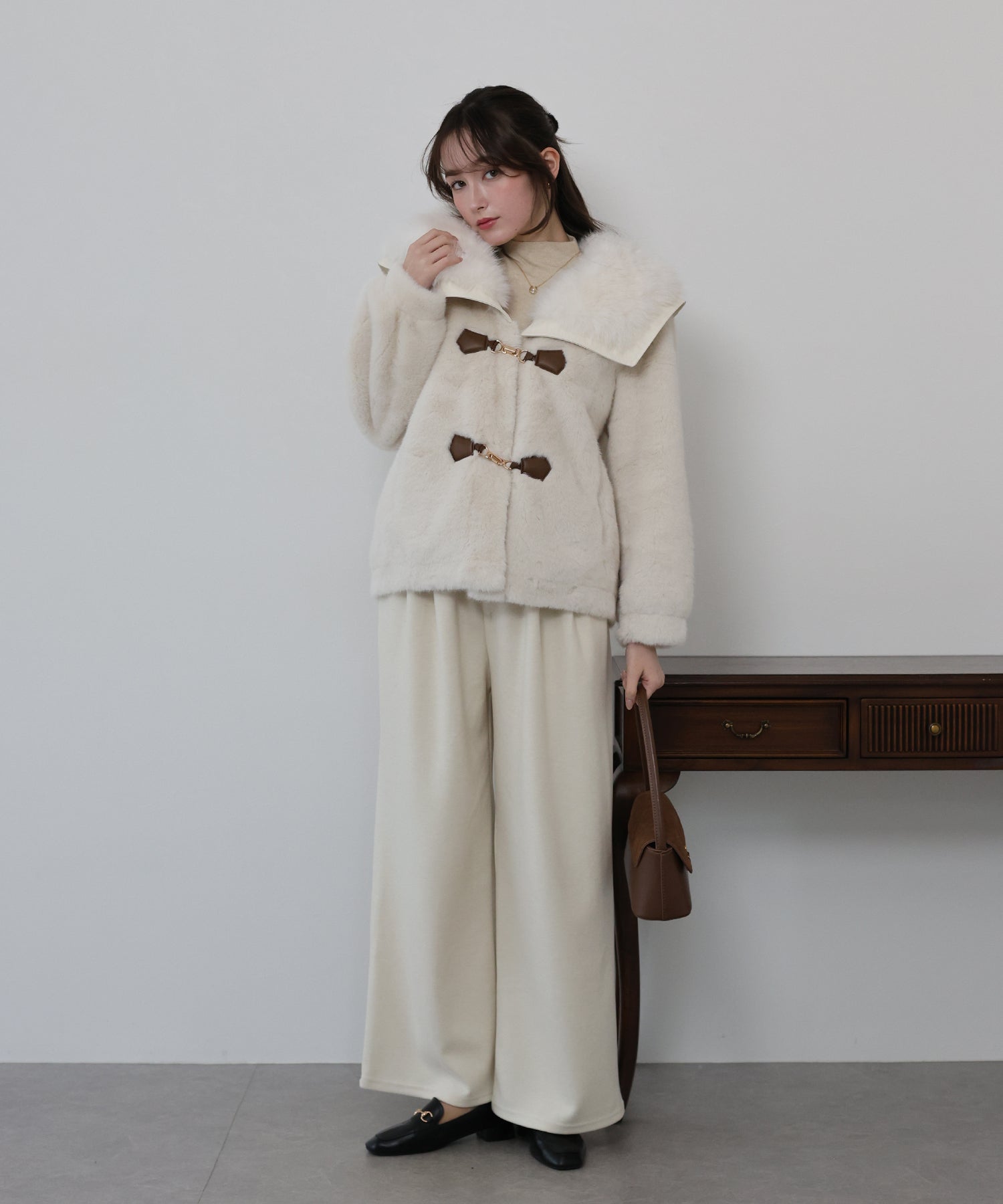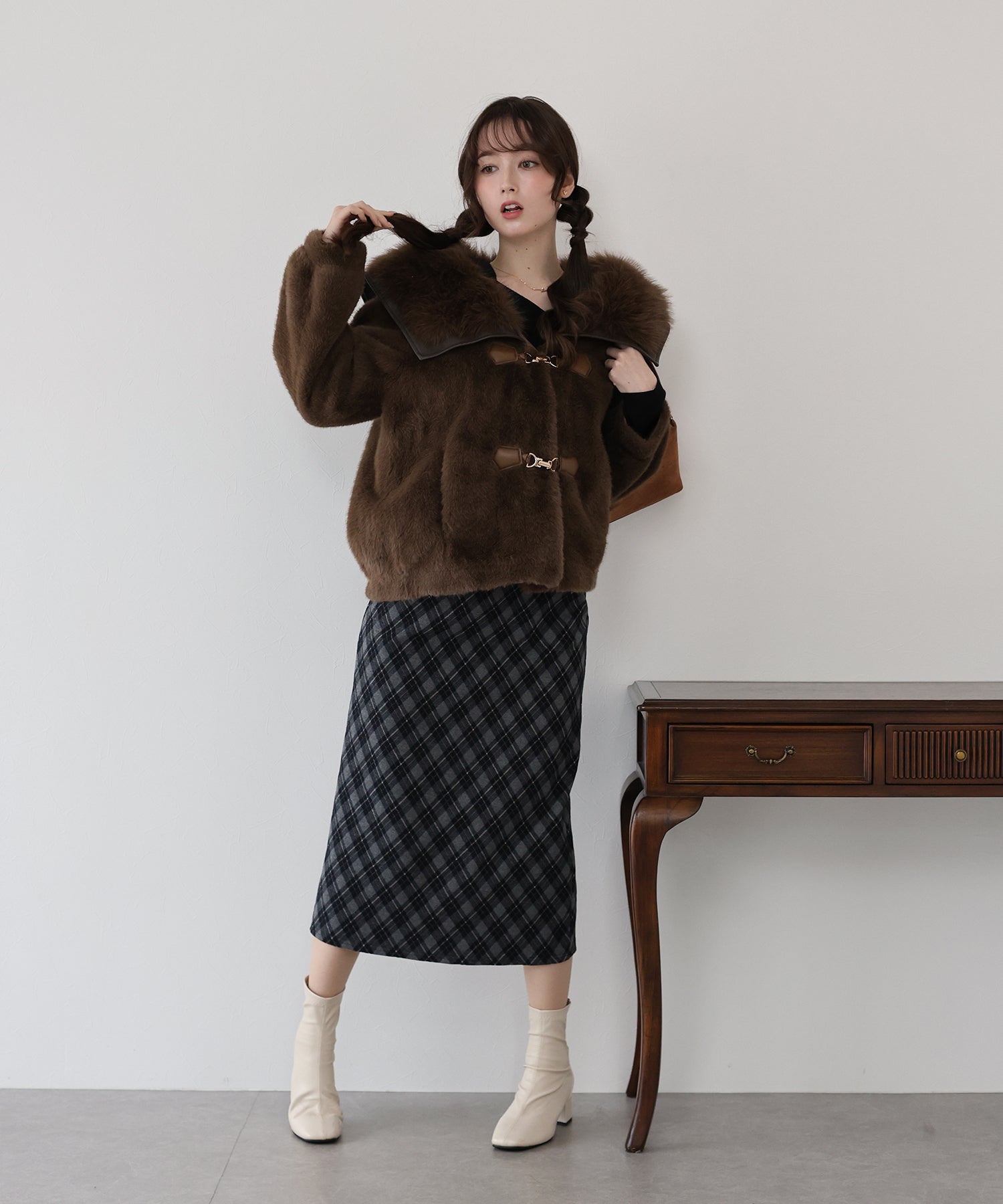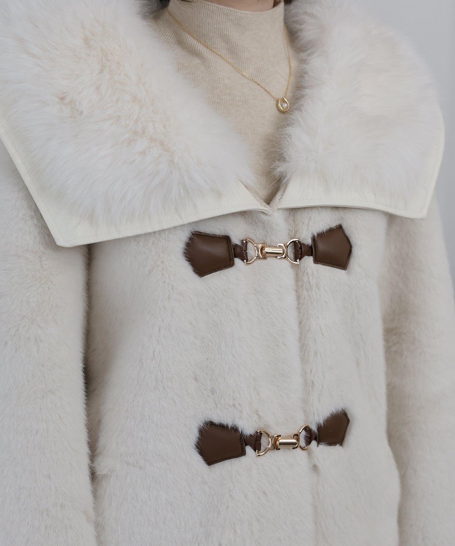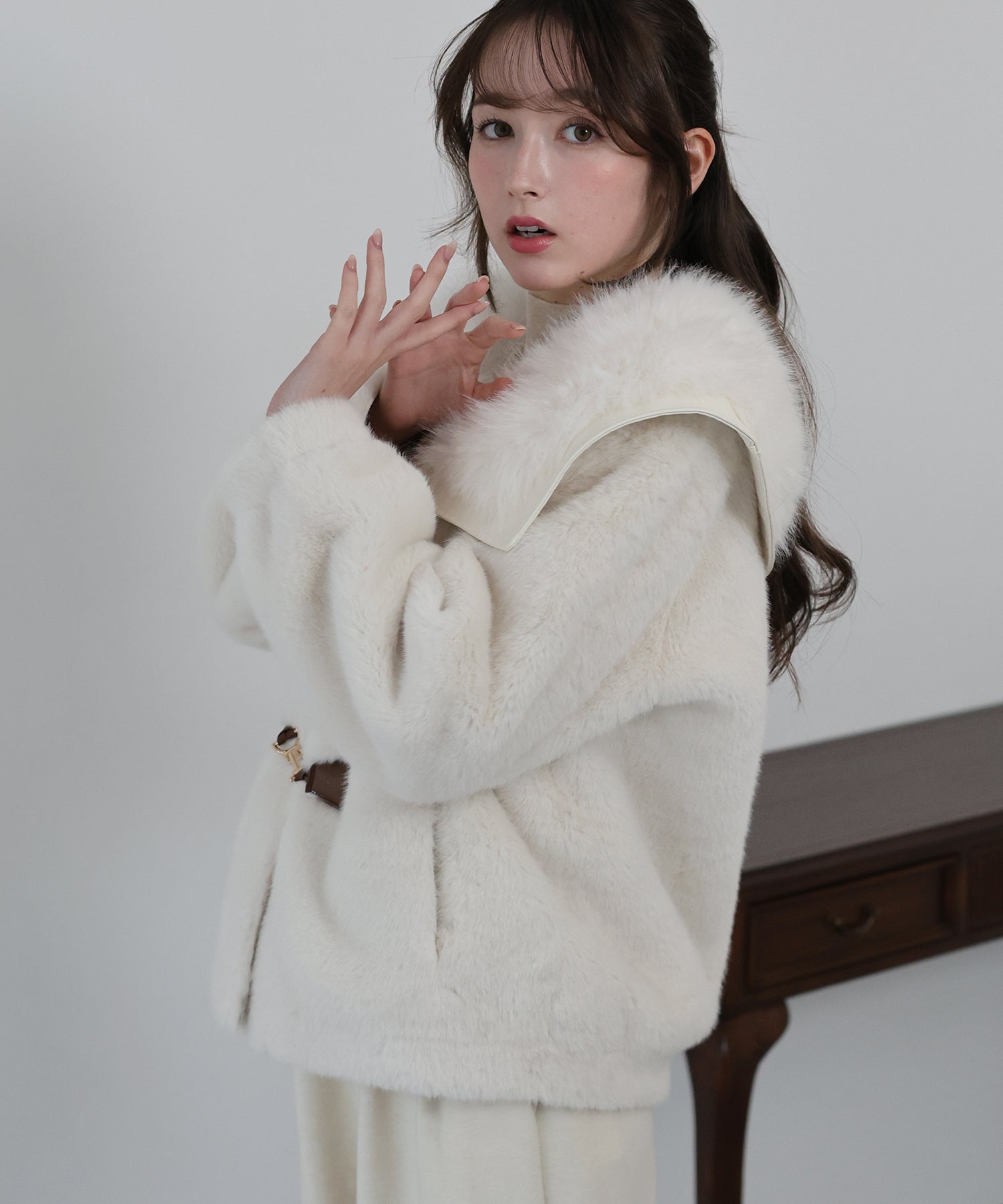 毛足の長いファーが華やかで高見えし、暖かく包んでくれる一着です。
