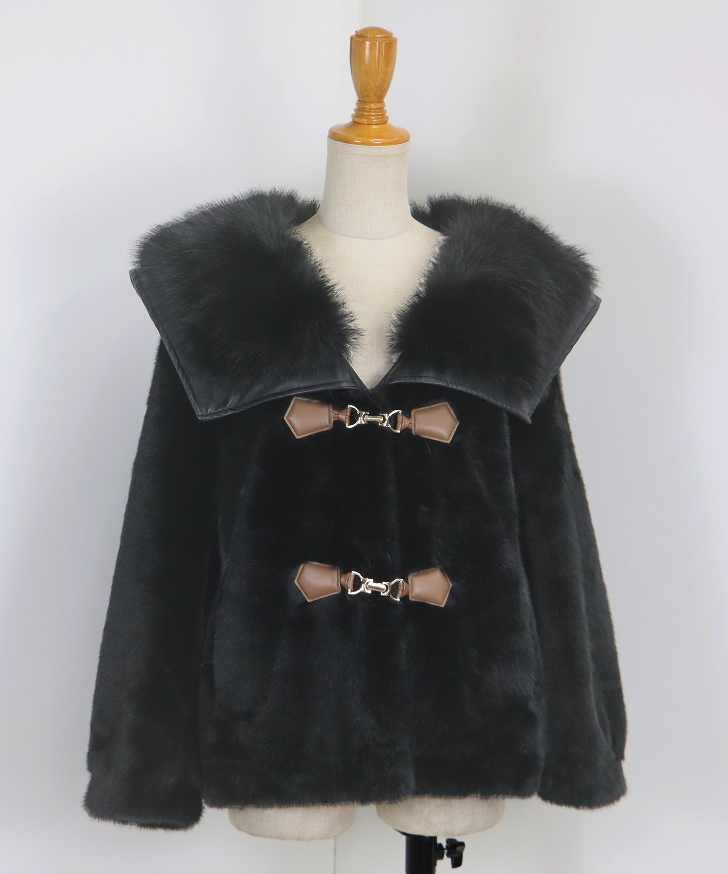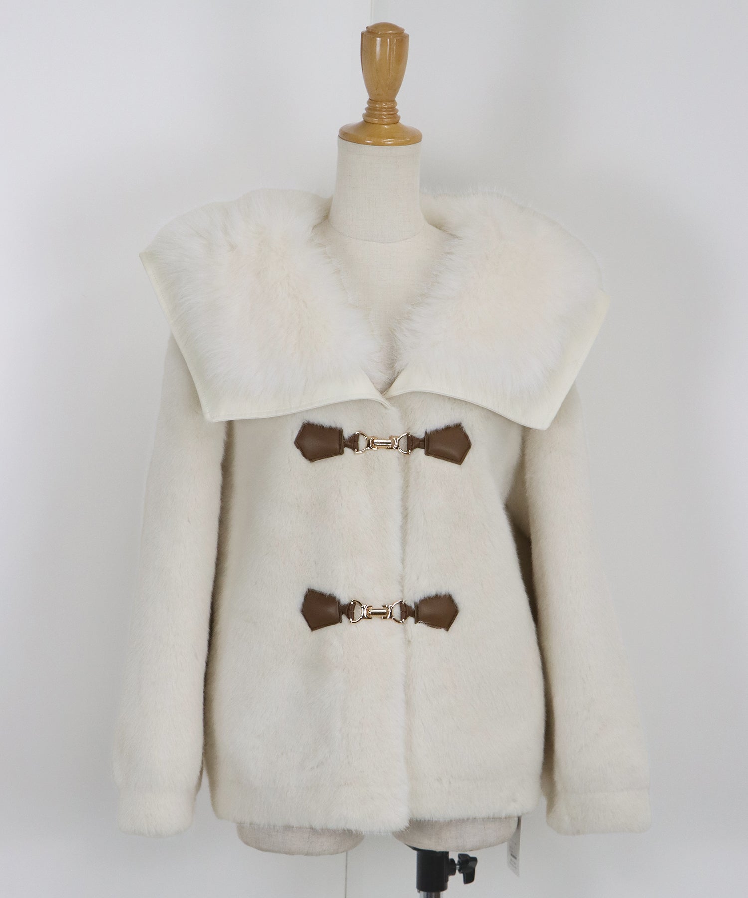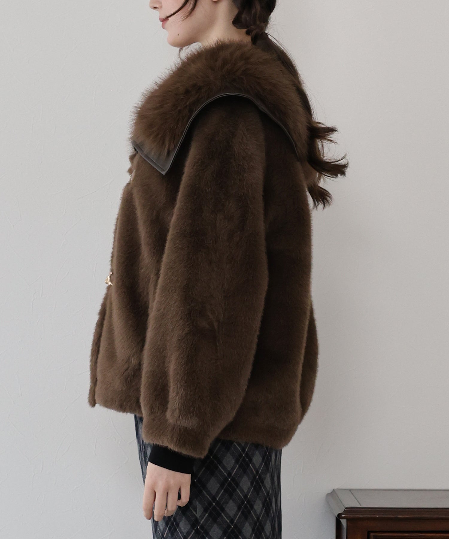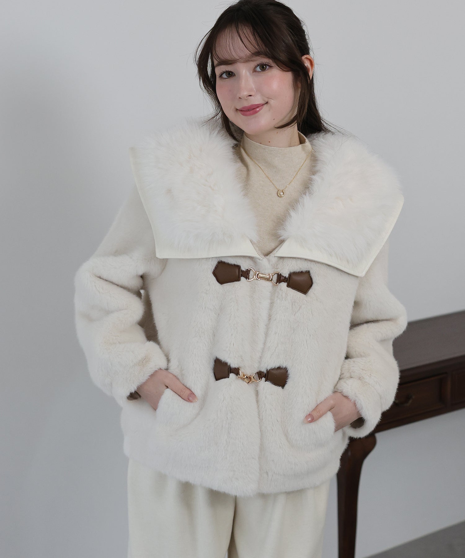 大きめのサイズ感がガーリーな襟は、フェイクレザーにファーが付いたデザインで、