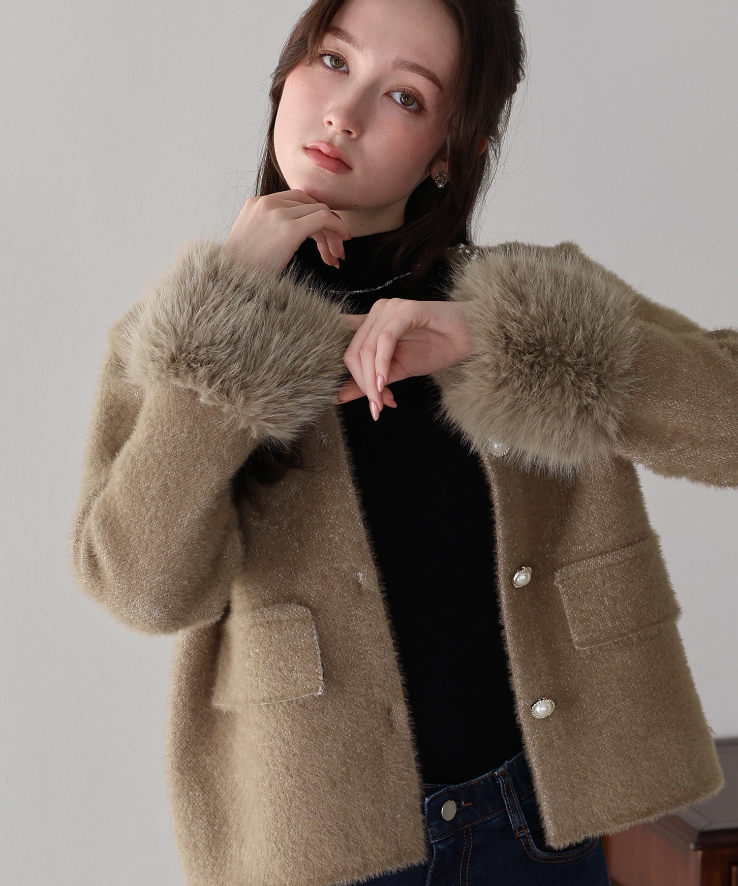 ファーとシャギーニットがシーズンライクな上品ニットジャケット