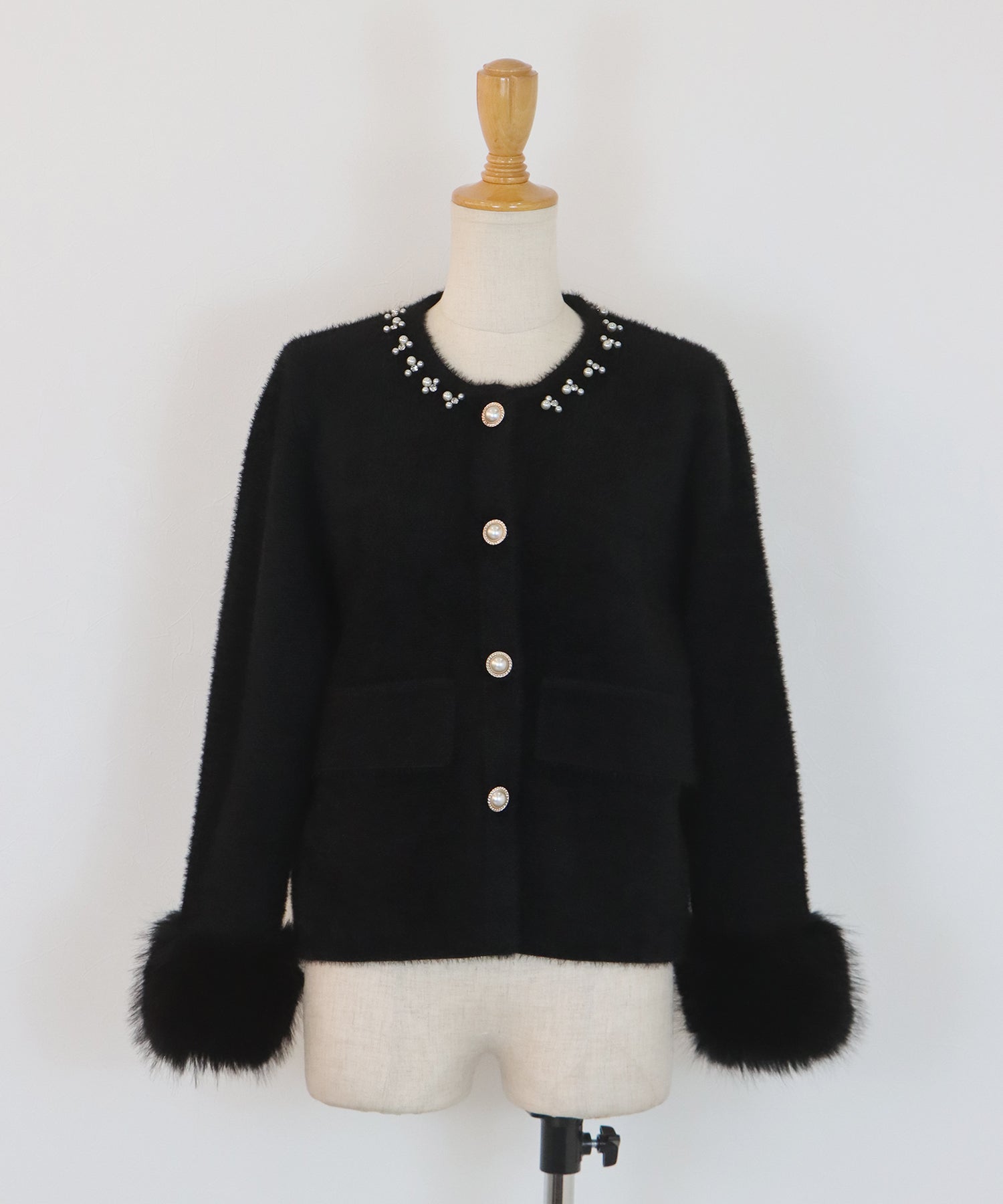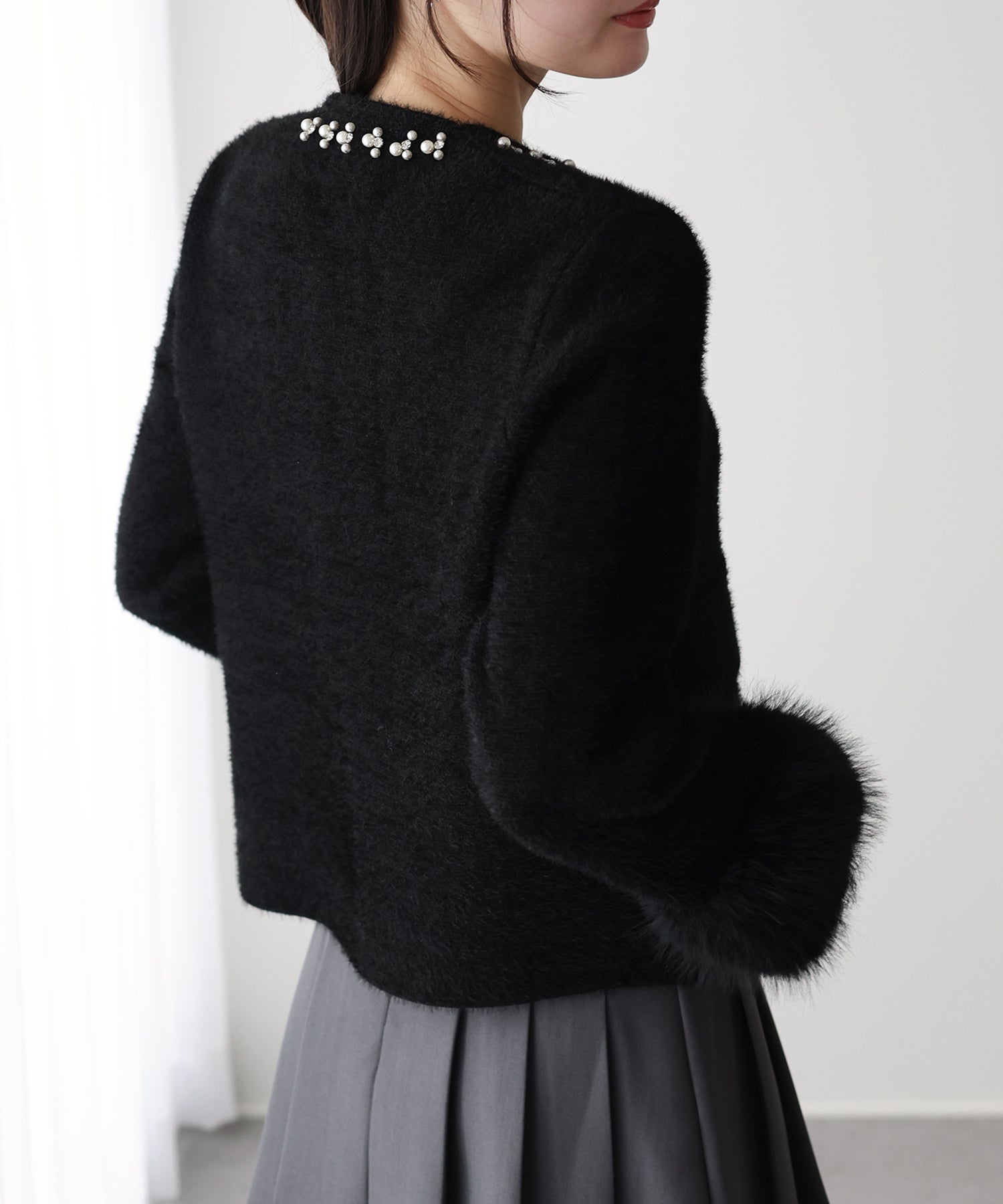 SOLD OUT【早割5%OFF】袖ファーパールビジュージャケット