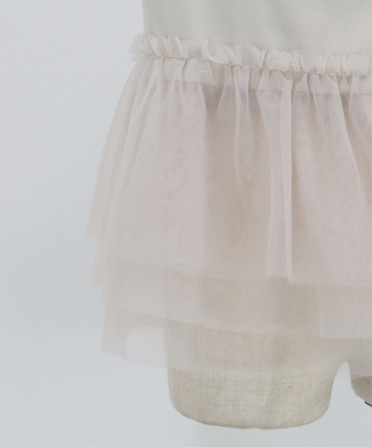 ジレのきちんと感と、チュールの軽やかさが絶妙なバランスで、